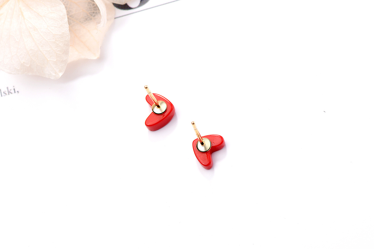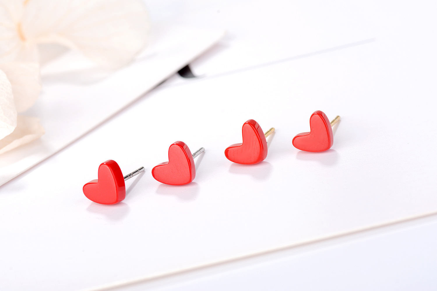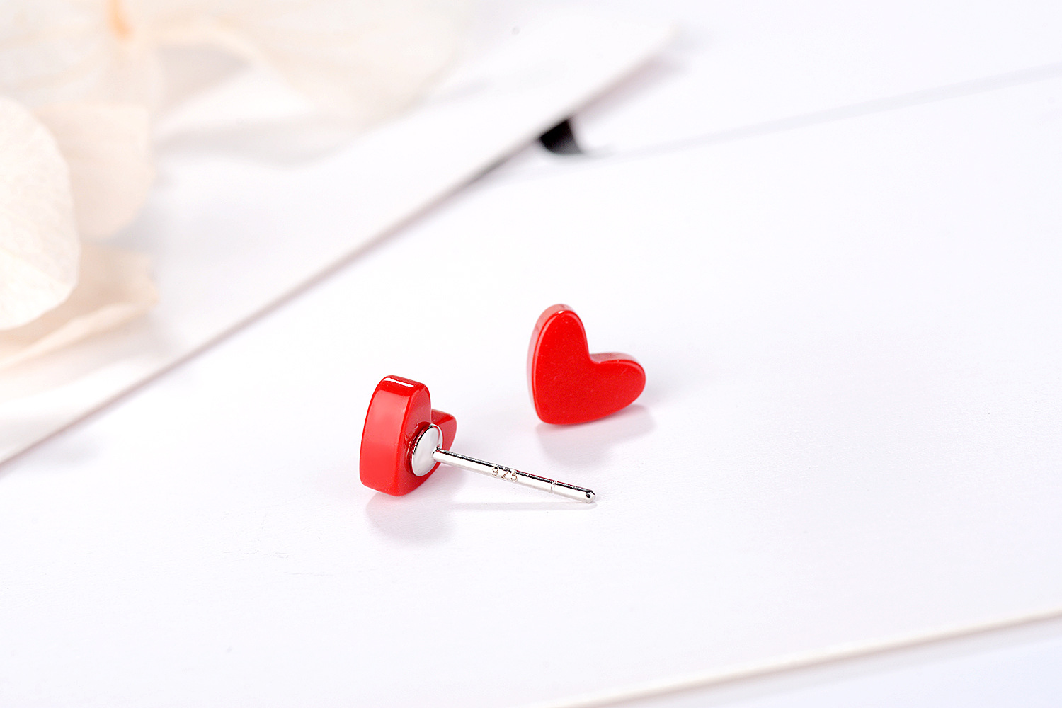 SATN122E100385 s925銀愛心耳釘女韓版小清新紅色心形耳釘甜美桃心耳飾品女代發