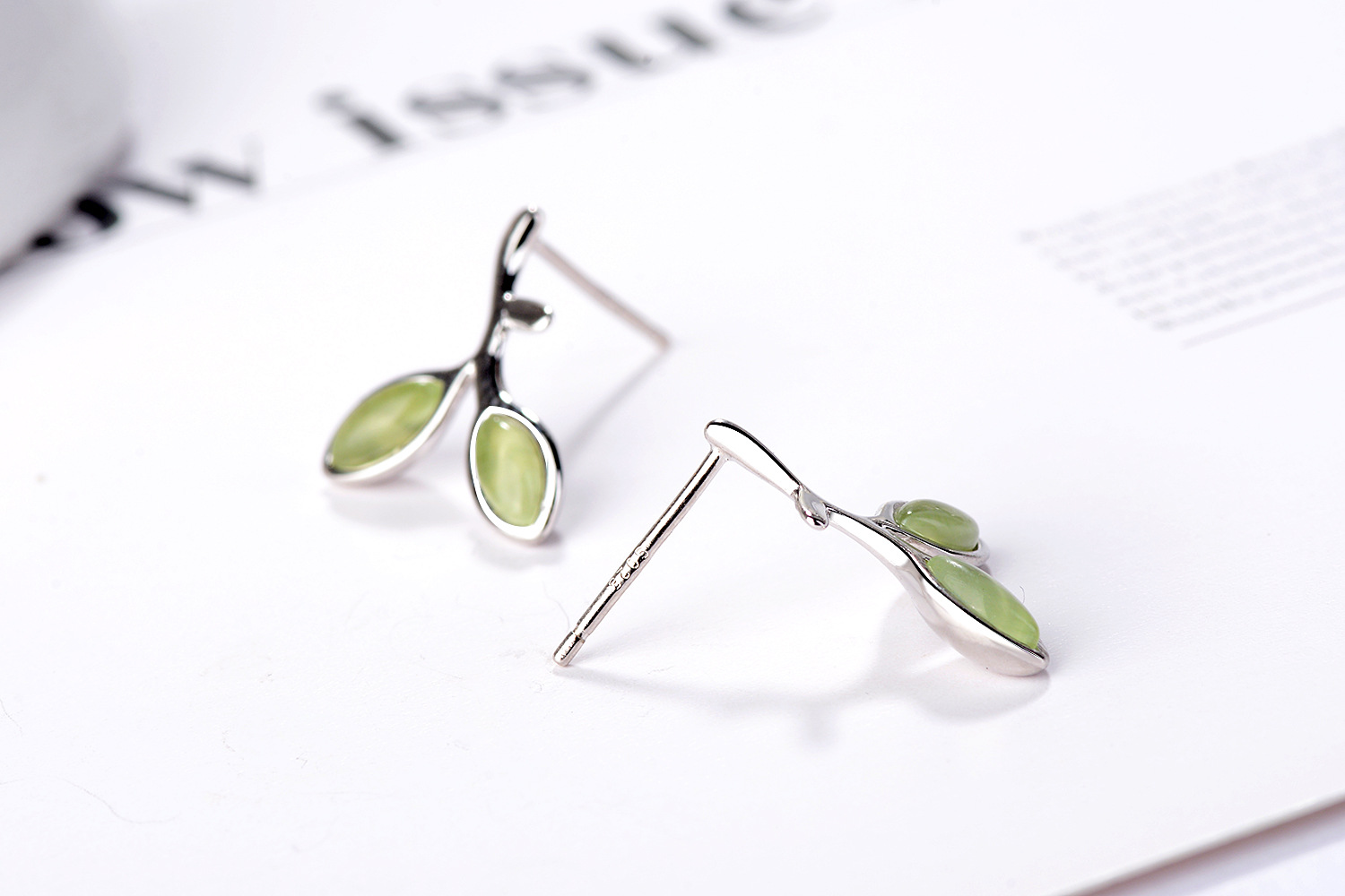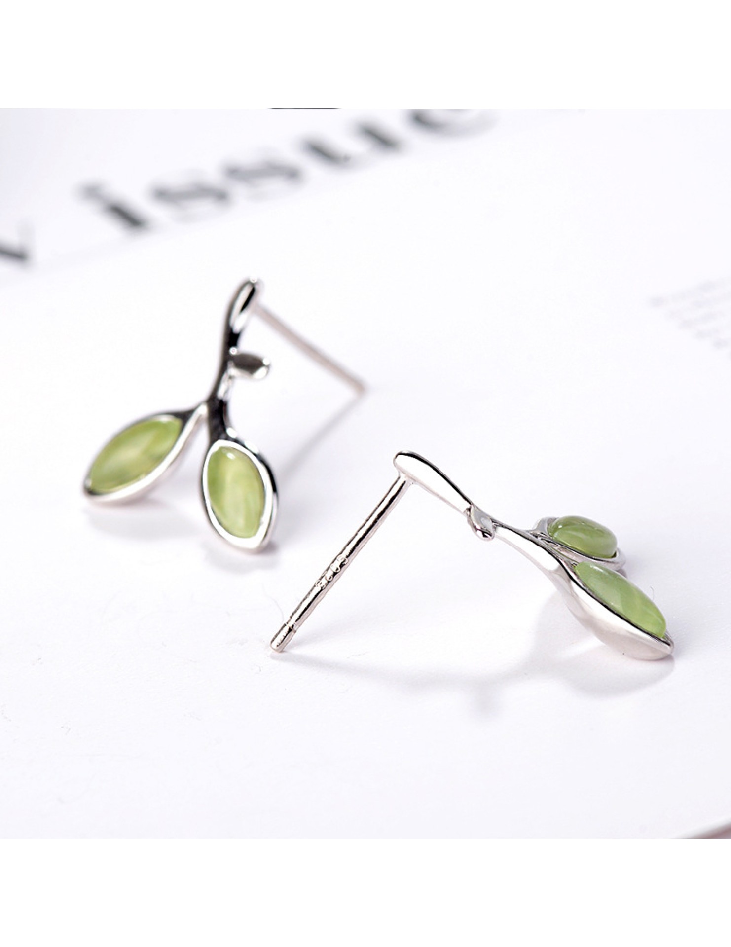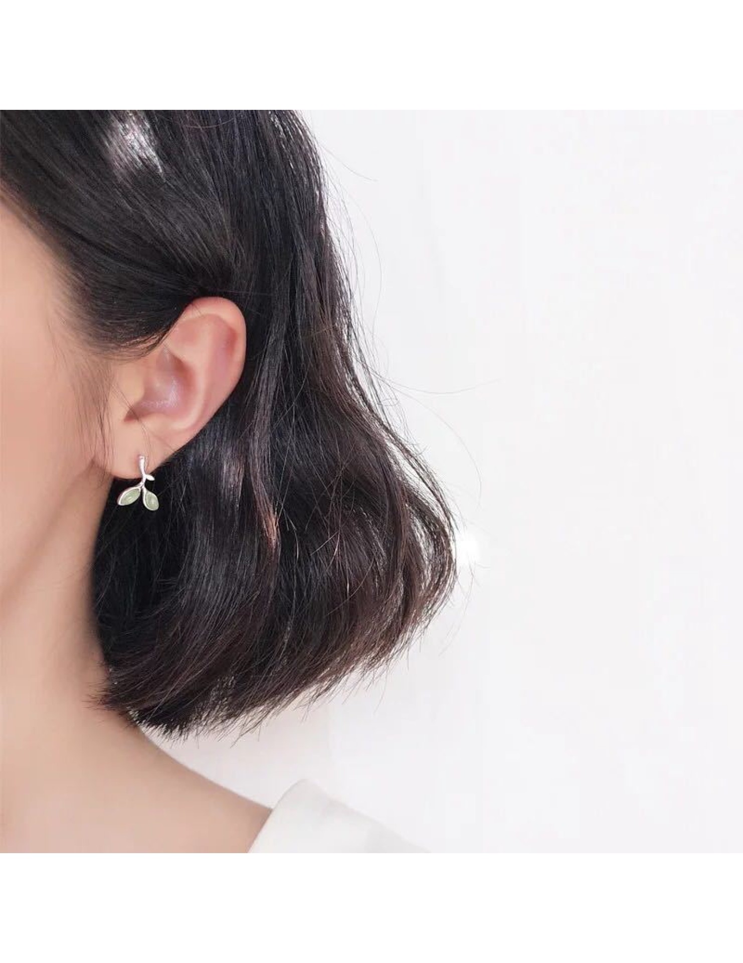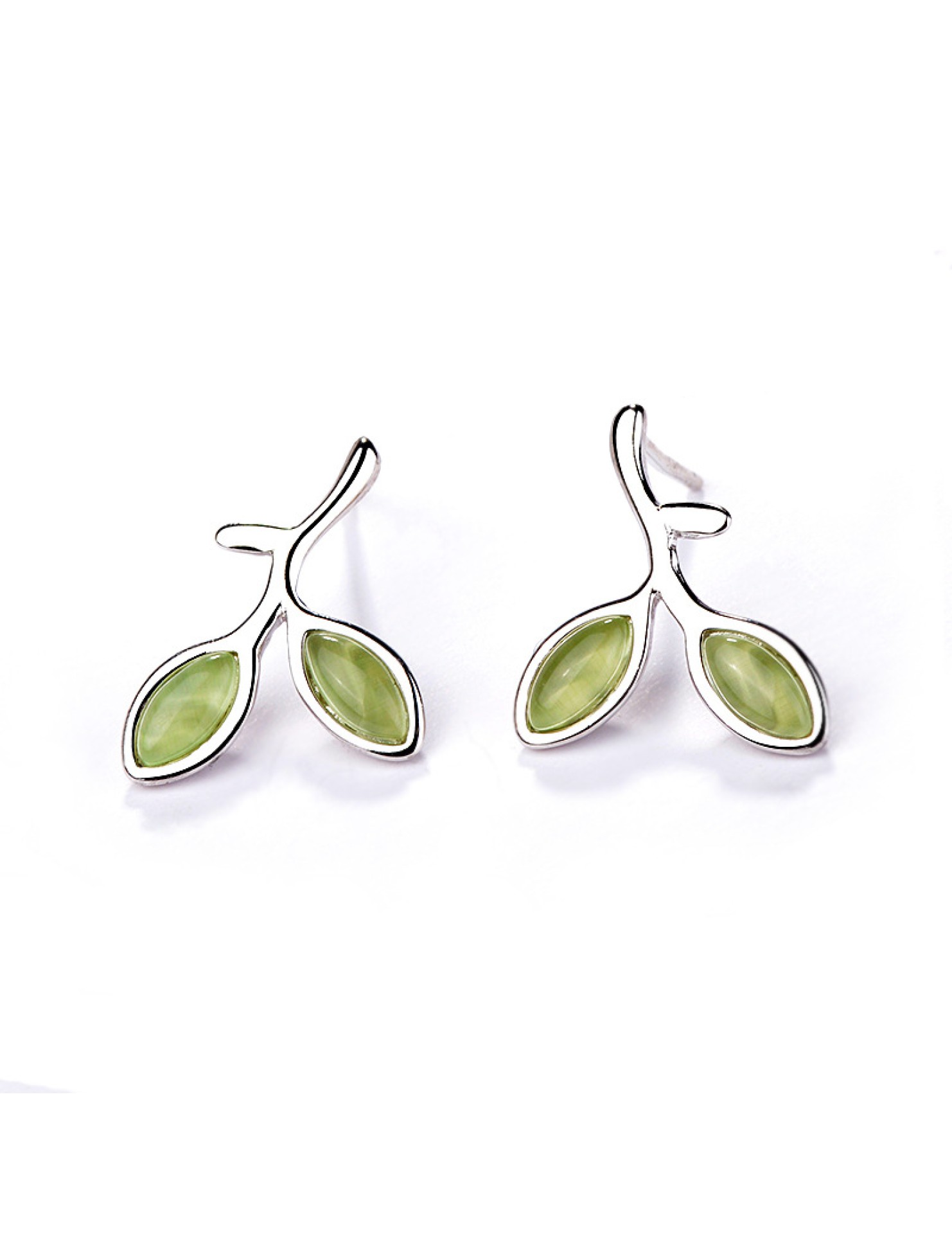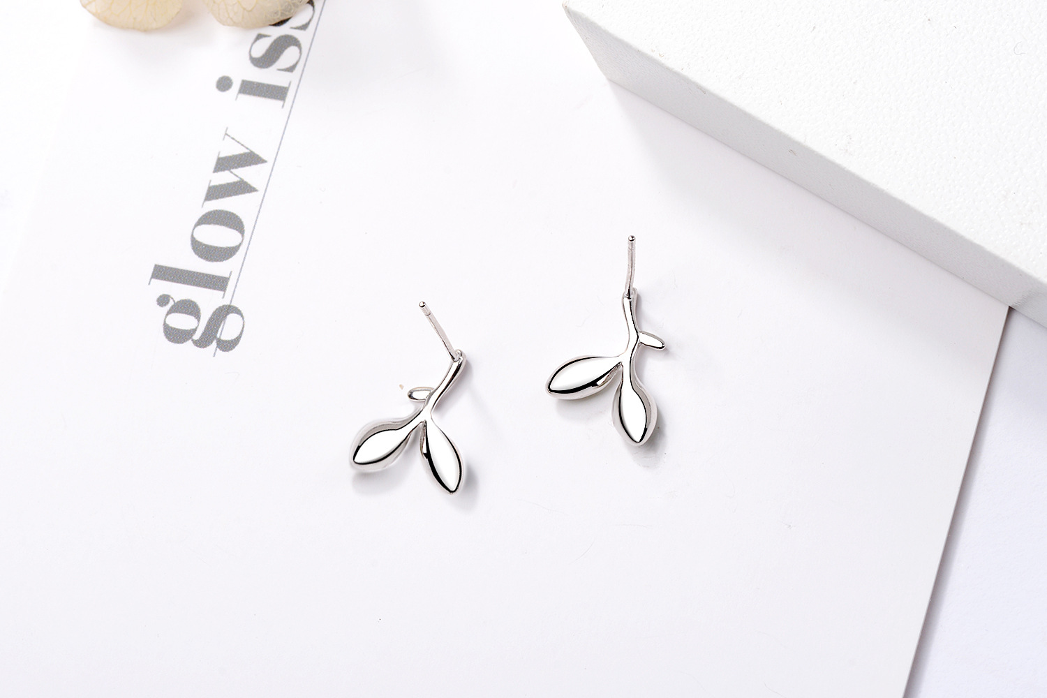 SATN122E100387 S925純銀嫩芽葉子耳釘時尚日韓版小清新森系樹葉耳環學生個性飾品