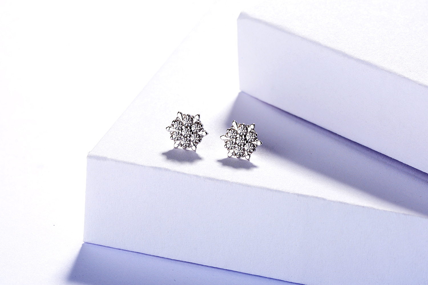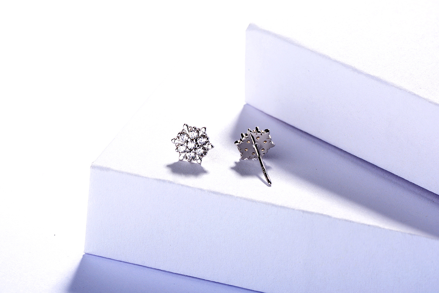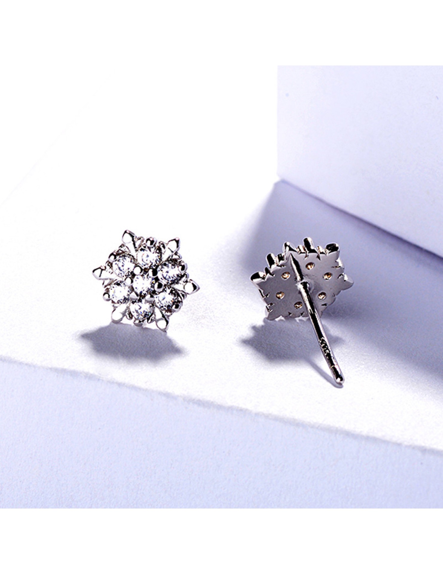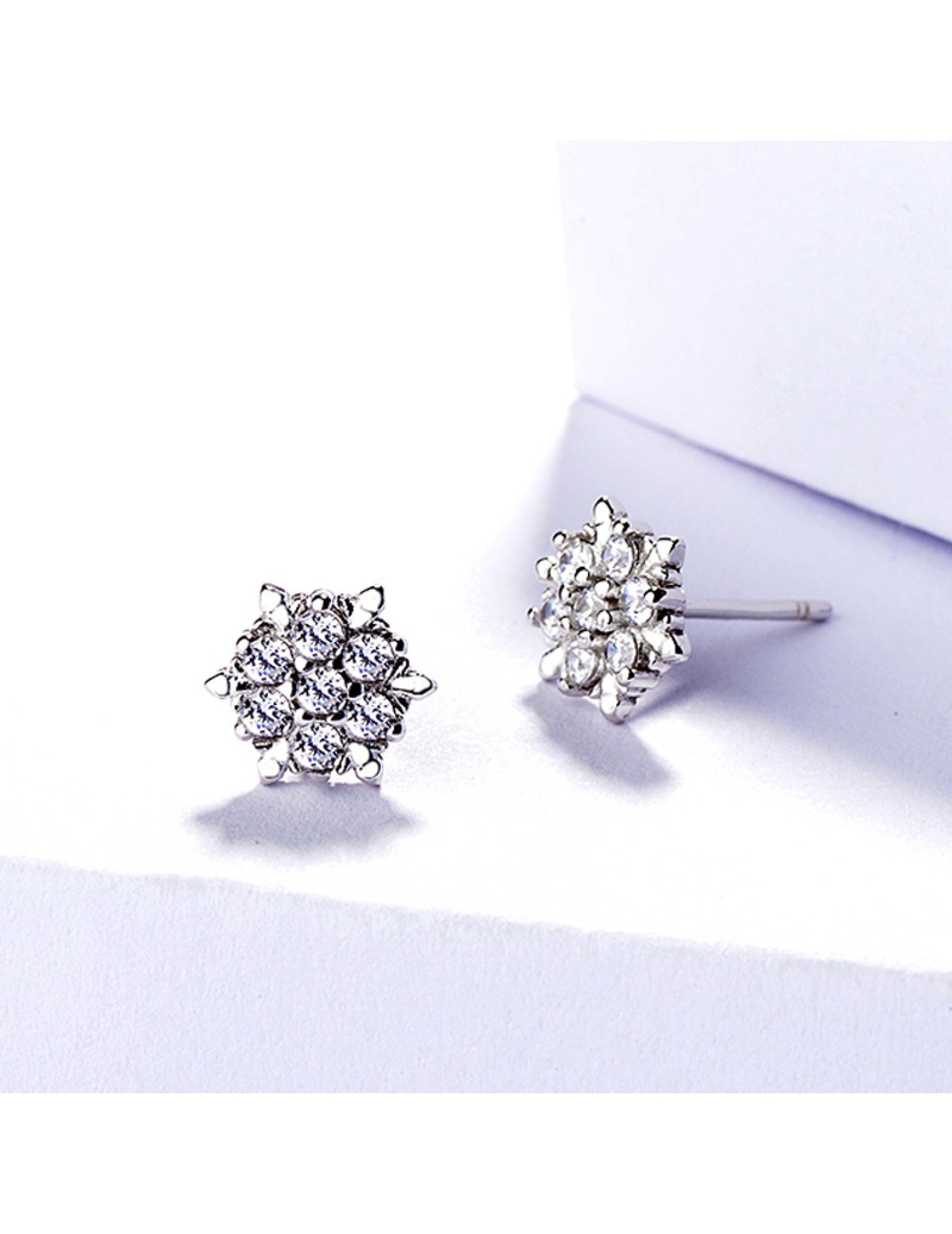 SATN122E100389 S925純銀女雪花鑲鉆耳釘甜美韓國圣誕冬天款簡約耳飾生產