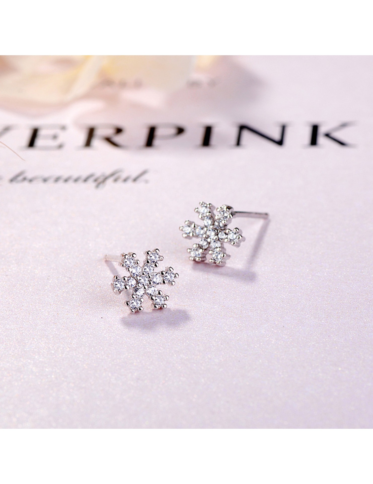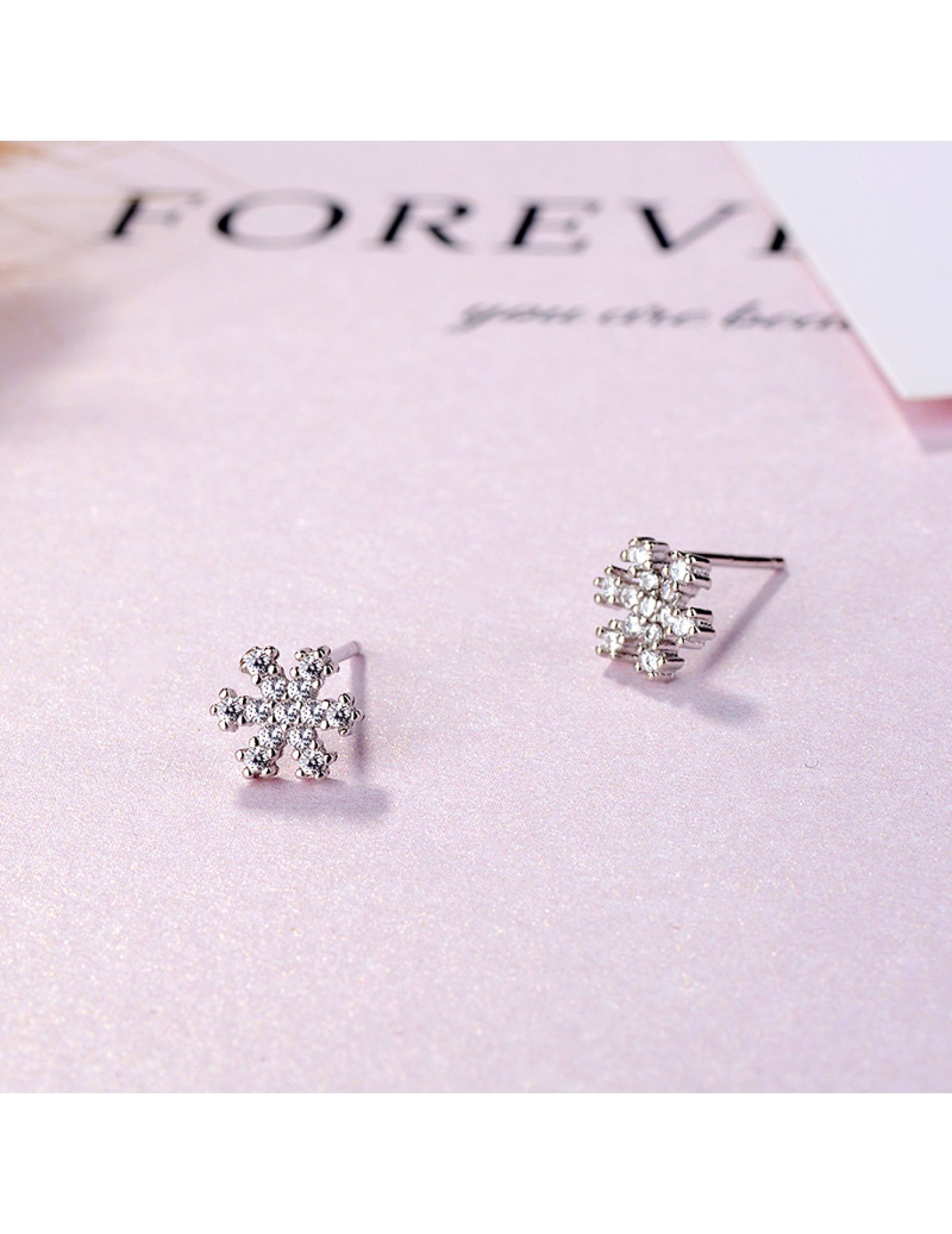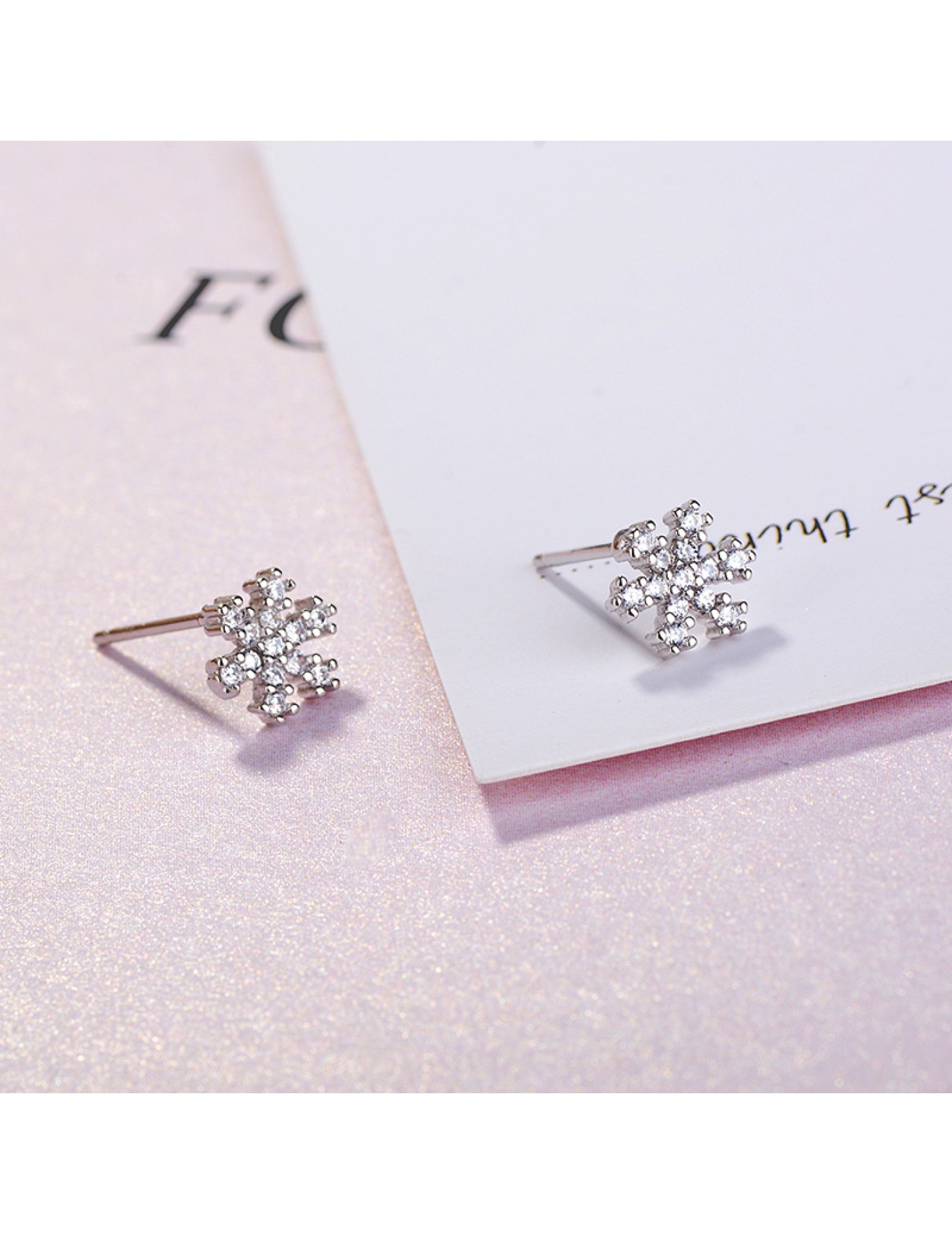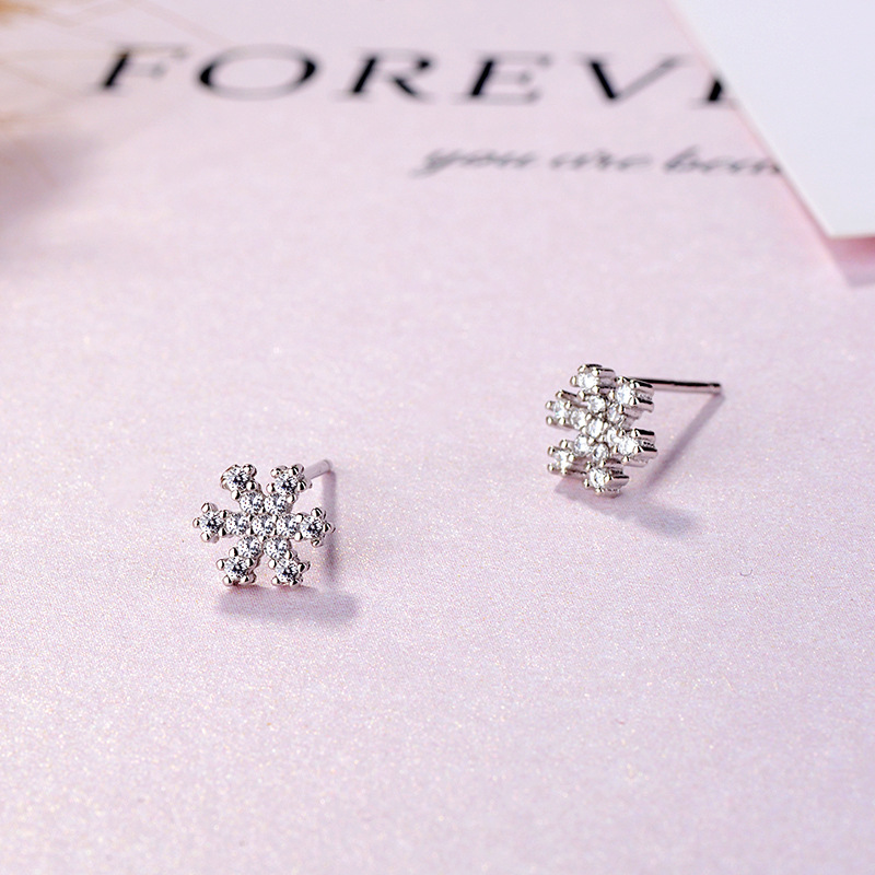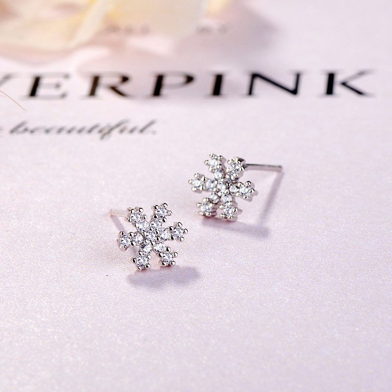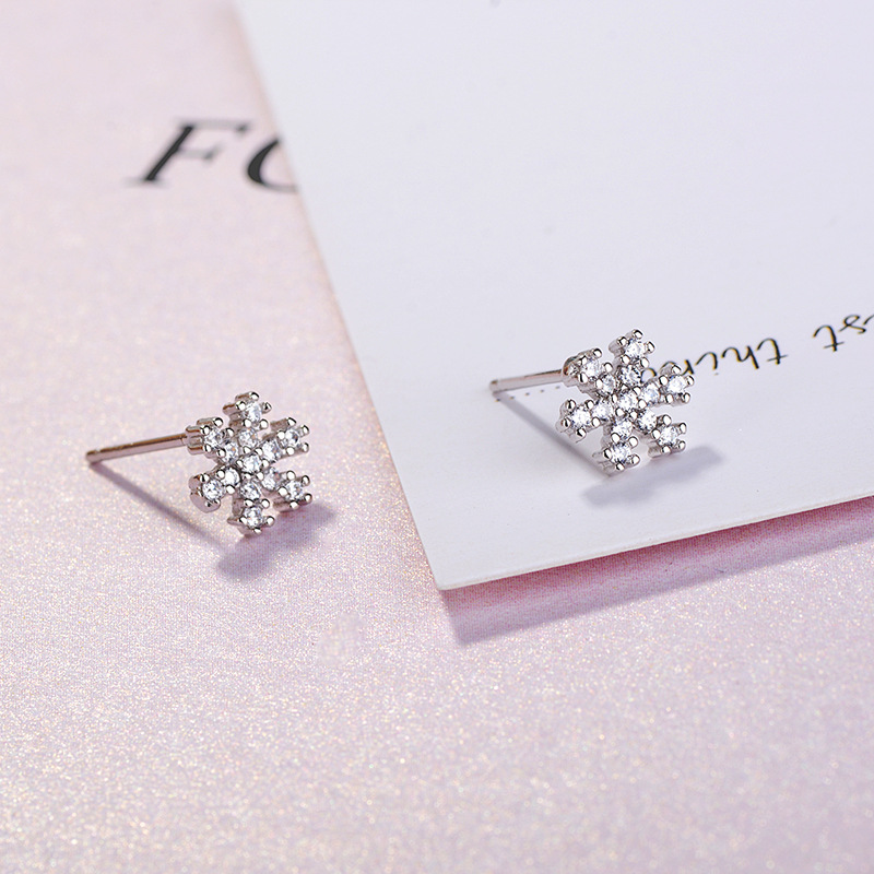 SATN122E100392 S925純銀雪花鑲鉆耳釘甜美日韓版圣誕冬天款簡約耳飾生產