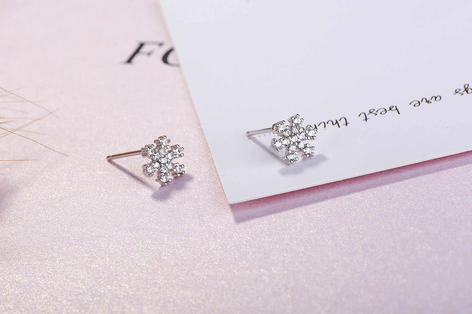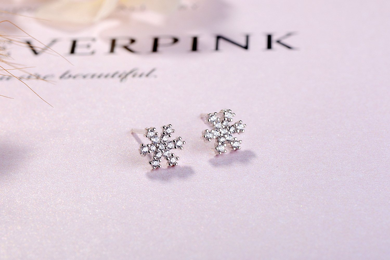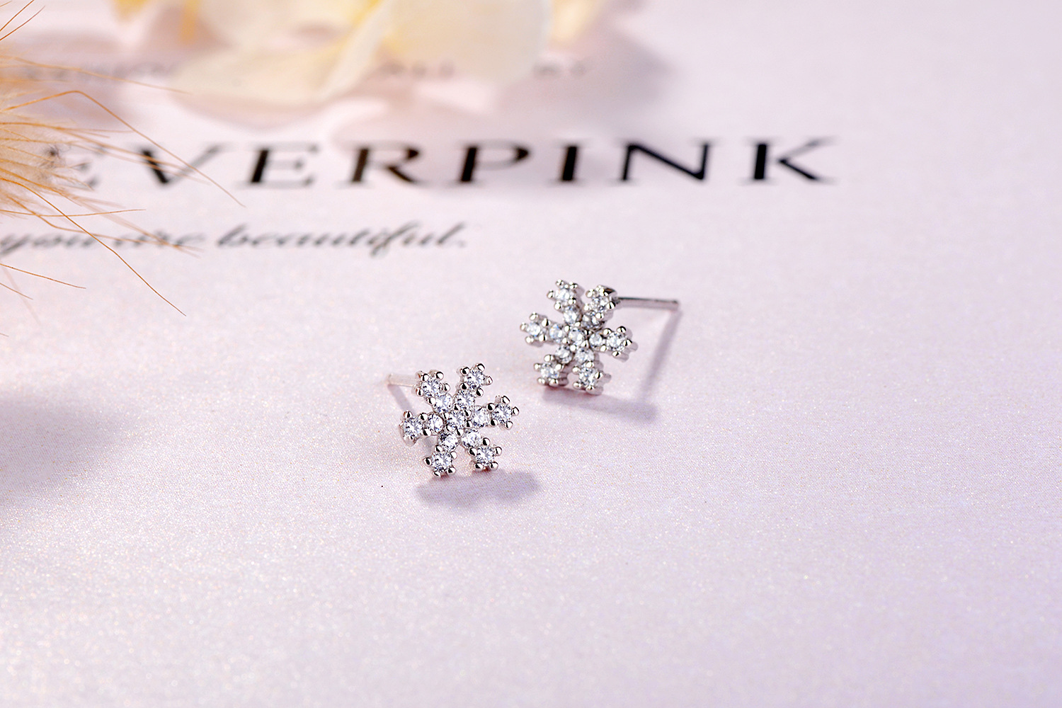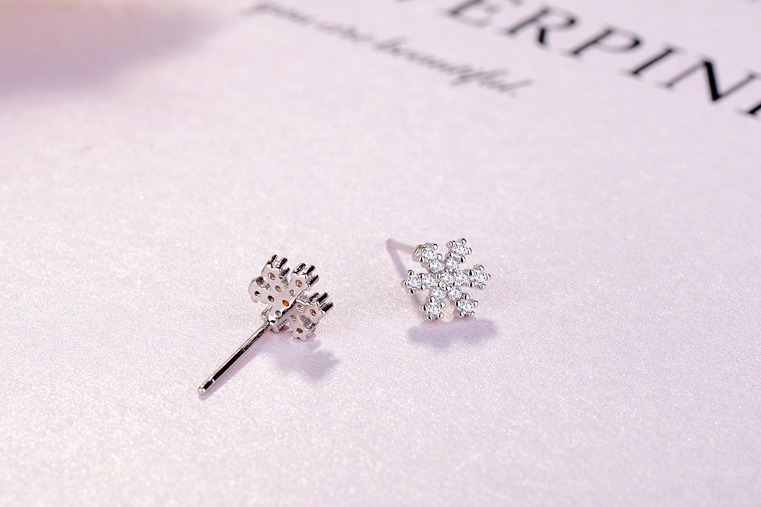 SATN122E100392 S925純銀雪花鑲鉆耳釘甜美日韓版圣誕冬天款簡約耳飾生產