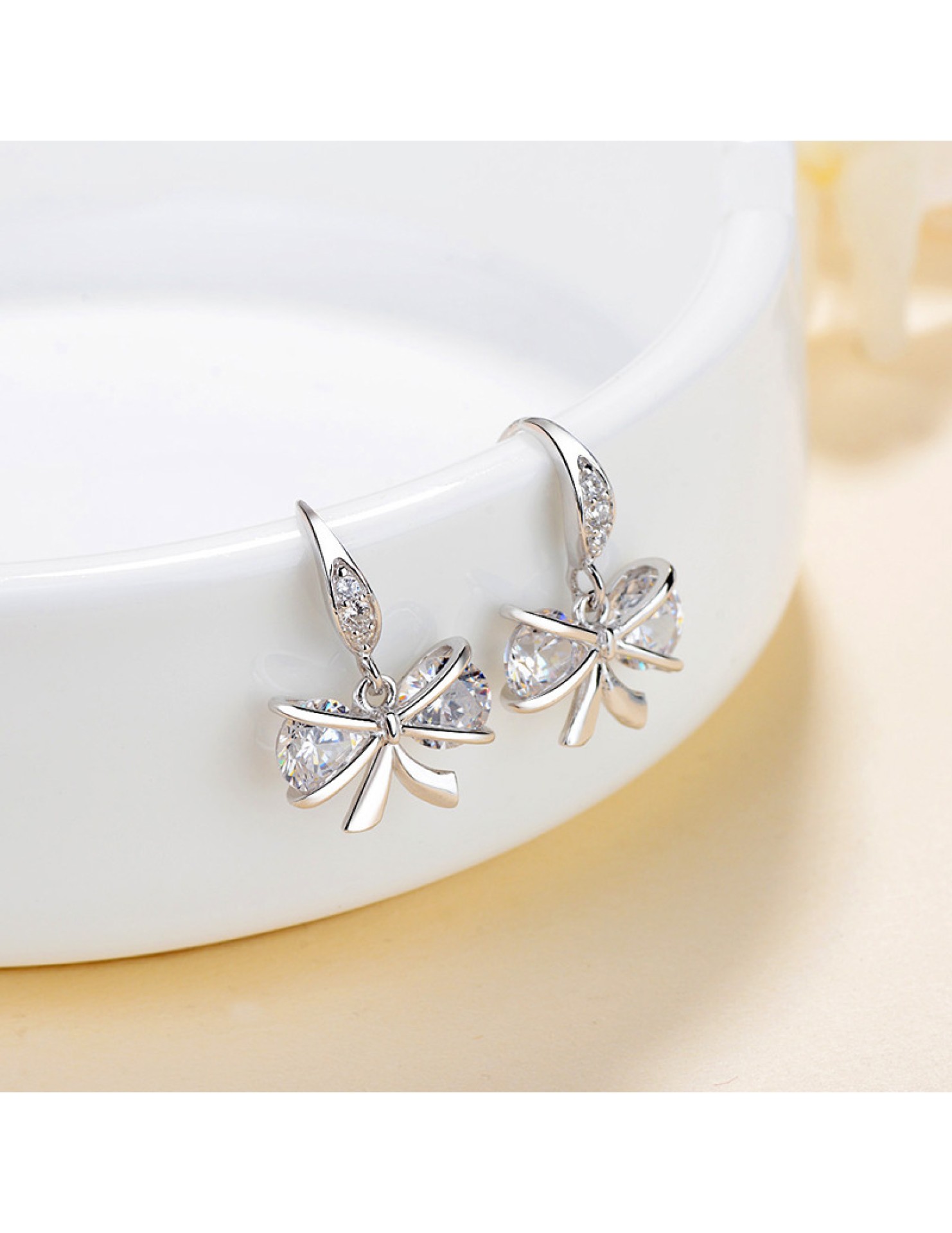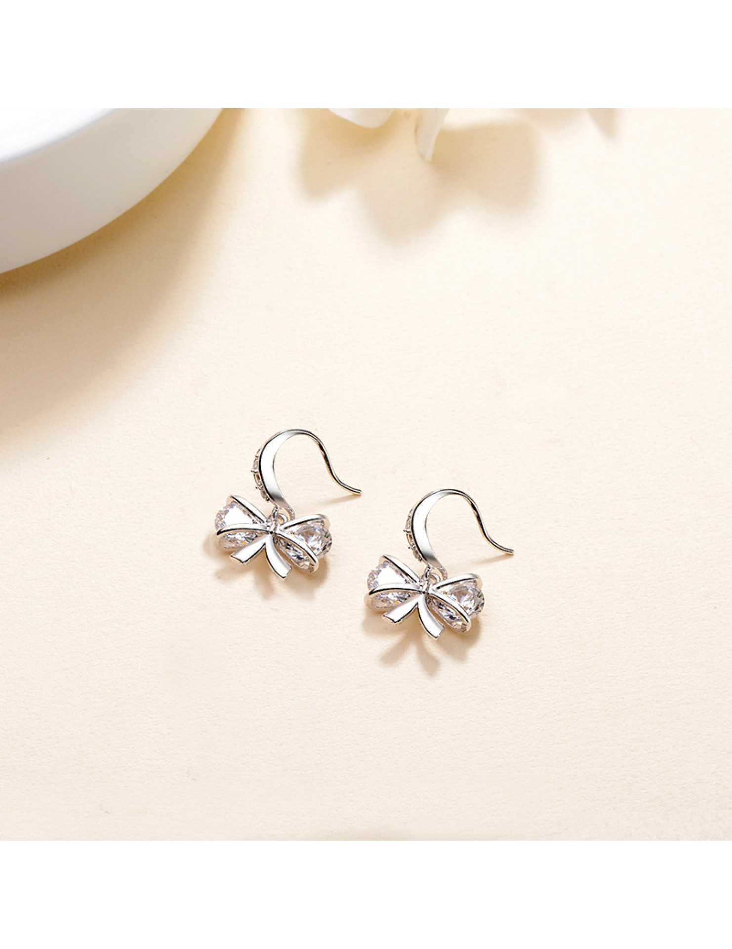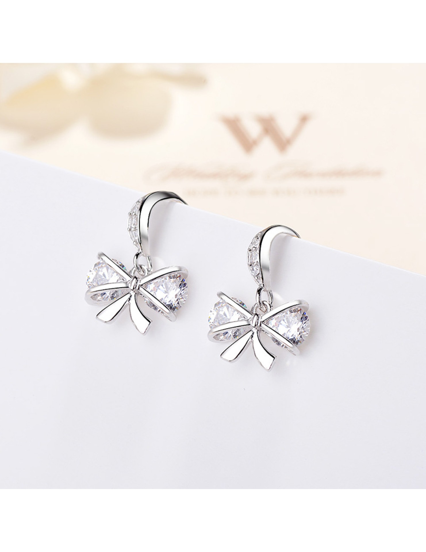 SATN122E100396 S925純銀時尚蝴蝶結鑲鉆耳釘耳飾女日韓甜美耳墜耳環