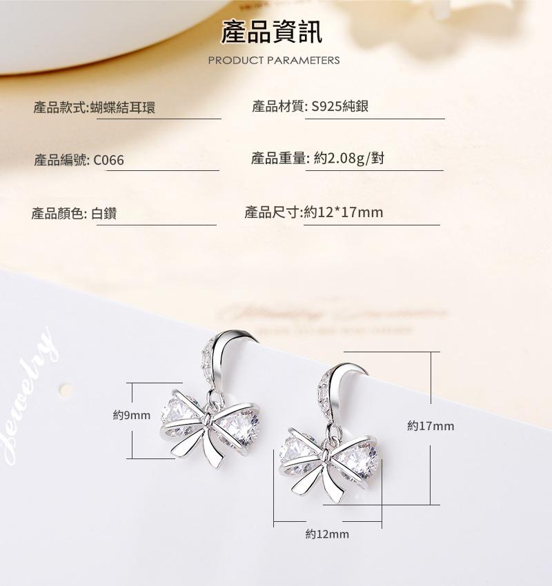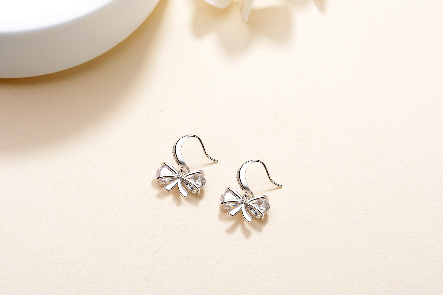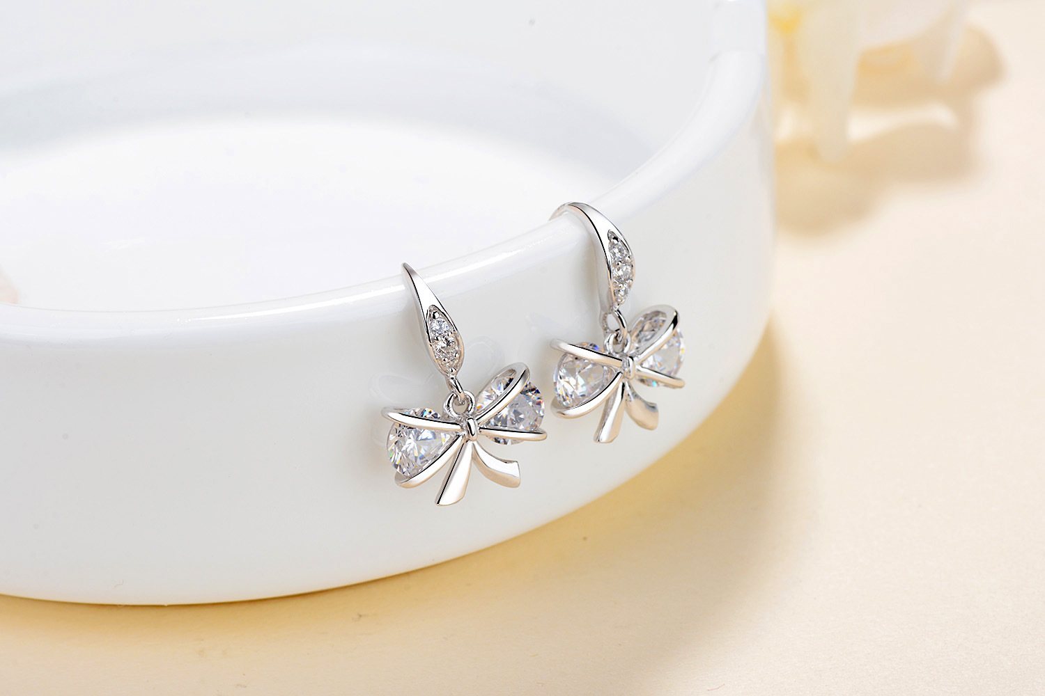SATN122E100396 S925純銀時尚蝴蝶結鑲鉆耳釘耳飾女日韓甜美耳墜耳環