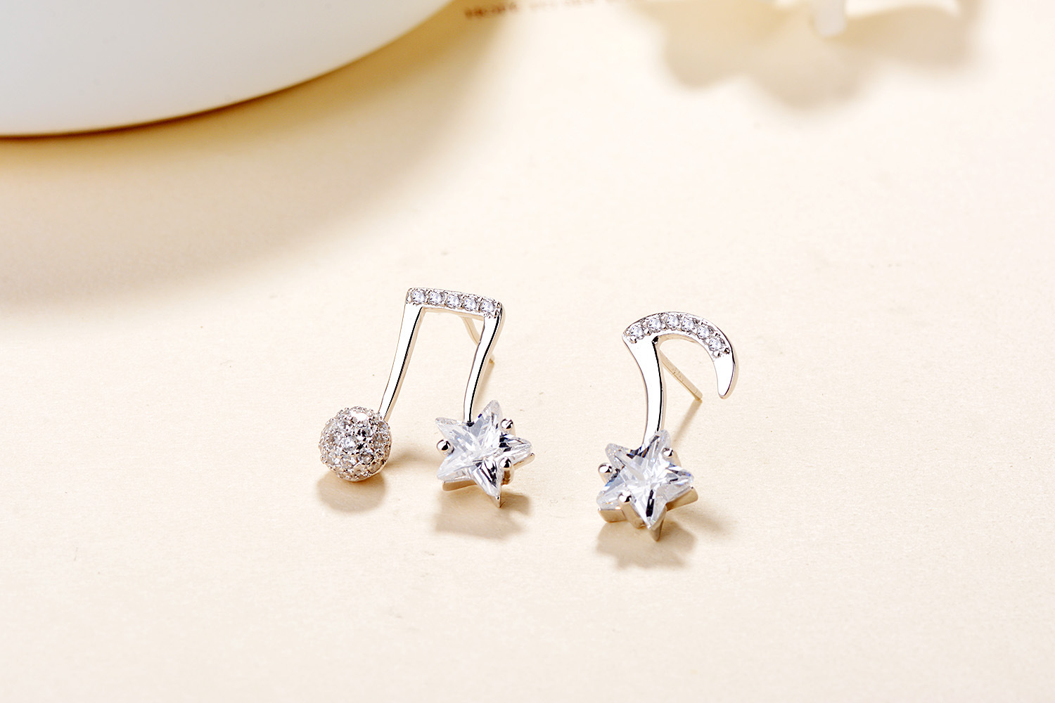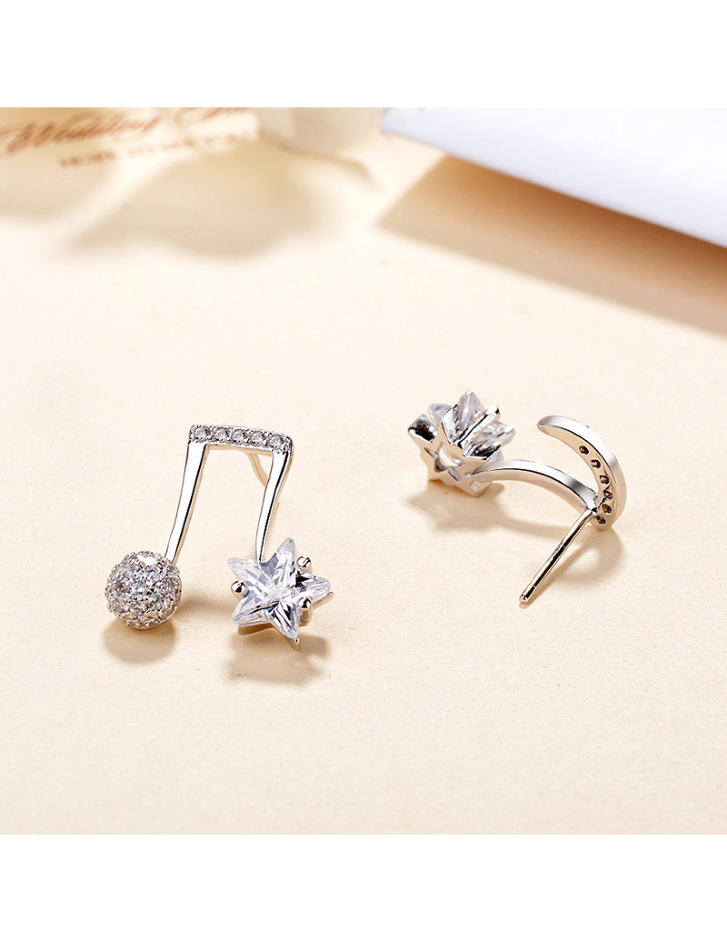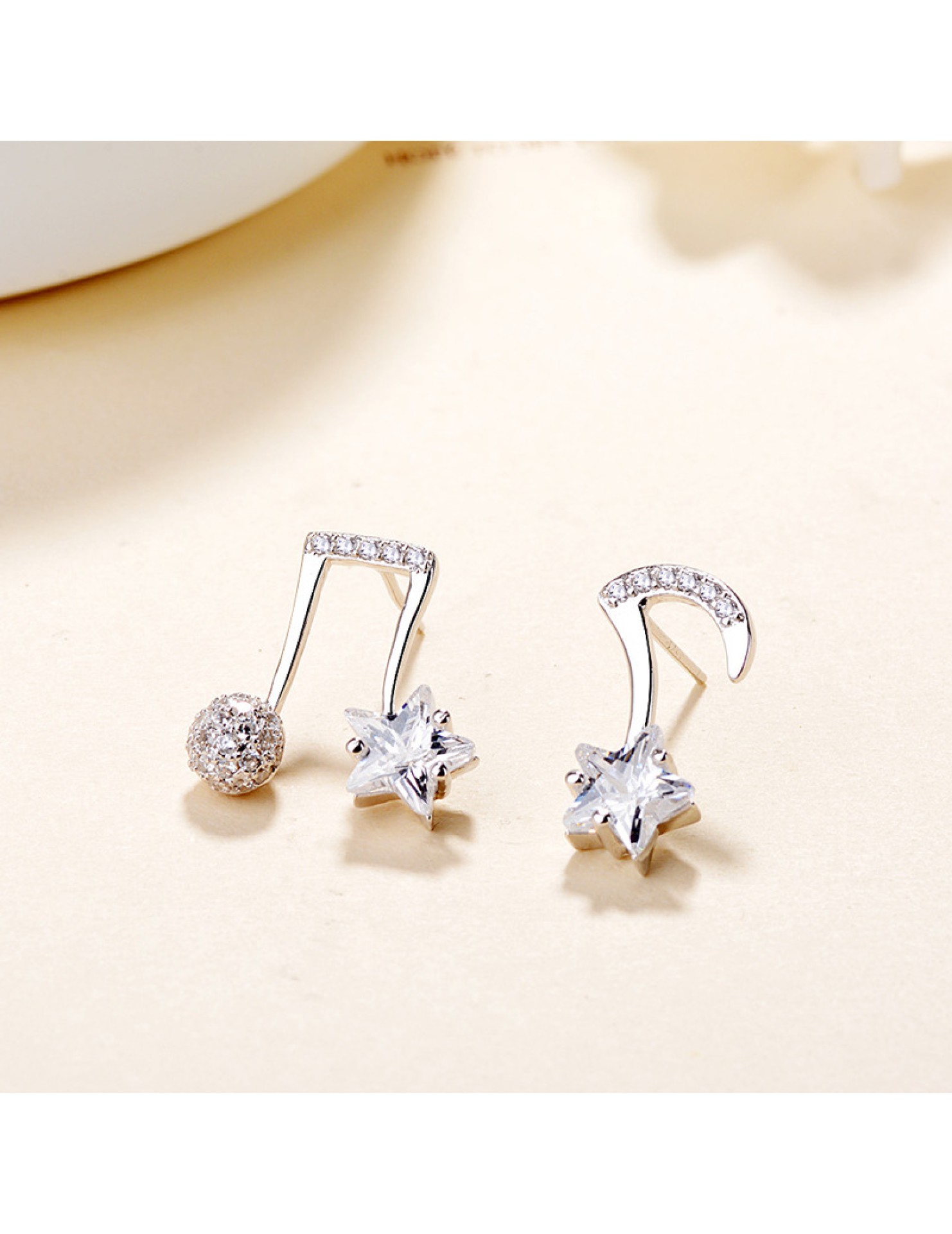 SATN122E100397 S925純銀韓版百搭甜美音符耳釘女氣質個性耳墜百搭耳飾不對稱耳環