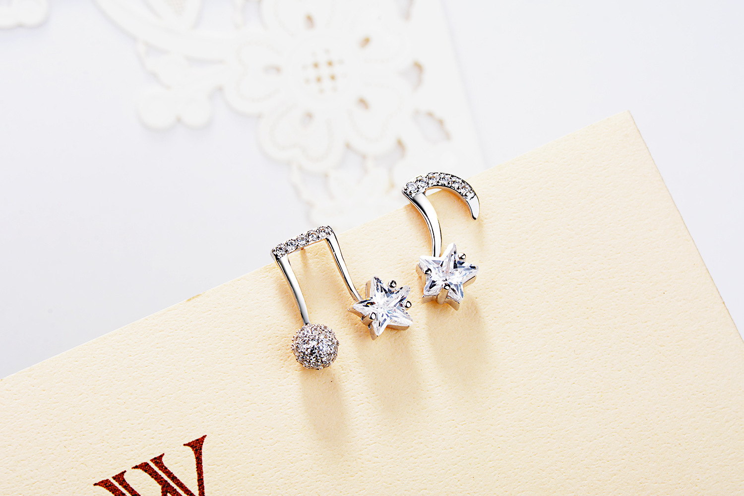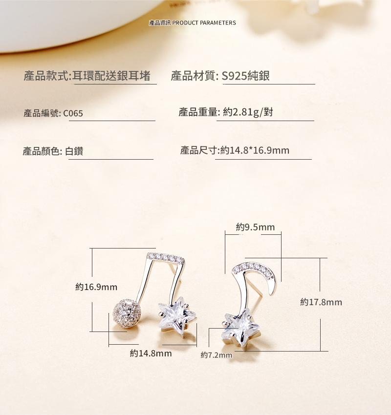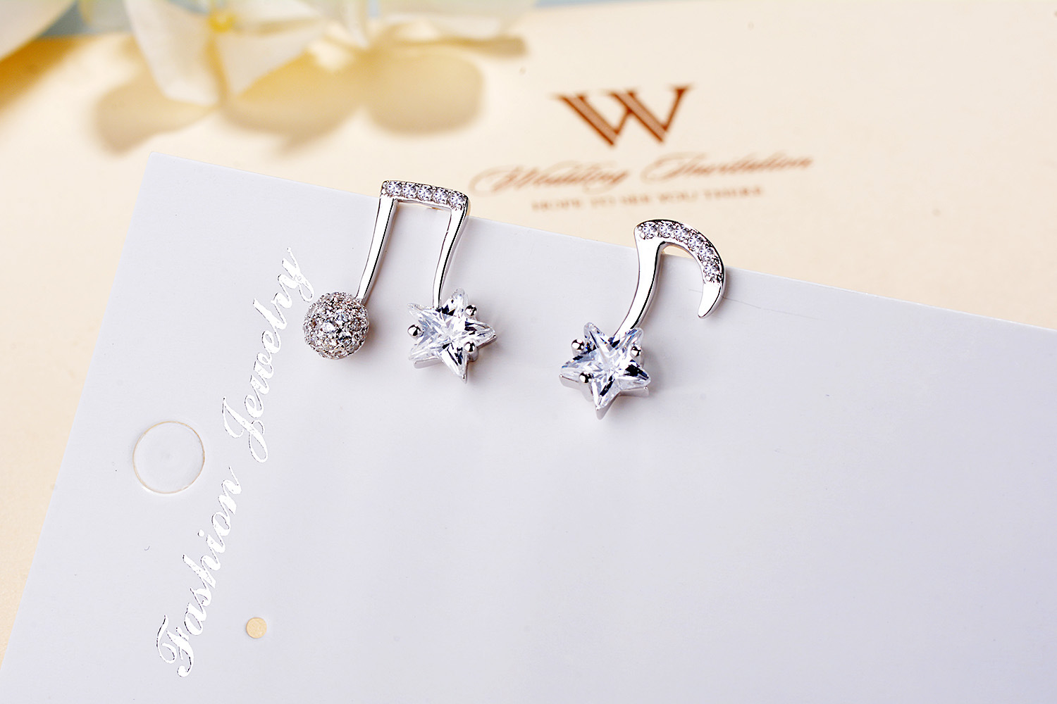 SATN122E100397 S925純銀韓版百搭甜美音符耳釘女氣質個性耳墜百搭耳飾不對稱耳環