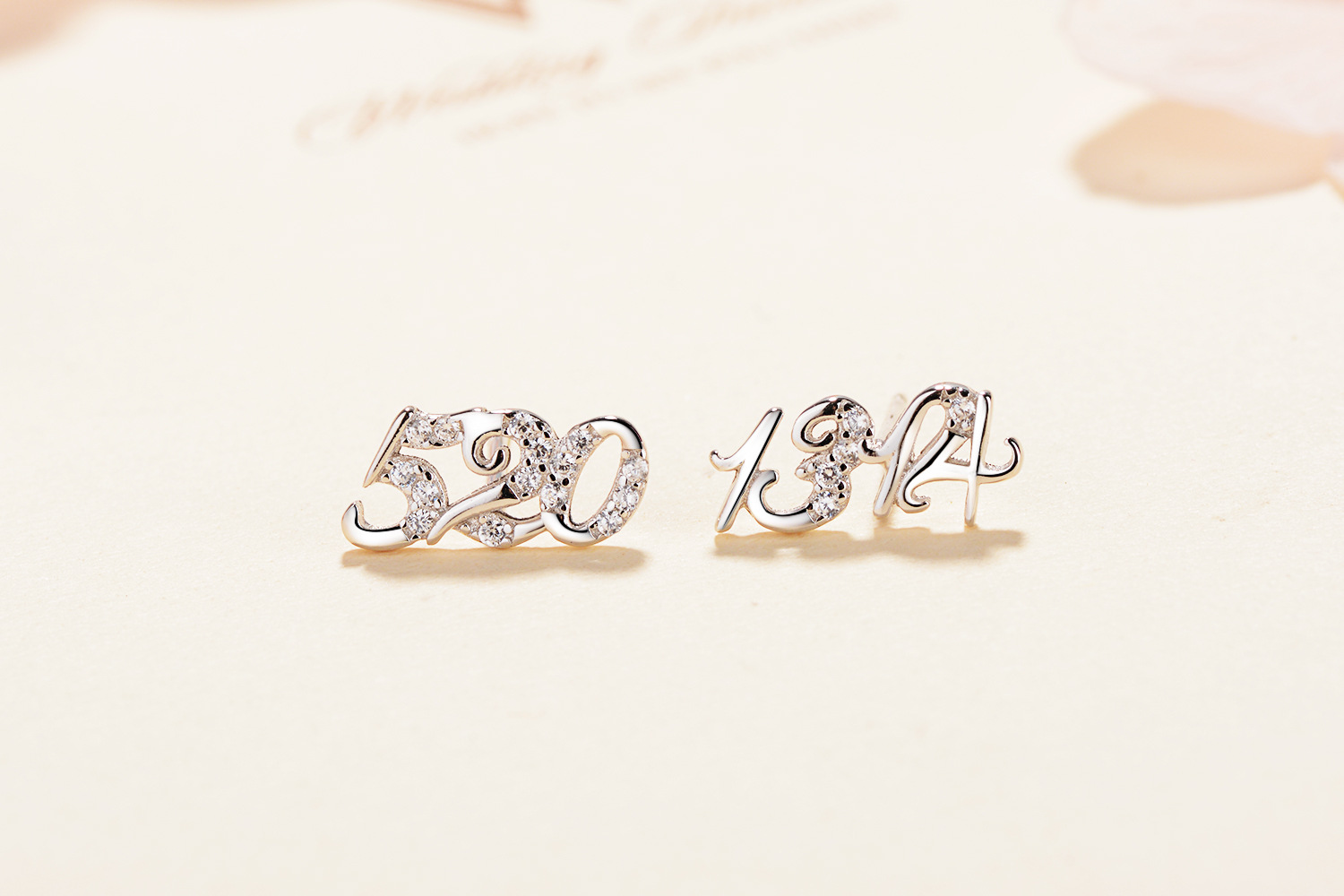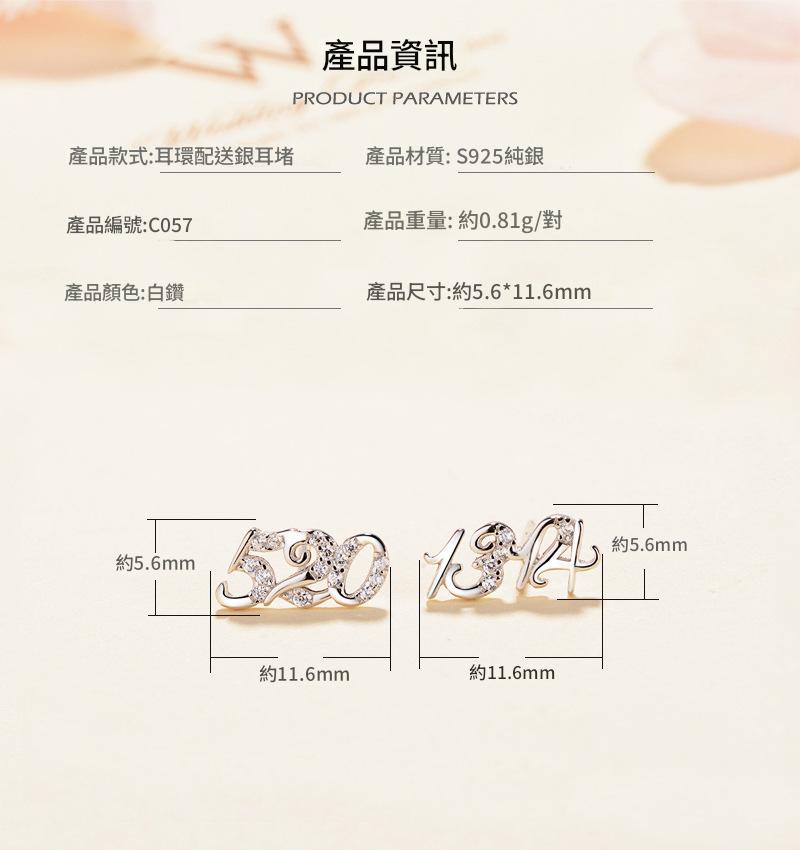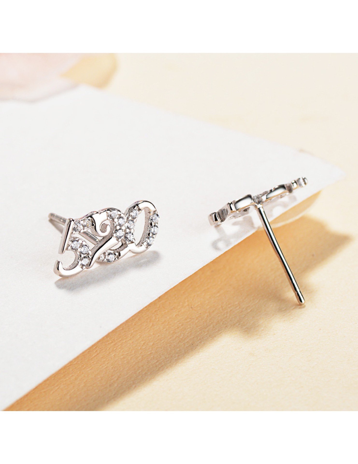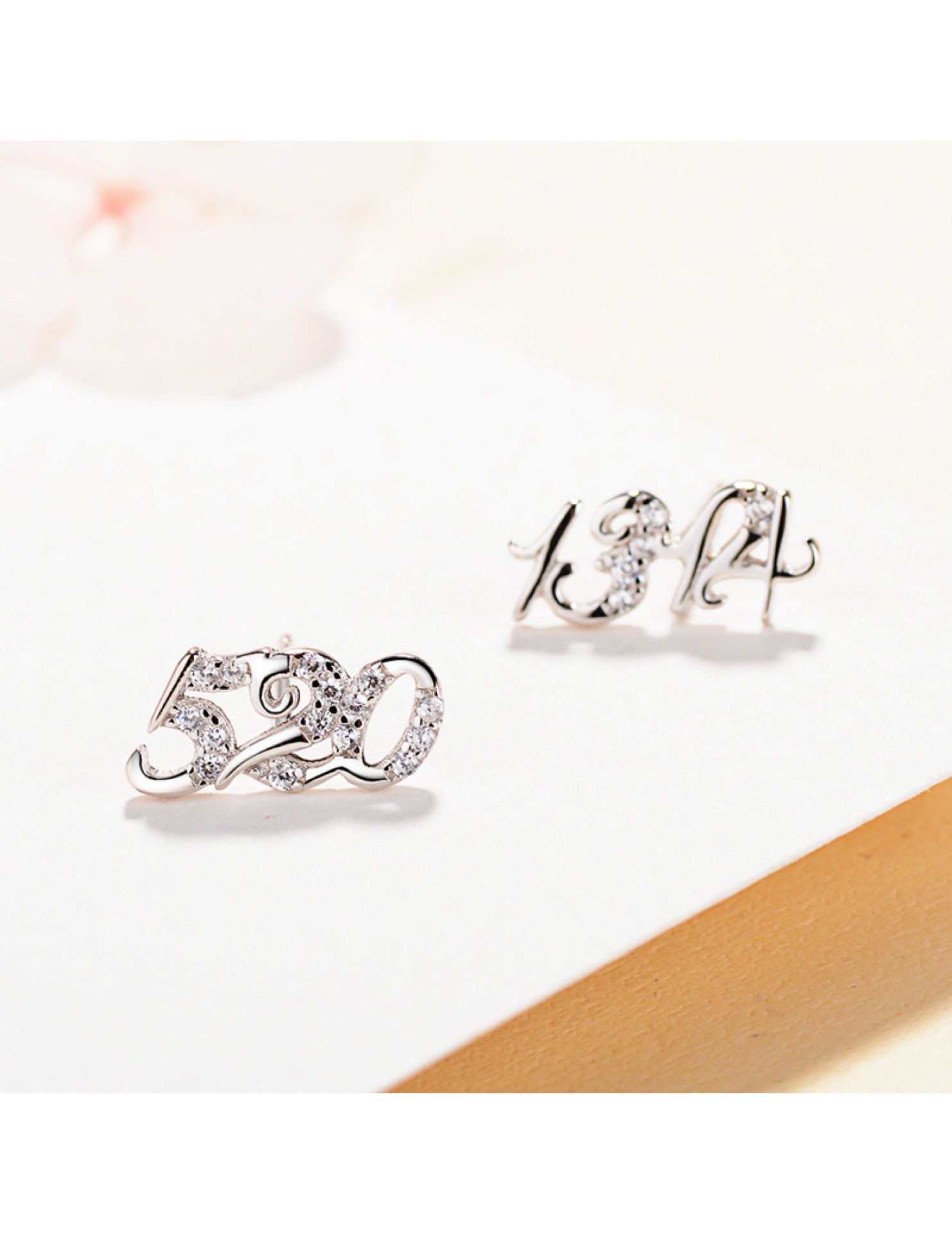 SATN122E100403 S925純銀女耳釘520 1314幸運情侶耳釘韓版簡約耳飾情人節禮物