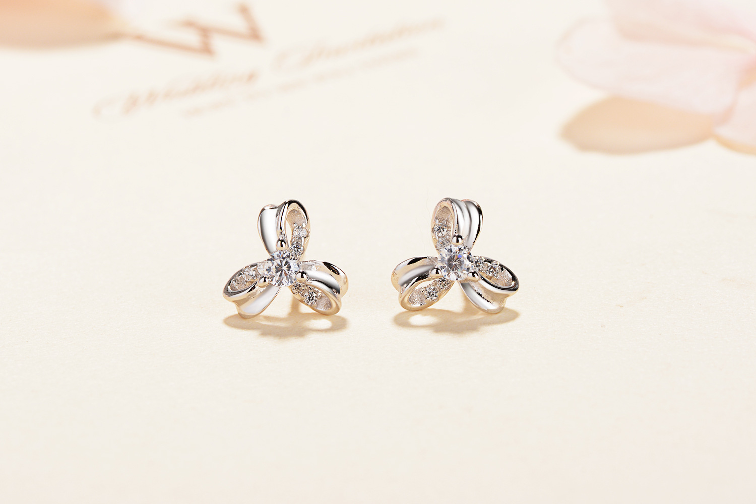 SATN122E100405 925純銀女韓版時尚簡約氣質花朵耳釘小清新花朵耳飾代發
