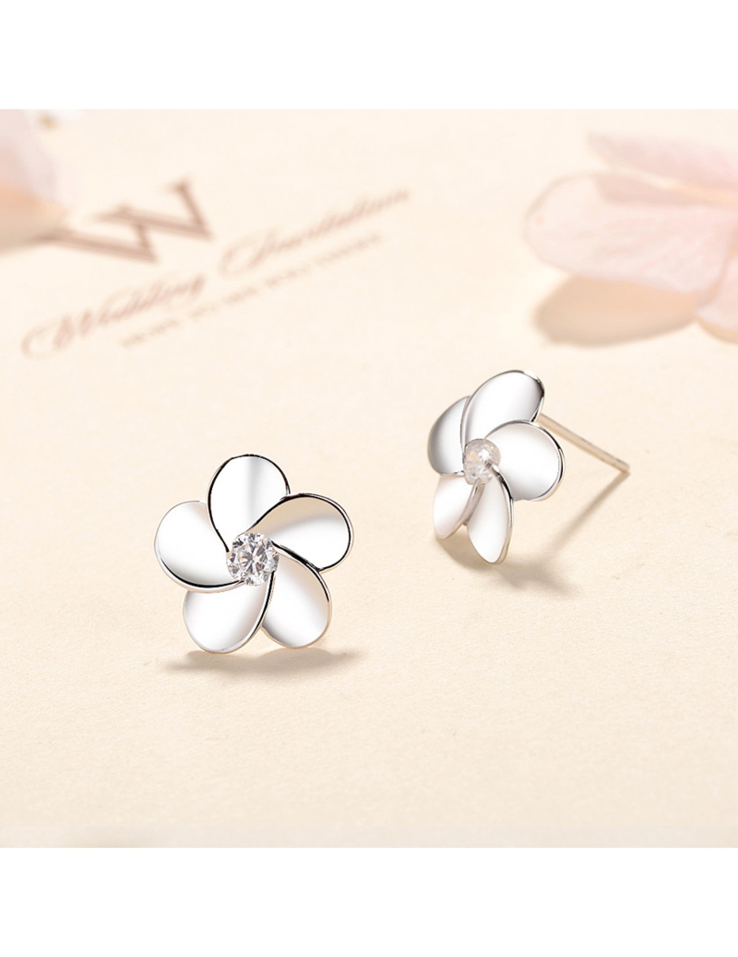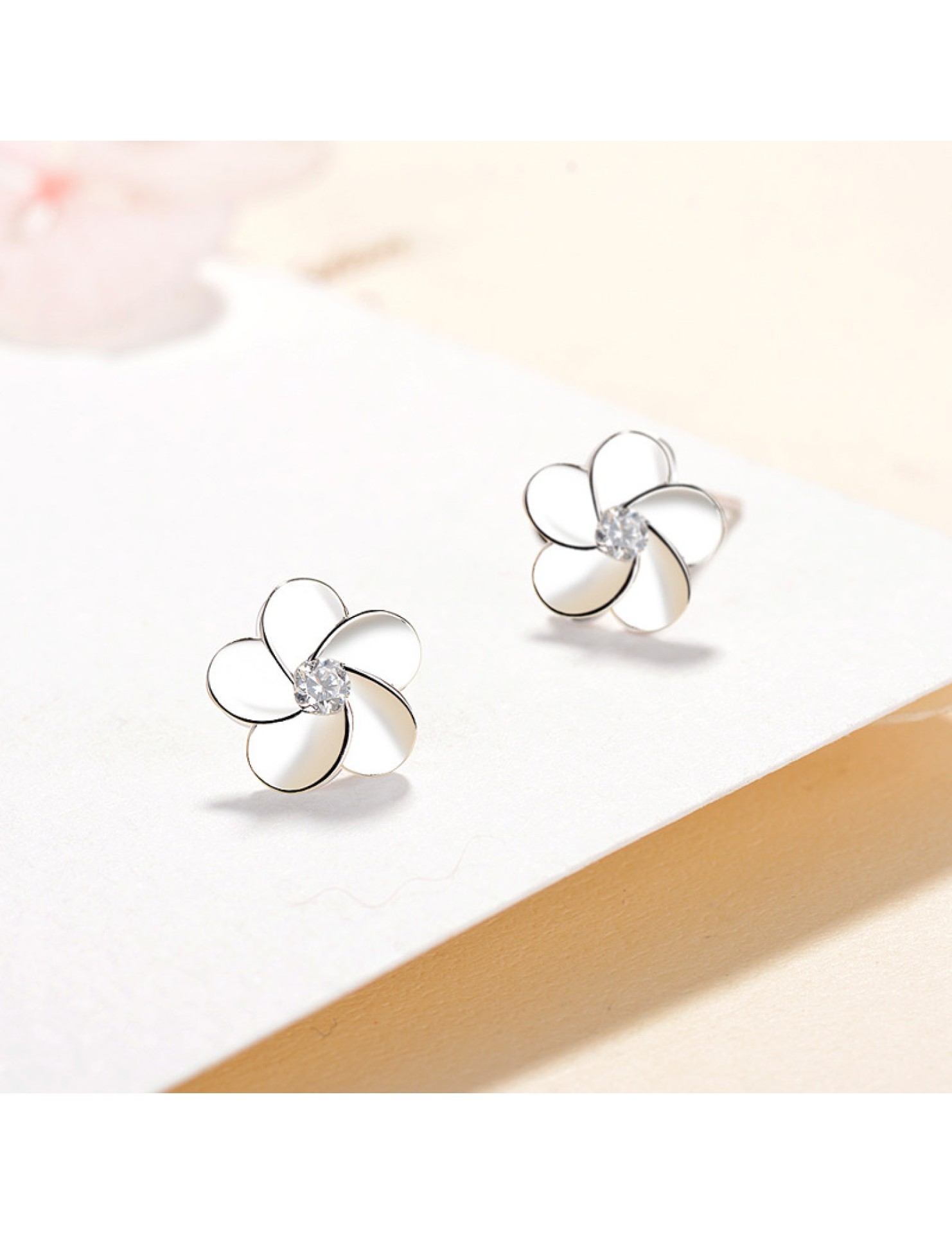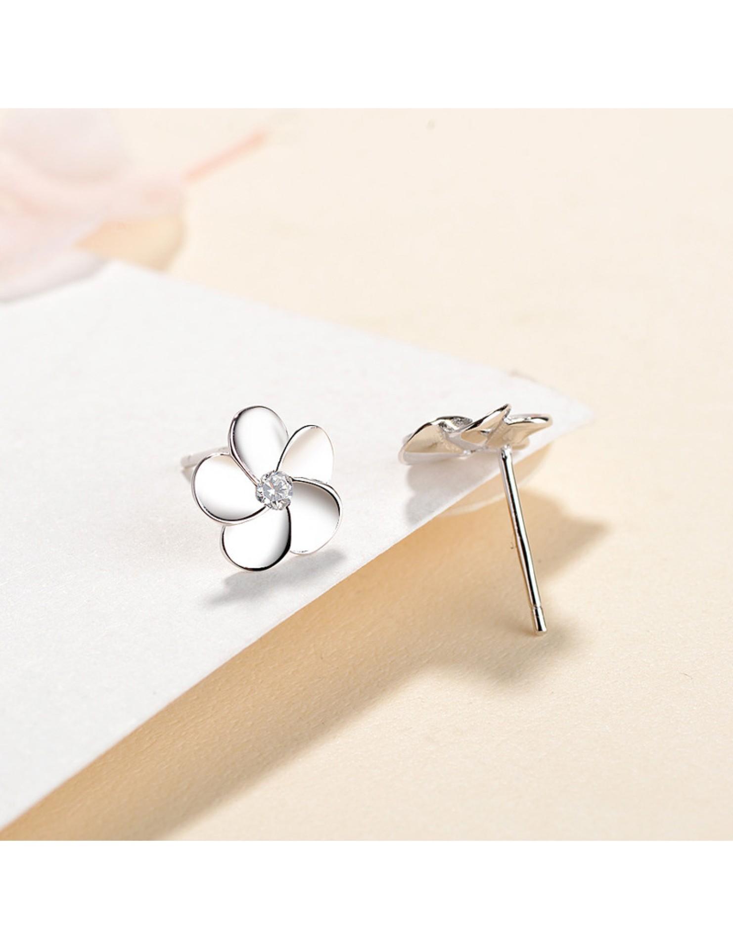 SATN122E100410 S925純銀花朵耳釘女韓版可愛甜美五瓣花耳釘簡約學生花朵耳飾品