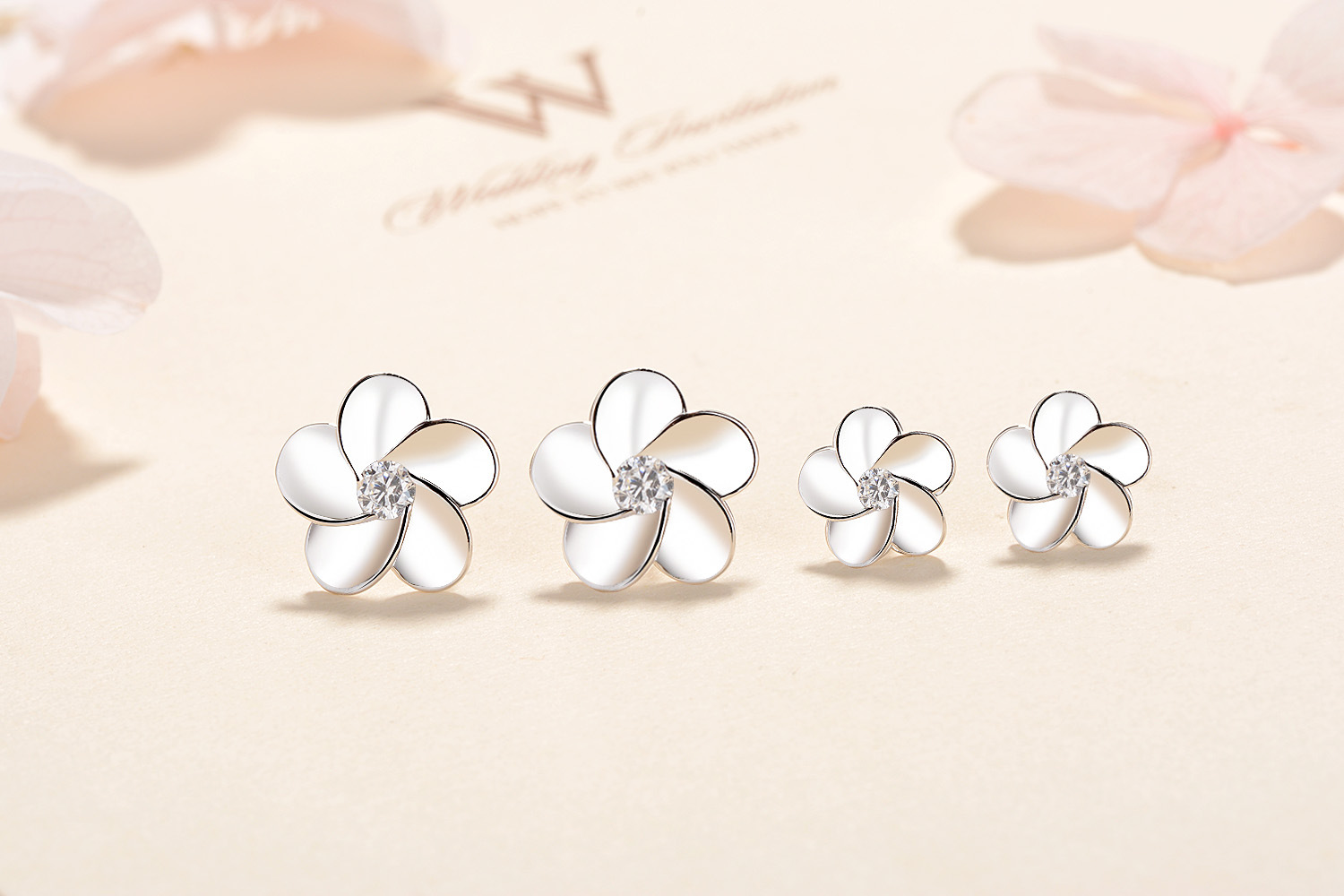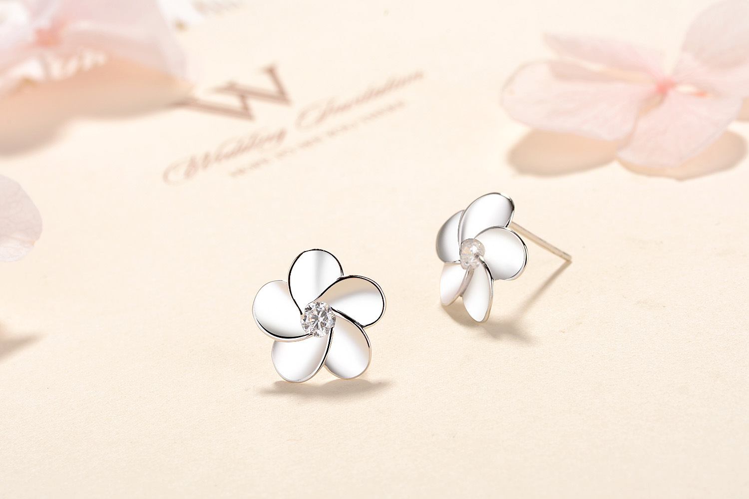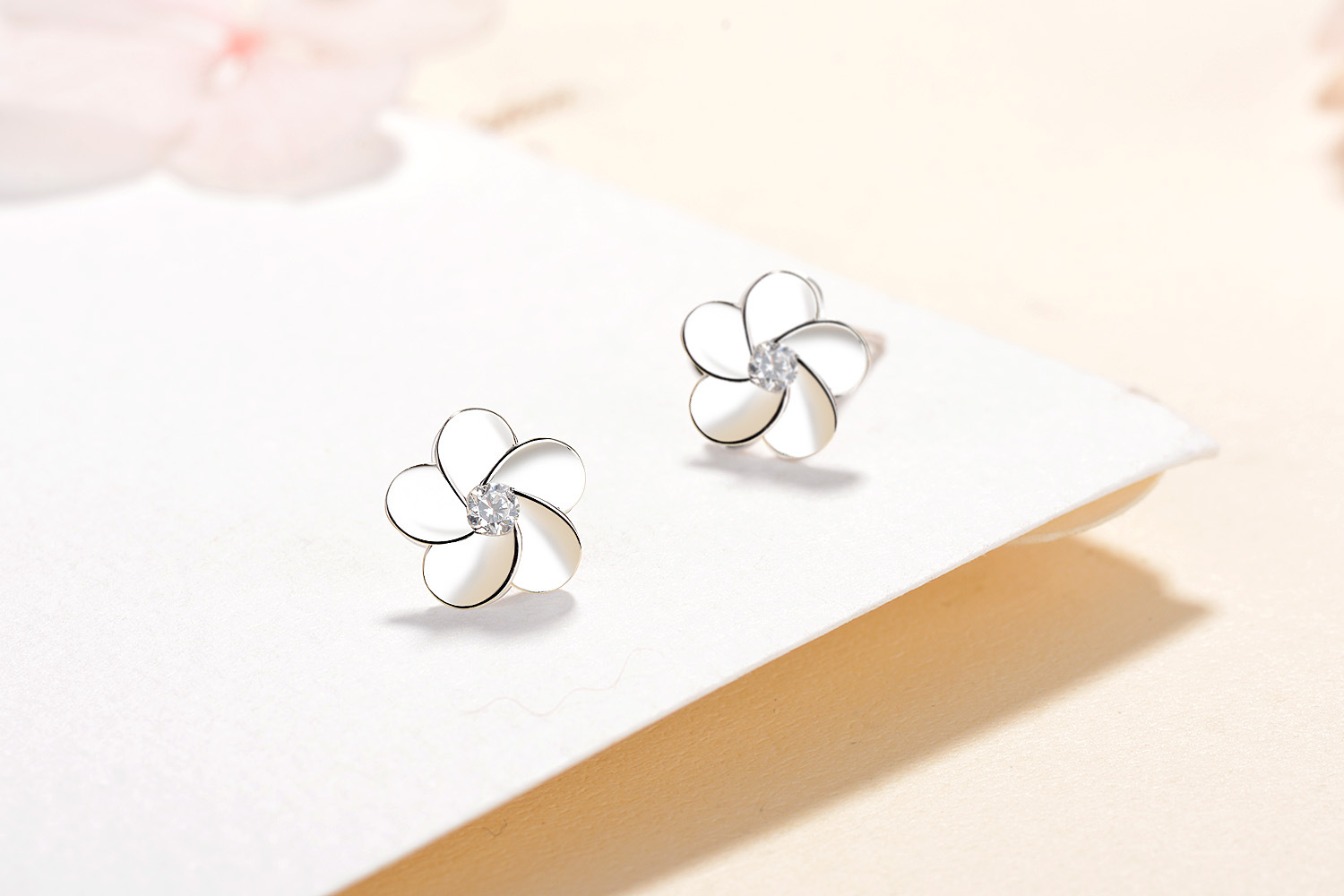 SATN122E100410 S925純銀花朵耳釘女韓版可愛甜美五瓣花耳釘簡約學生花朵耳飾品