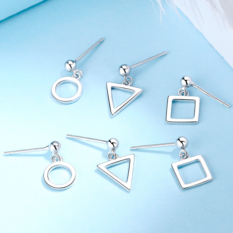 SATN122E100420 925純銀日韓百搭簡約幾何耳環韓國正方形三角形圓形耳釘