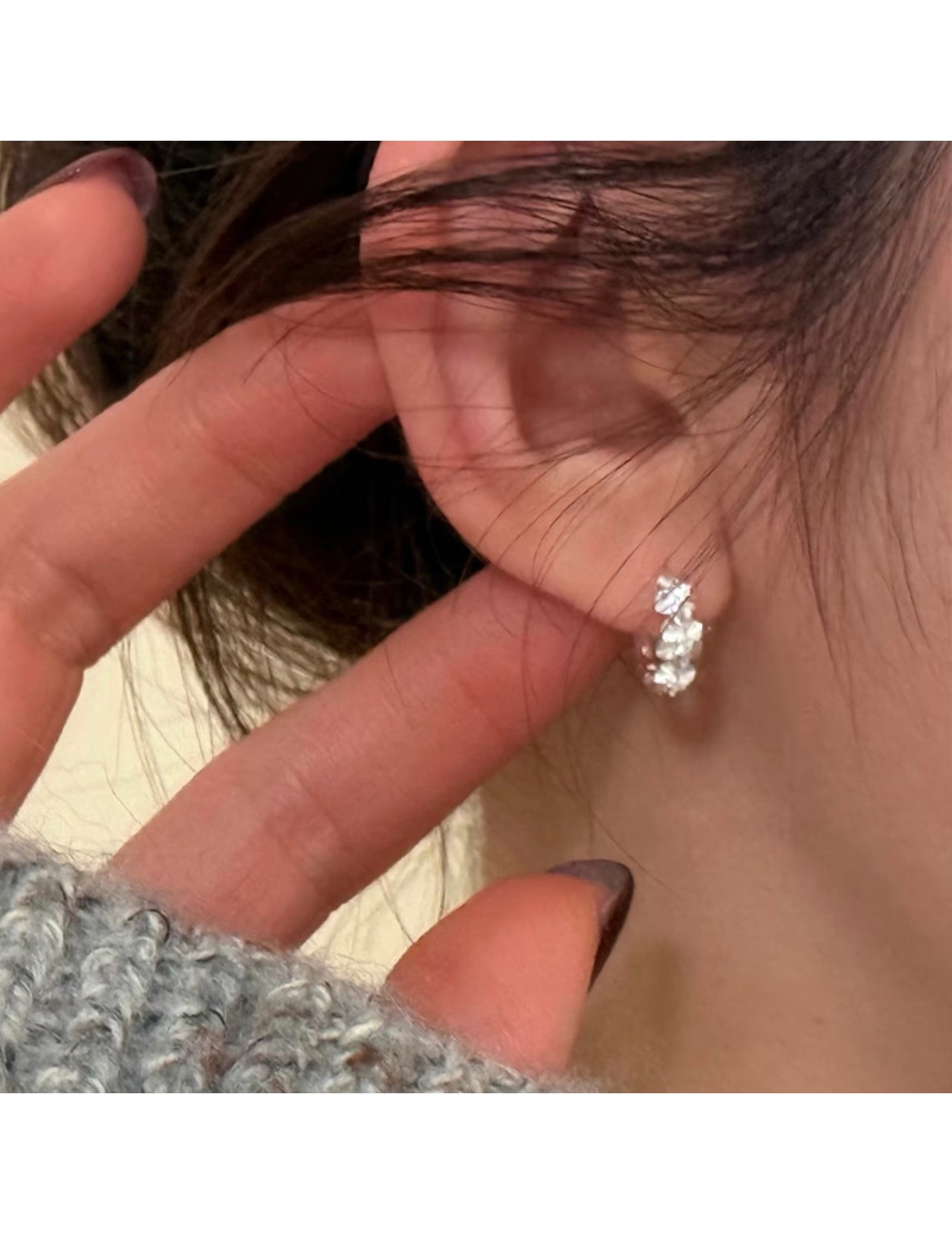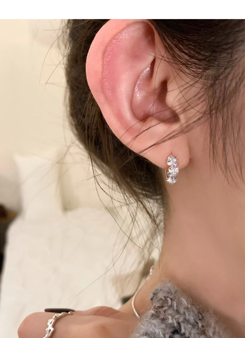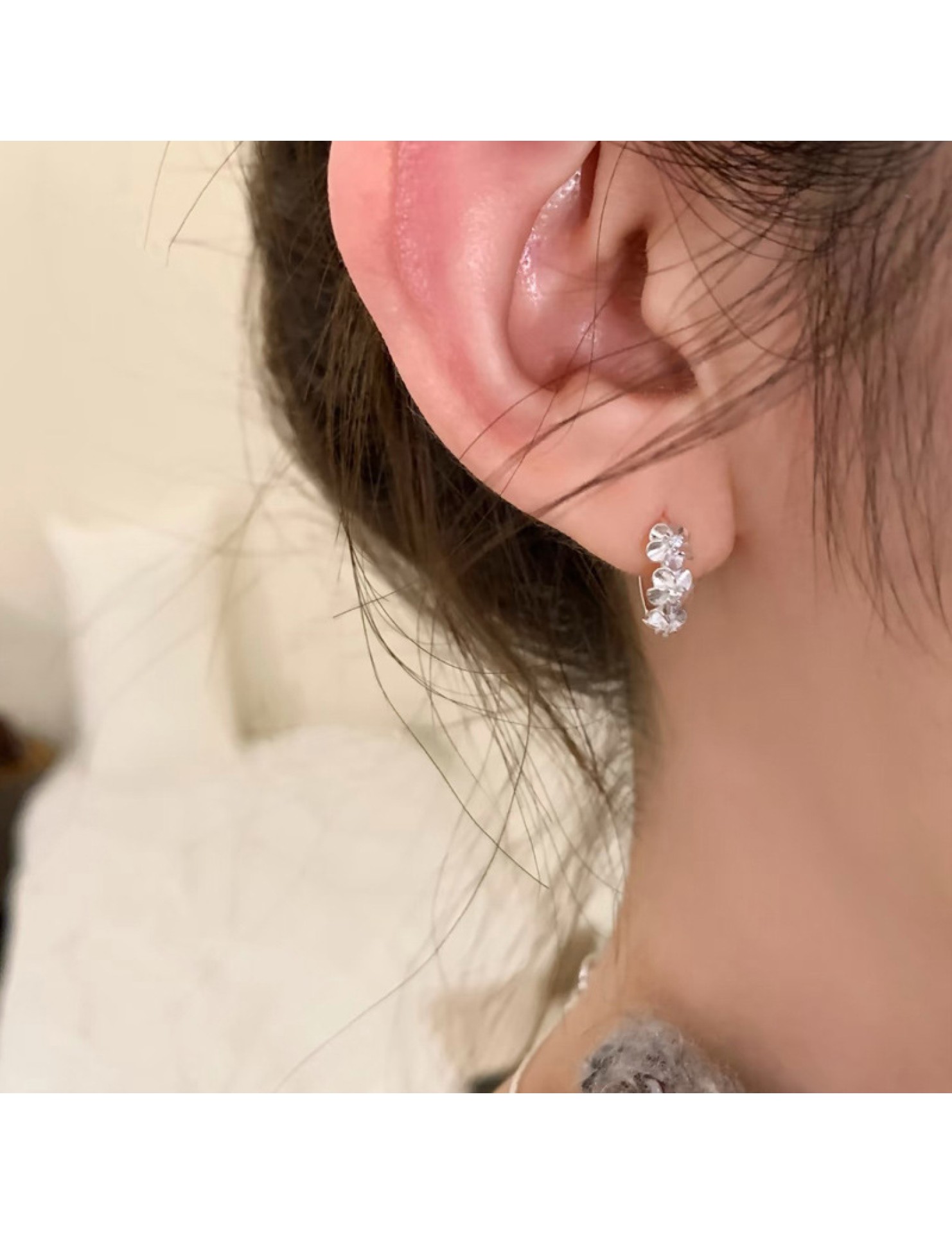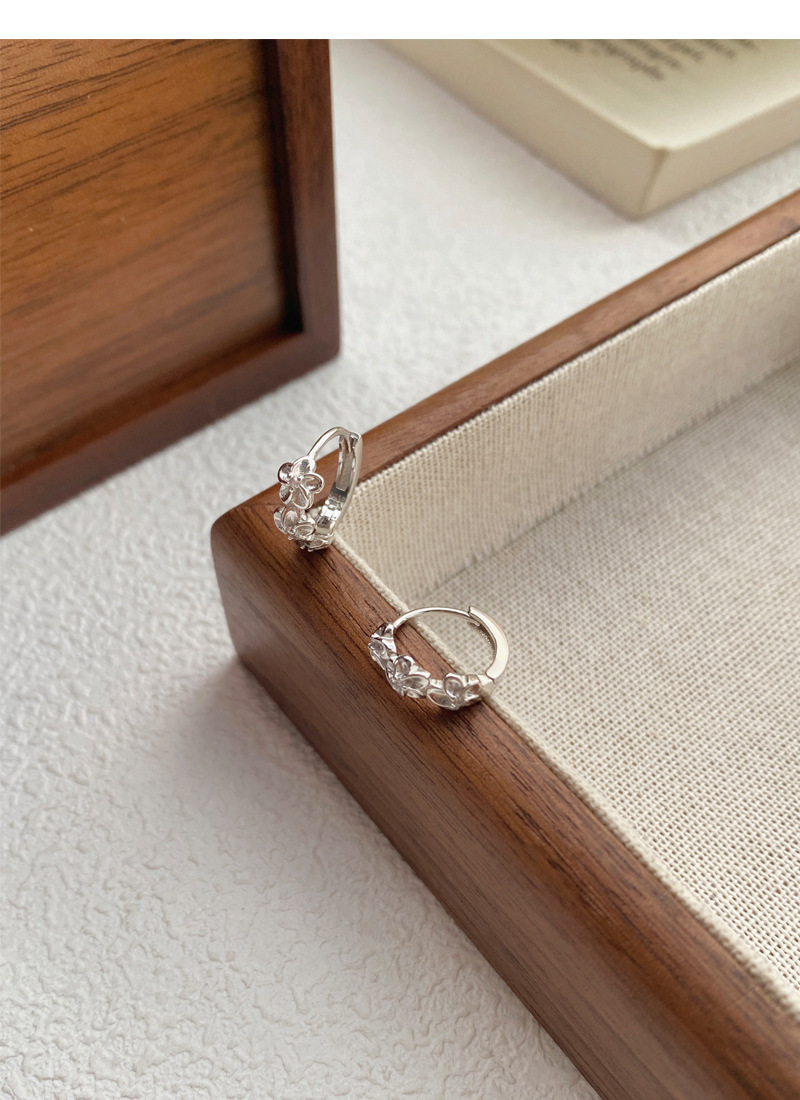 SATN122E100042 S925純銀花朵耳環女小眾百搭氣質繁花耳扣精致甜美耳圈時髦耳飾
