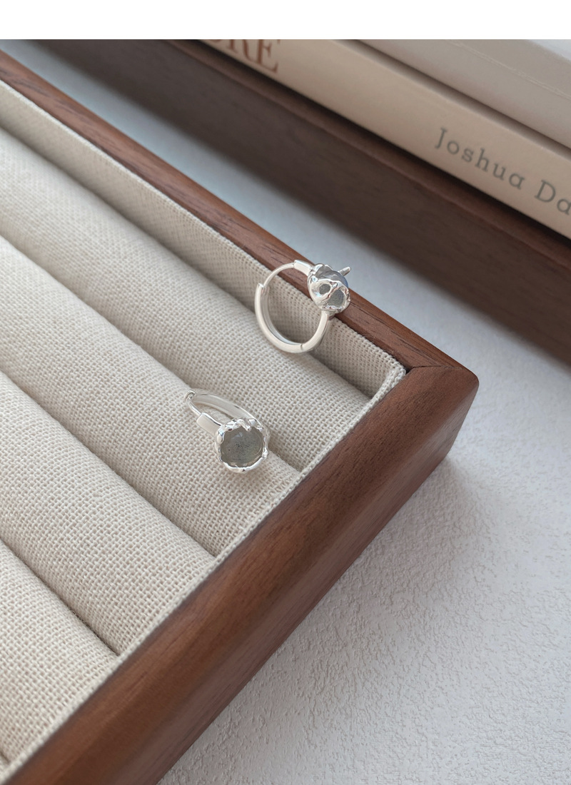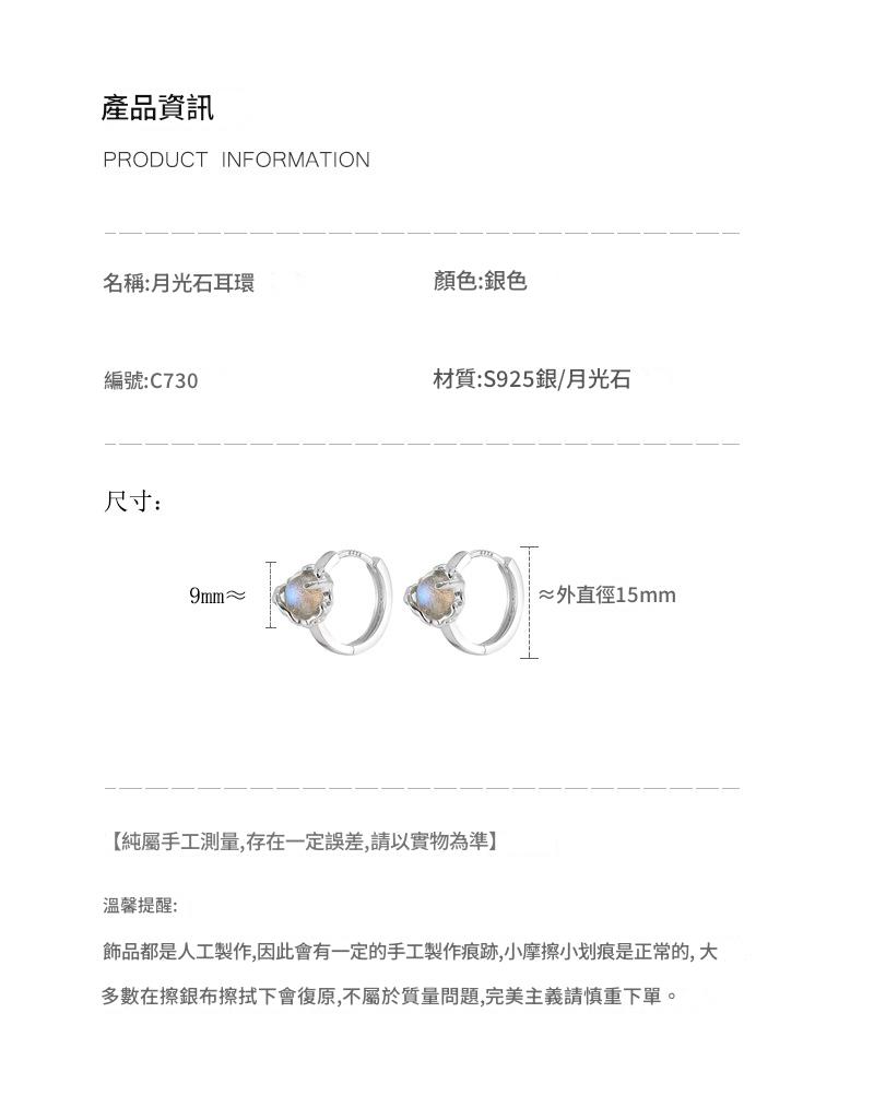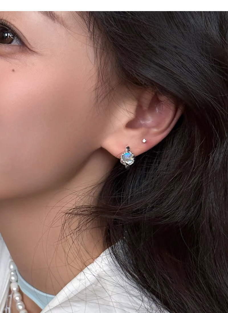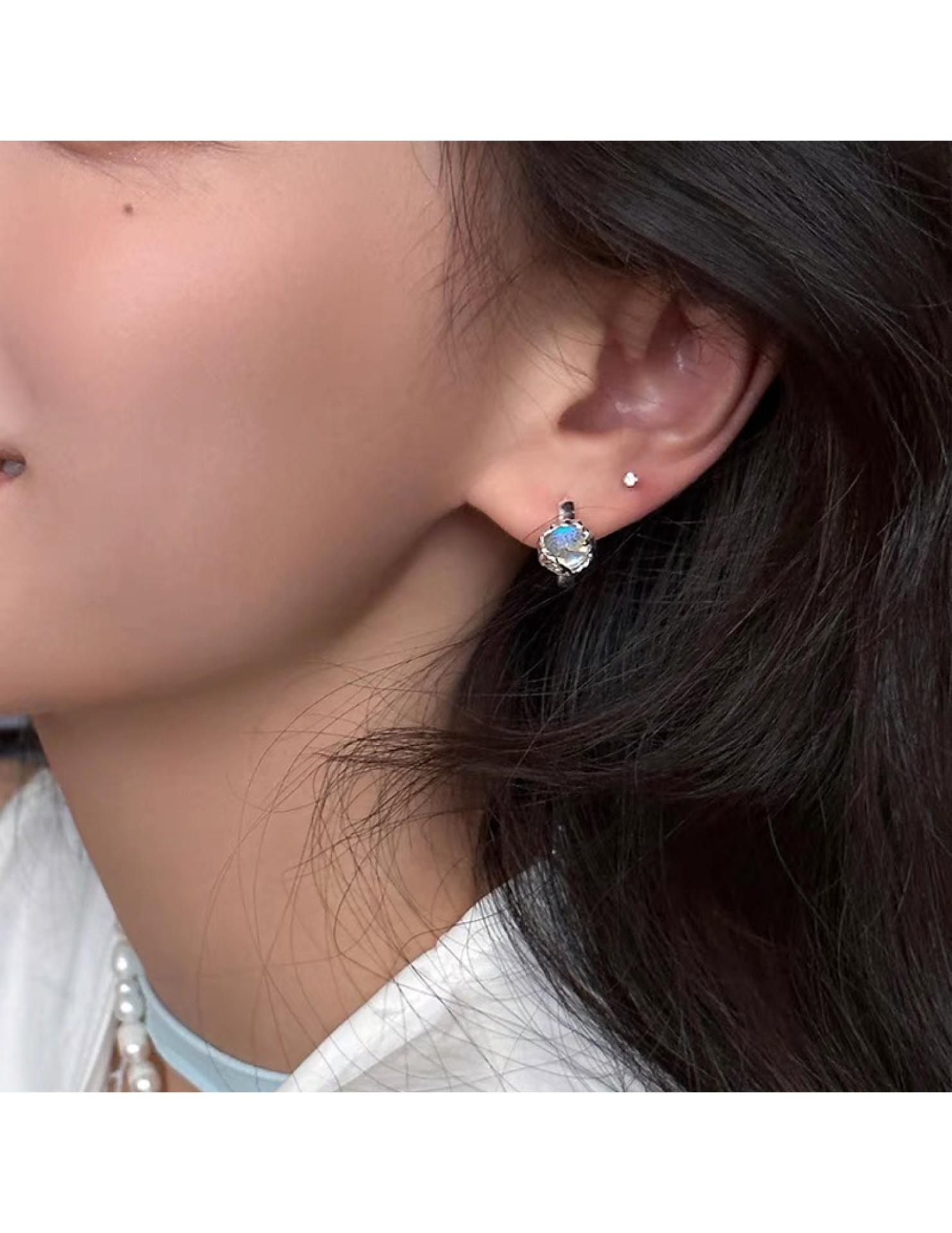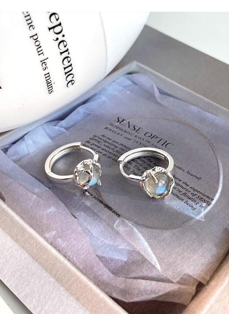 SATN122E100109 S925純銀月光石素圈耳環女輕奢高級感耳扣小眾設計耳釘氣質耳飾