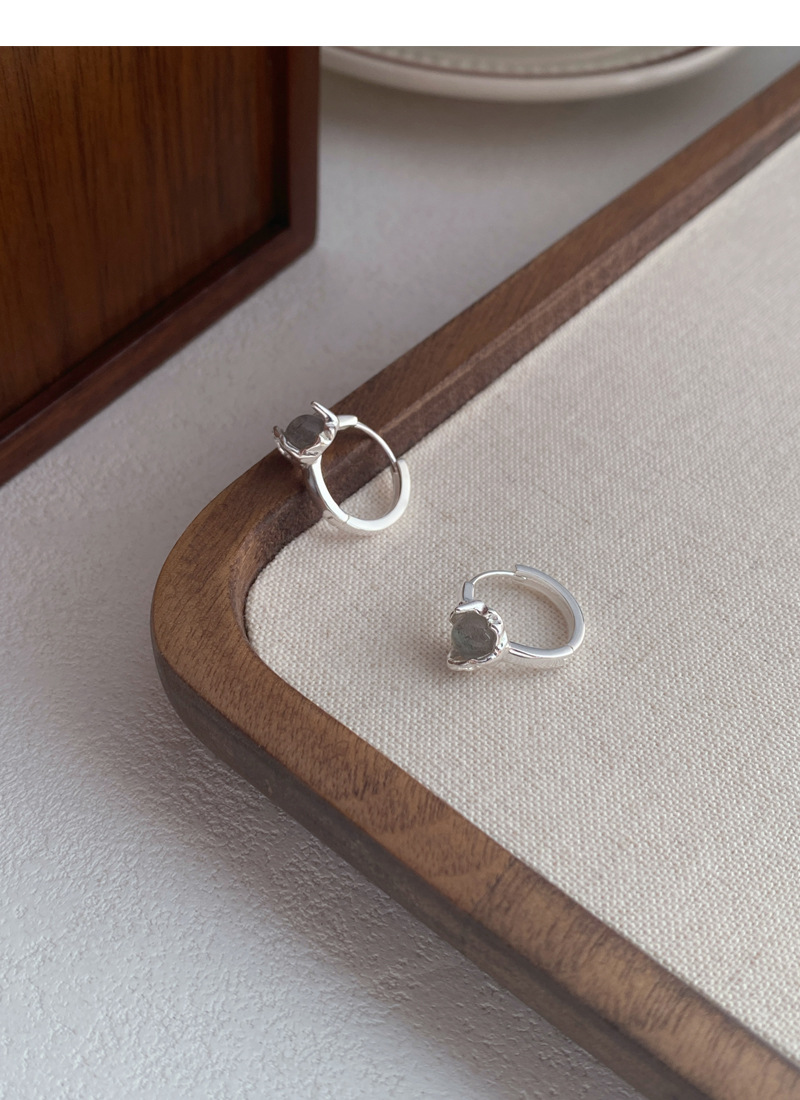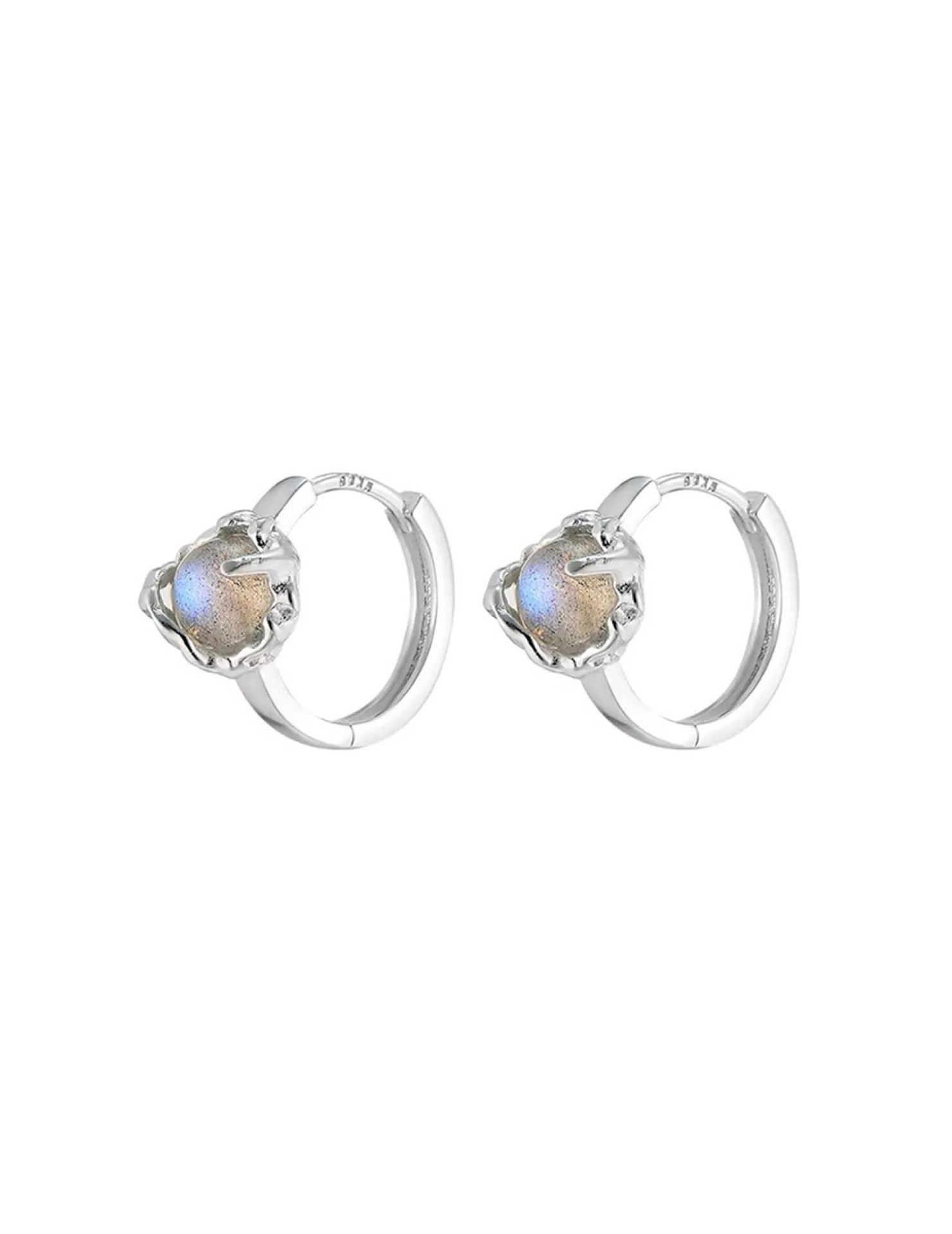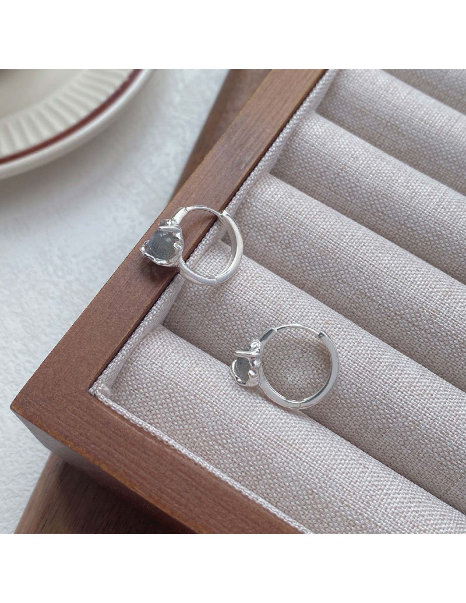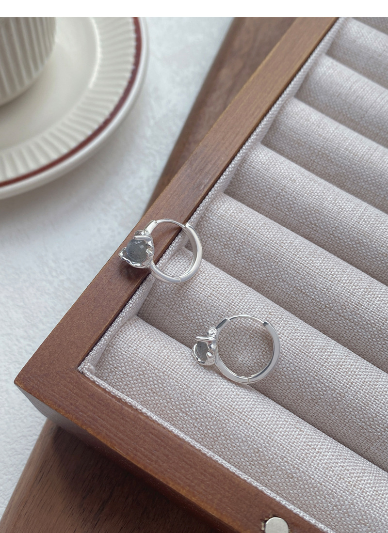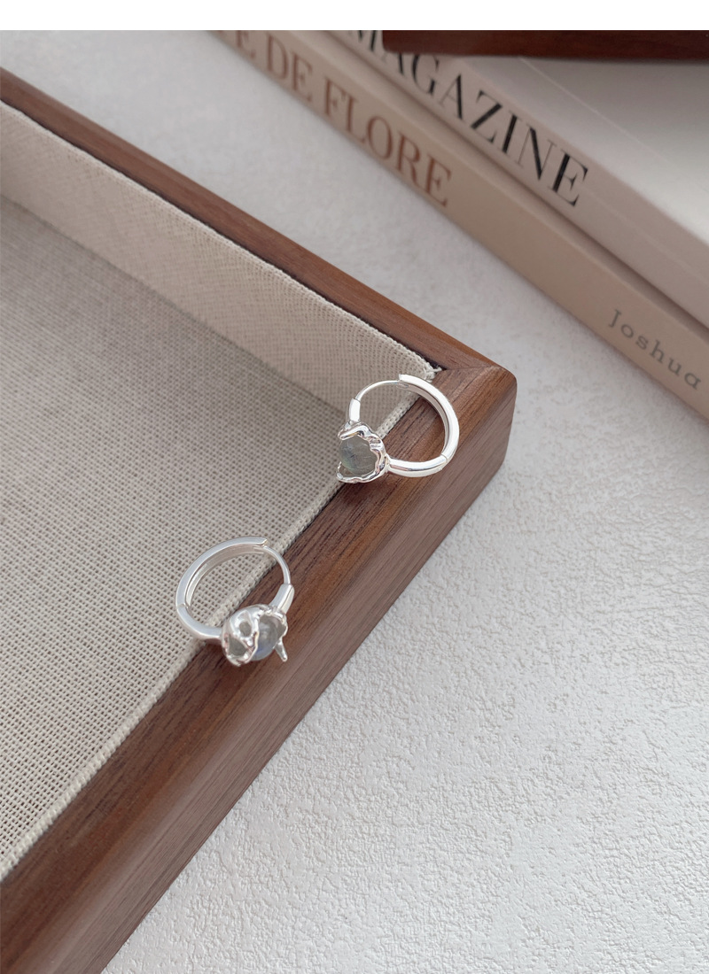 SATN122E100109 S925純銀月光石素圈耳環女輕奢高級感耳扣小眾設計耳釘氣質耳飾