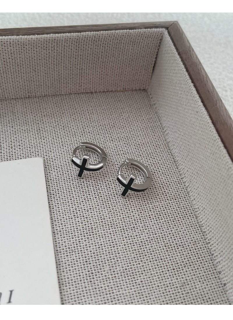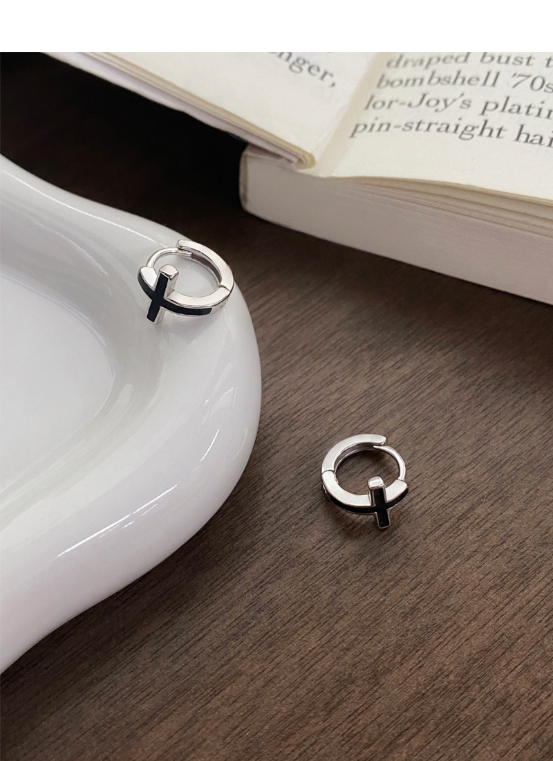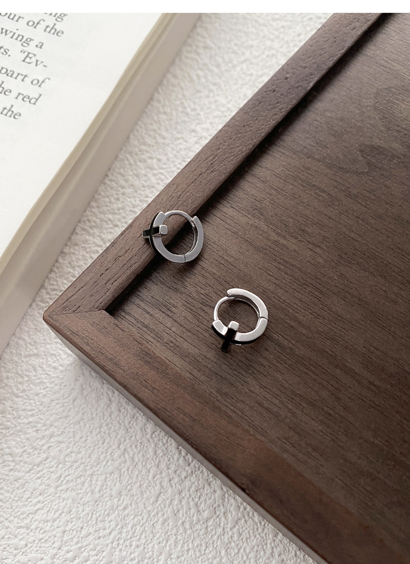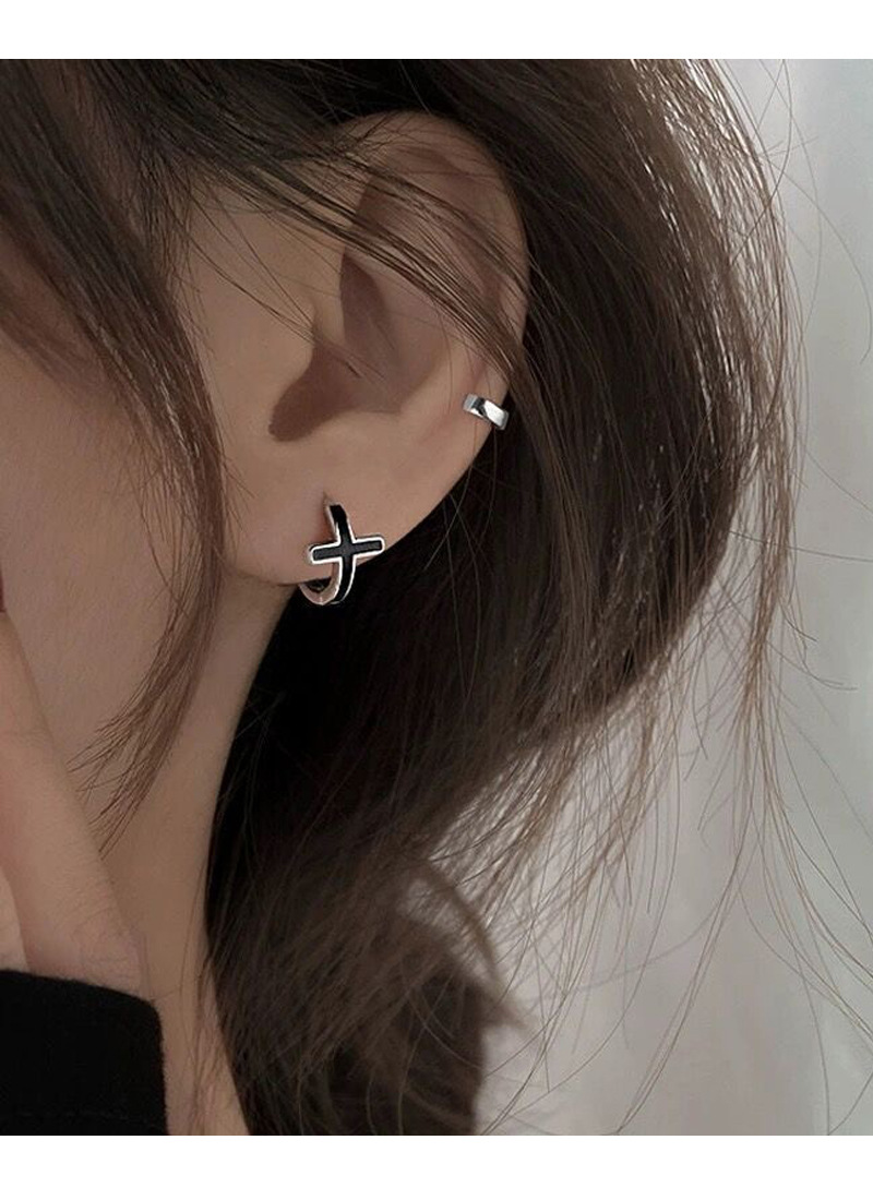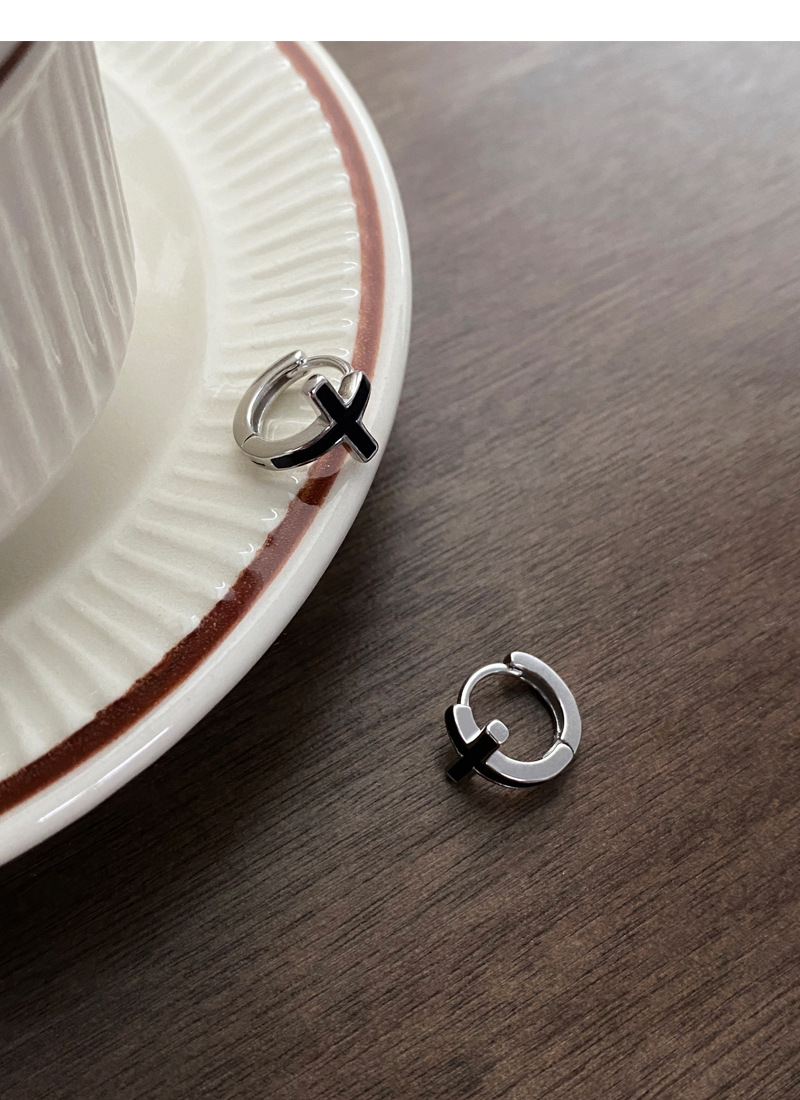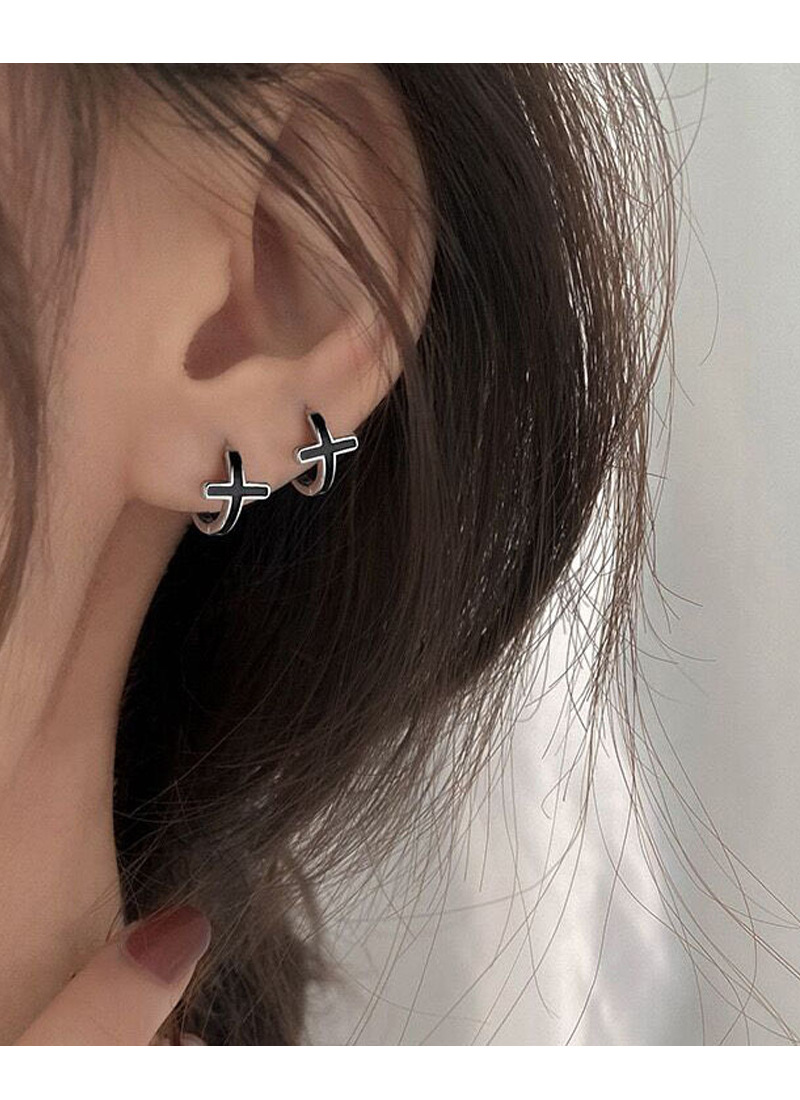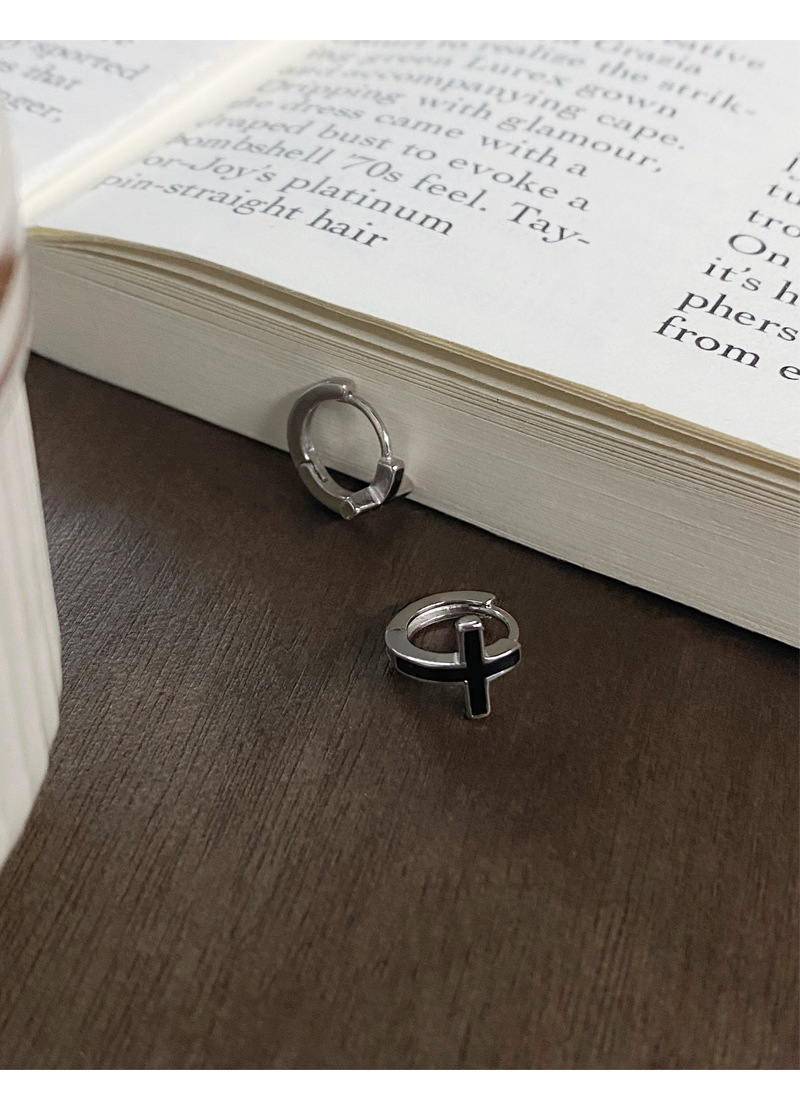 SATN122E100126 S925純銀黑色滴膠十字架耳環女精致個性冷淡風耳扣甜酷時尚潮耳圈