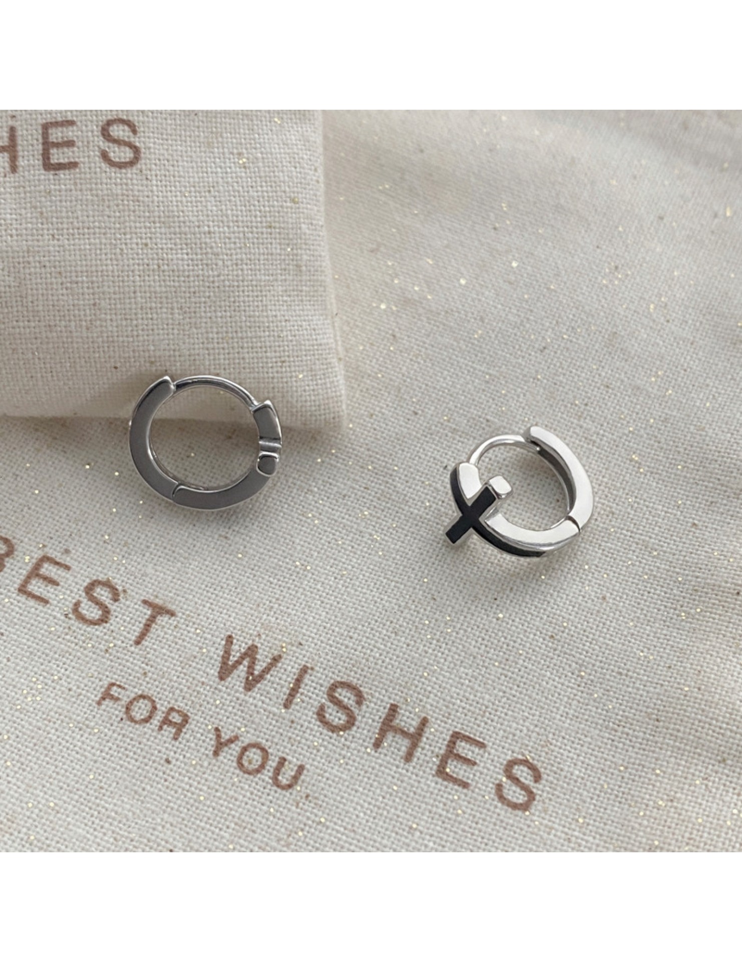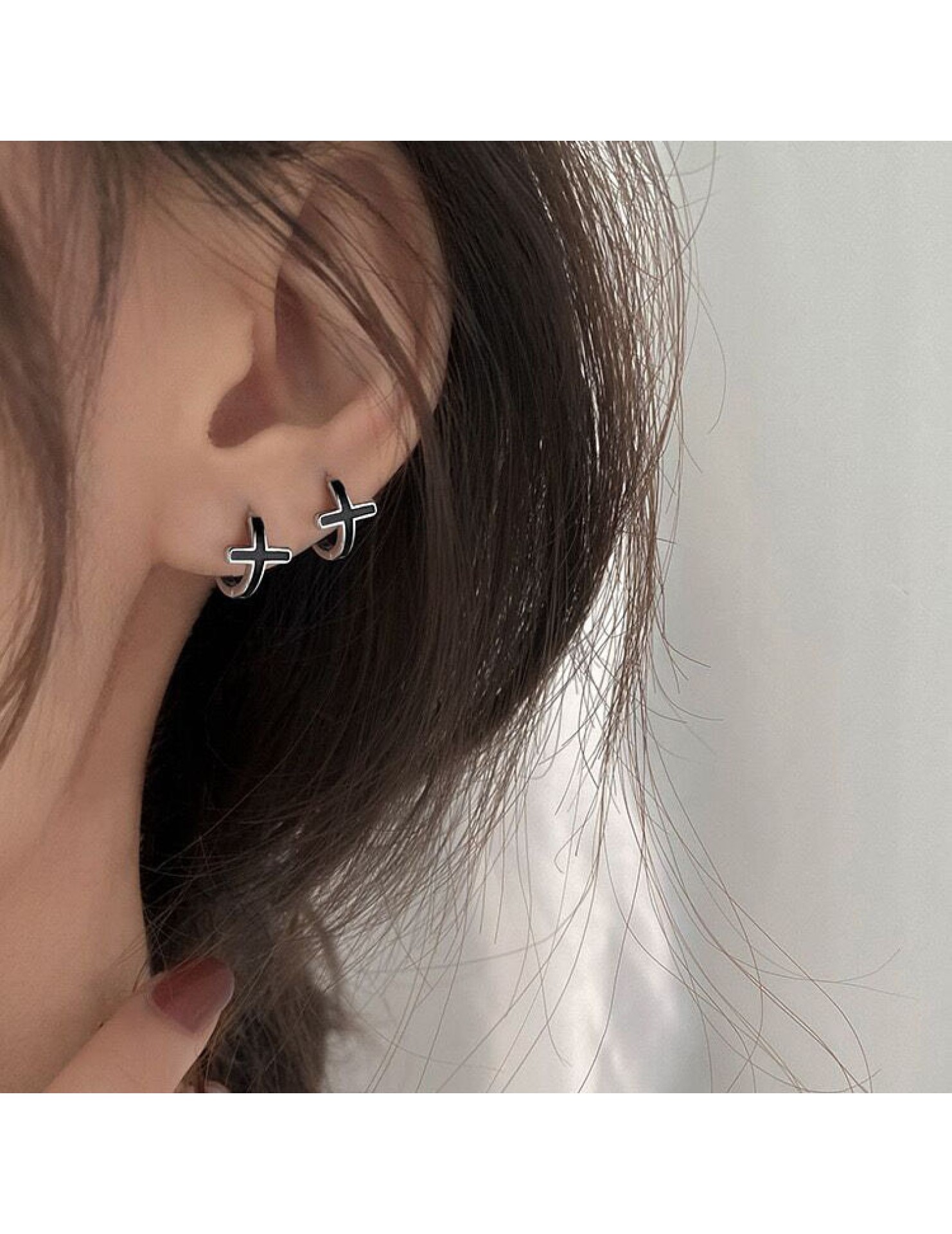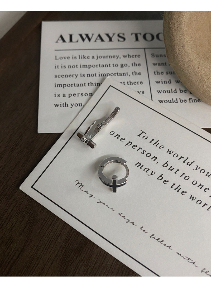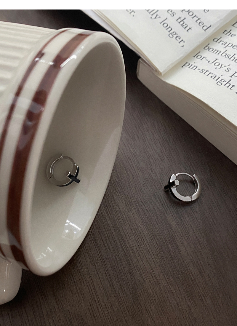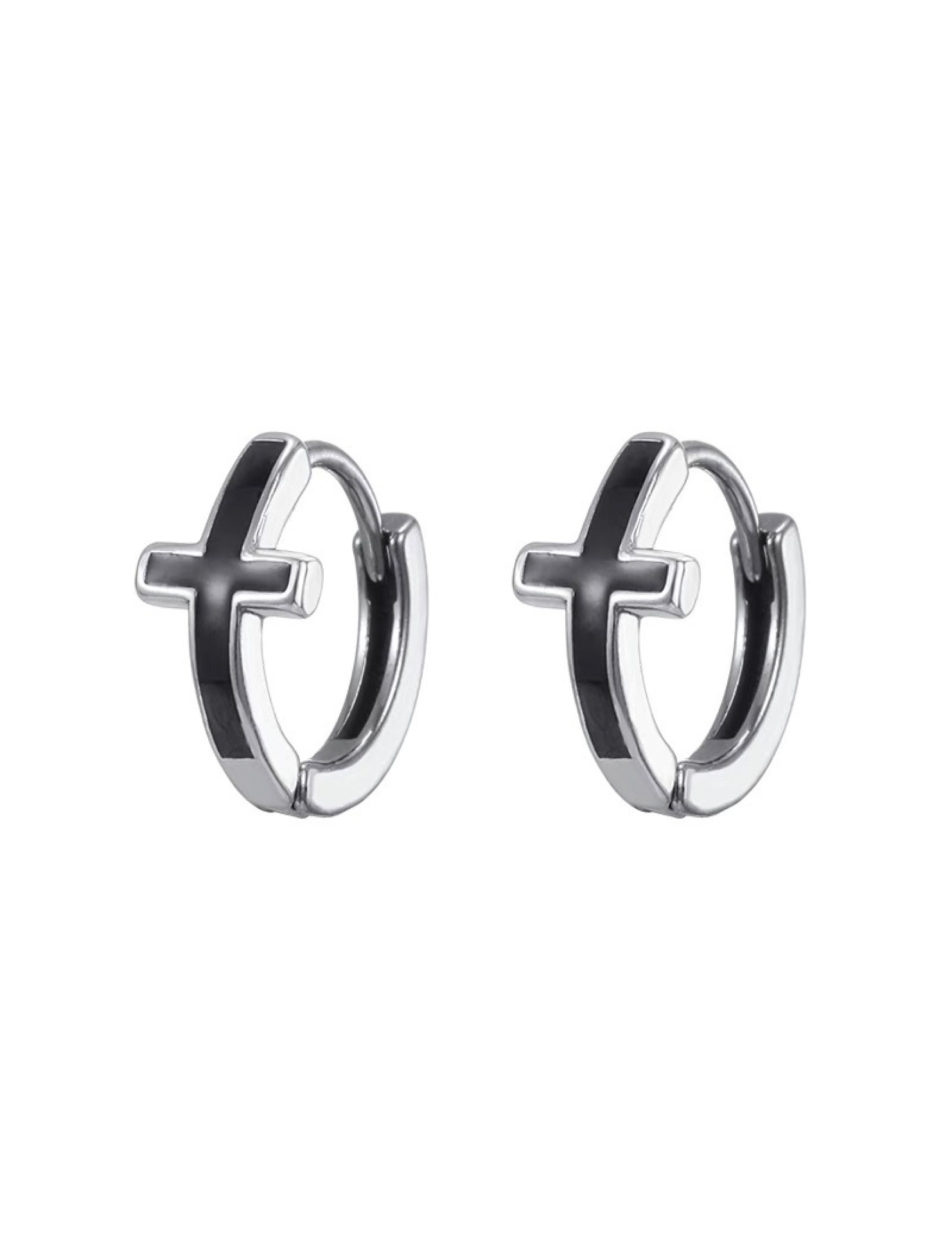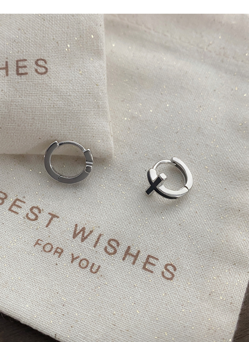 SATN122E100126 S925純銀黑色滴膠十字架耳環女精致個性冷淡風耳扣甜酷時尚潮耳圈