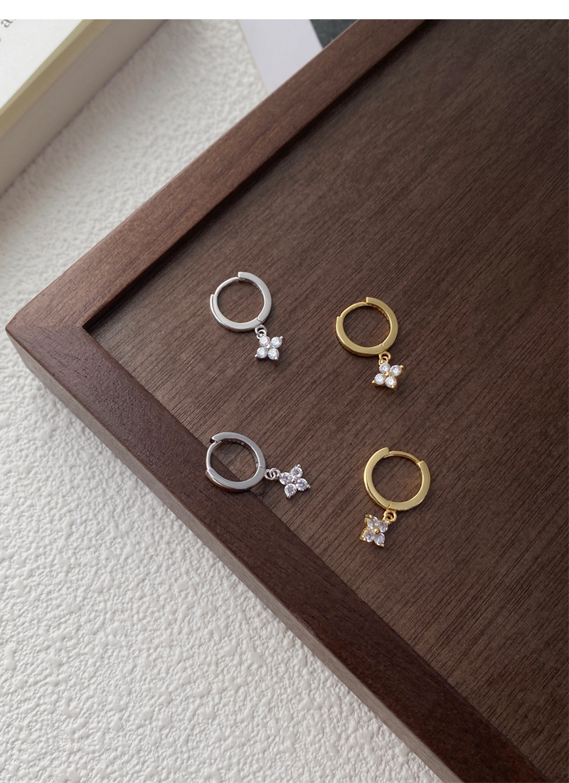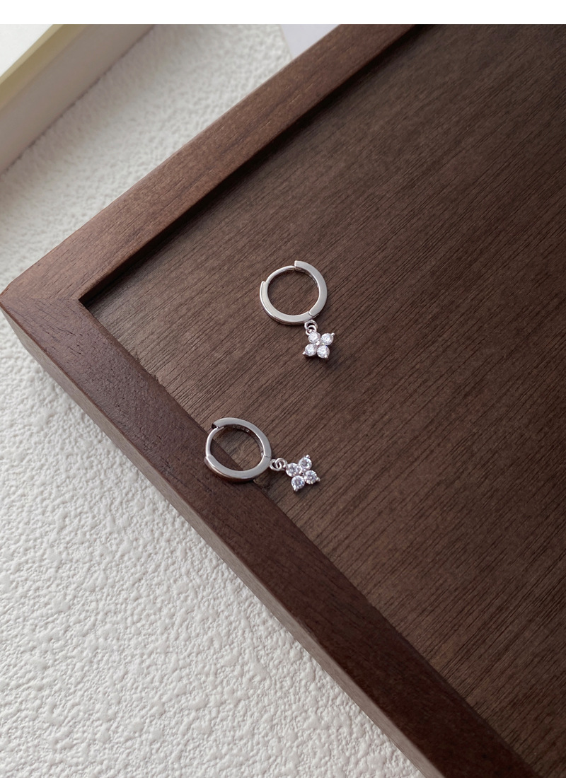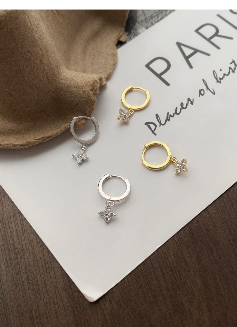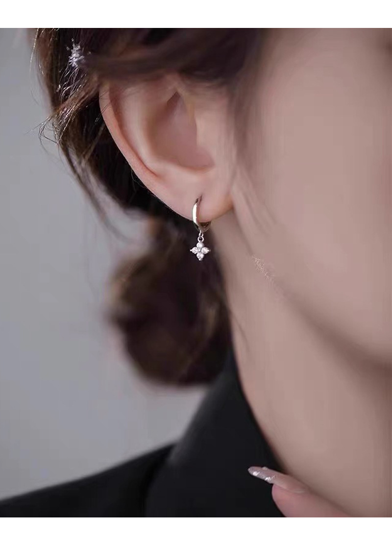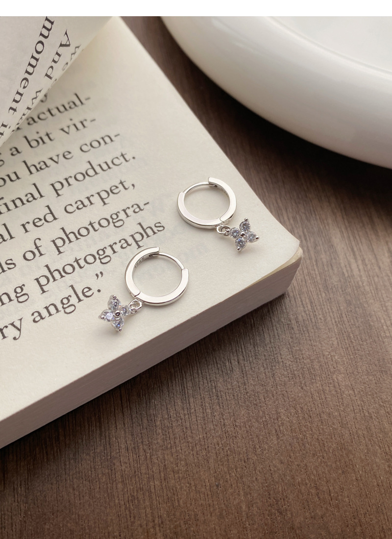 SATN122E100130 S925純銀甜美花卉耳環女簡約韓版小巧鑲鉆四葉花耳扣高級感耳飾品