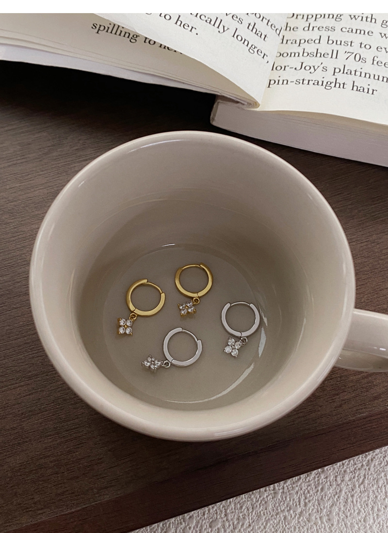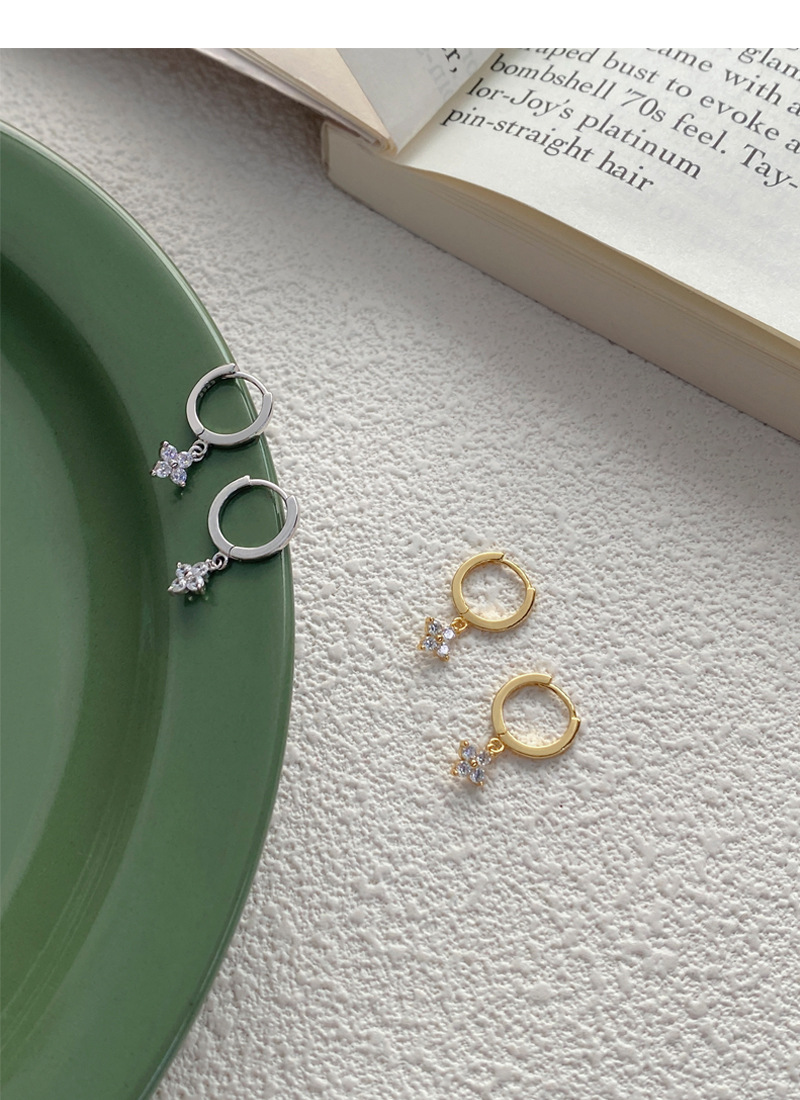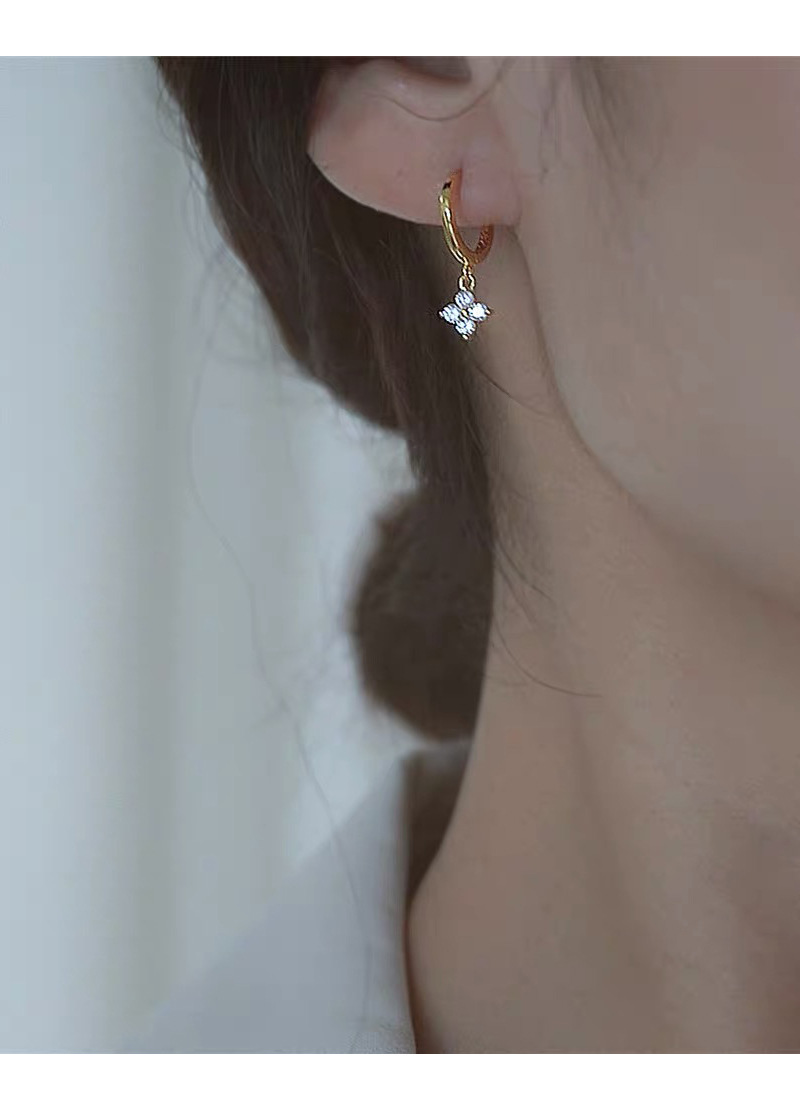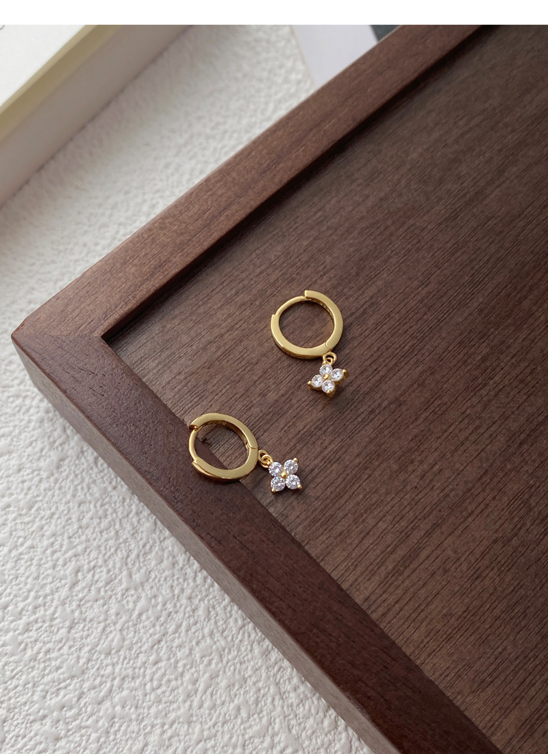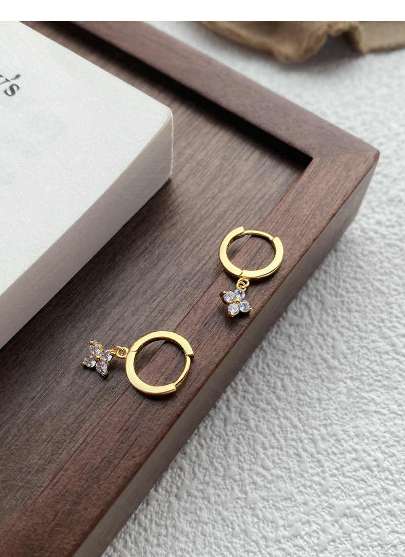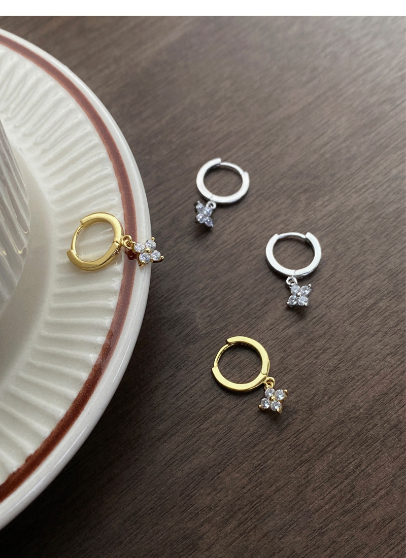 SATN122E100130 S925純銀甜美花卉耳環女簡約韓版小巧鑲鉆四葉花耳扣高級感耳飾品
