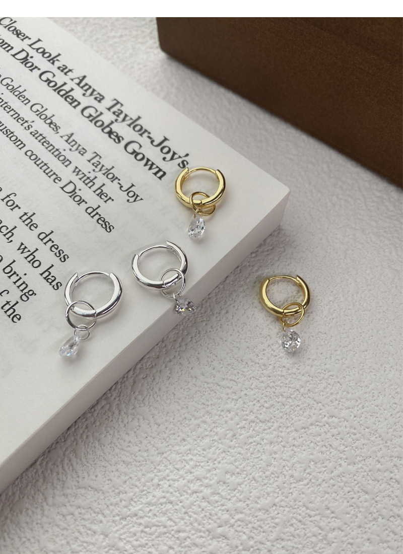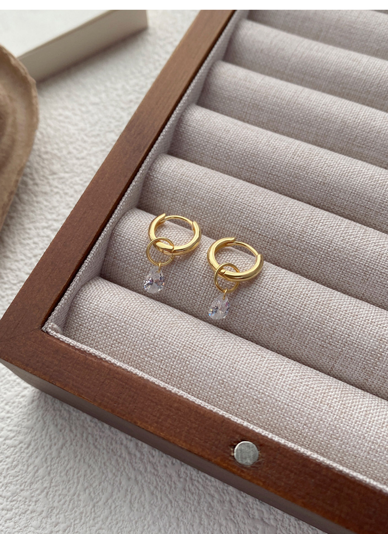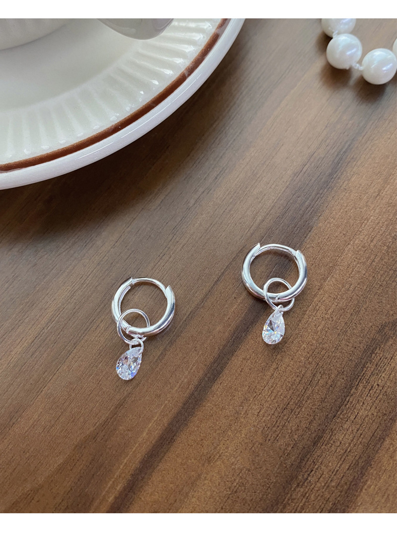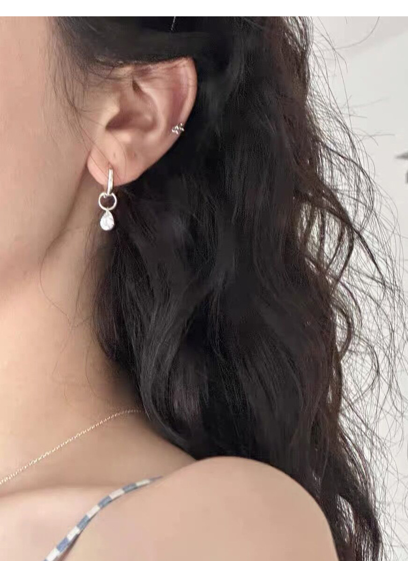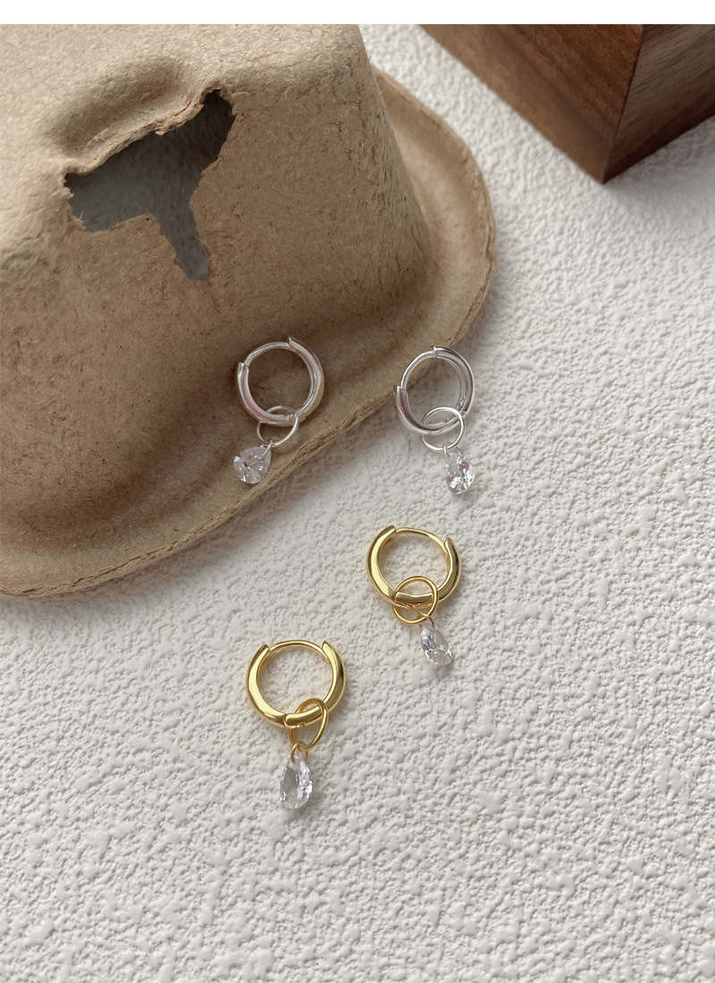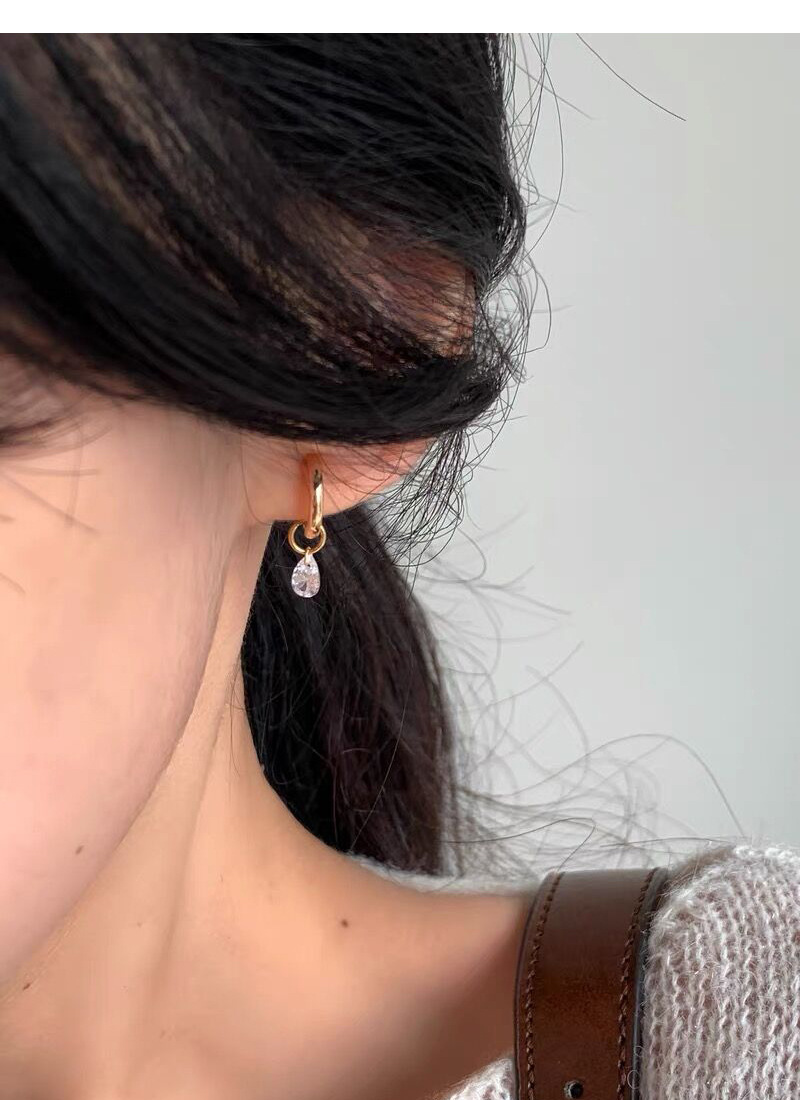 S925純銀簡約水滴鋯石圓圈耳環女冷淡風氣質時尚耳扣一款兩戴耳飾