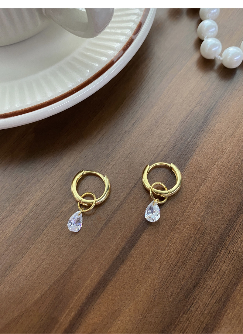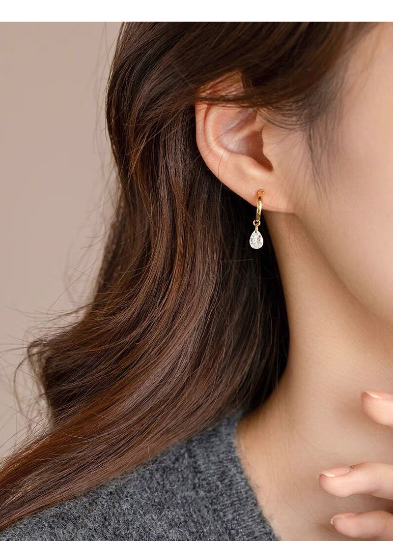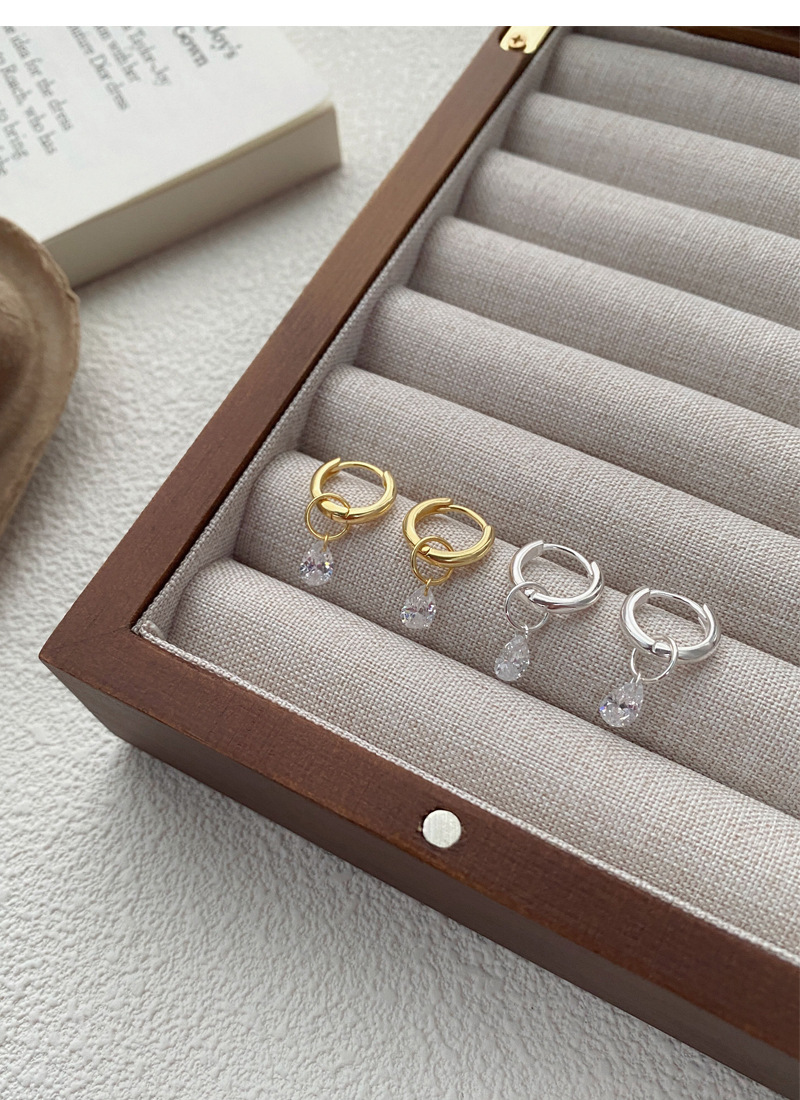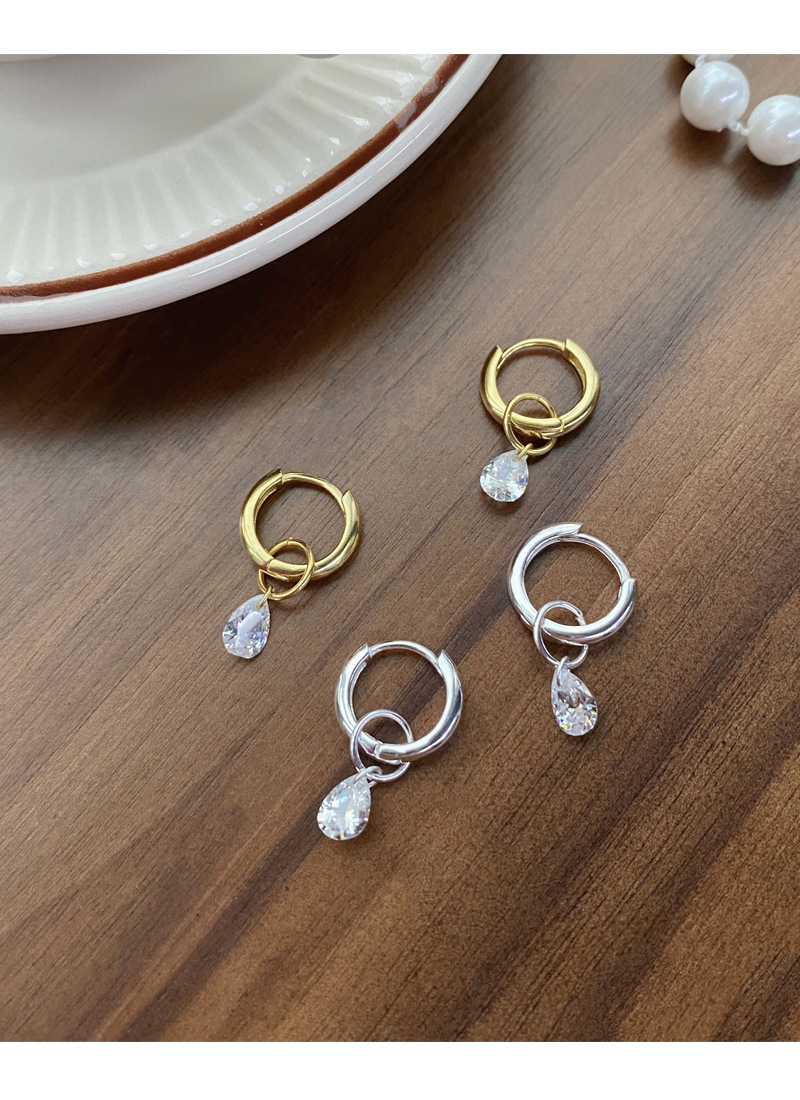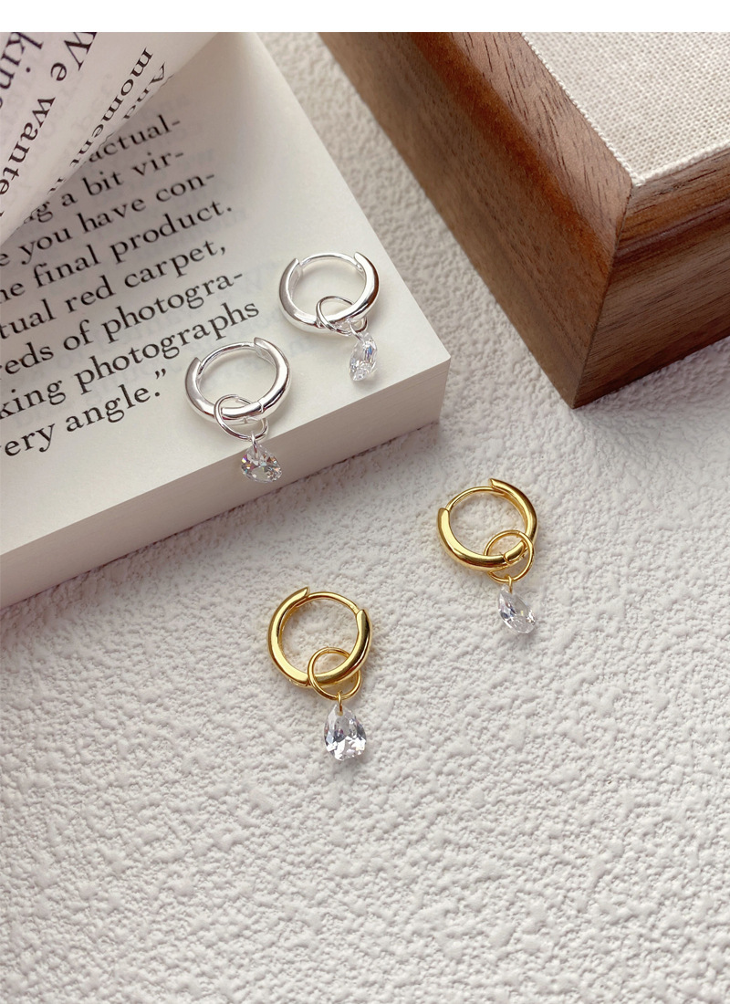 S925純銀簡約水滴鋯石圓圈耳環女冷淡風氣質時尚耳扣一款兩戴耳飾