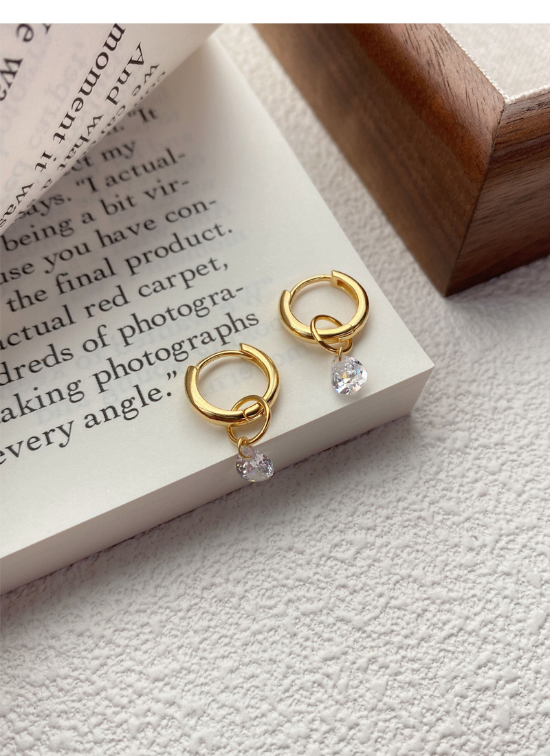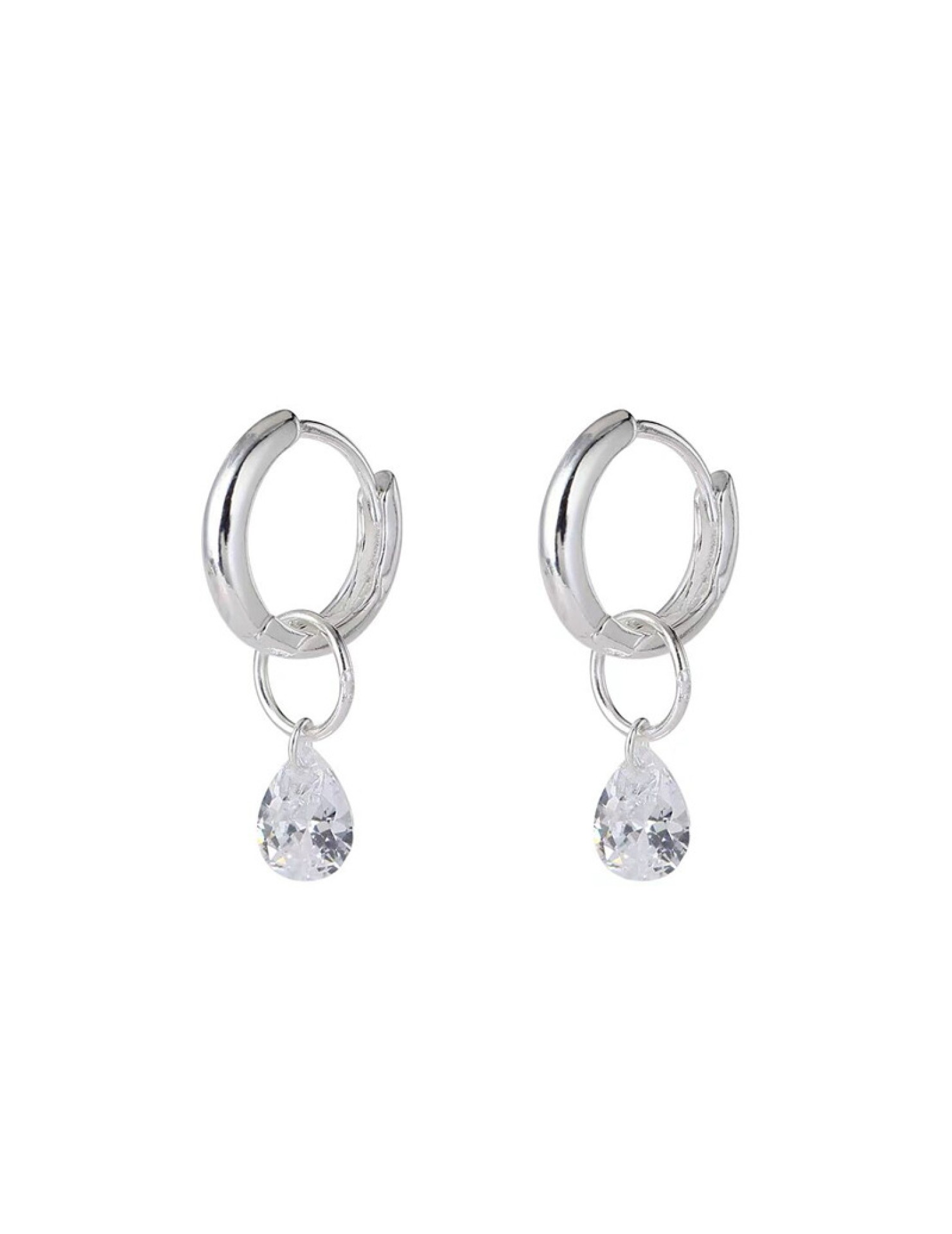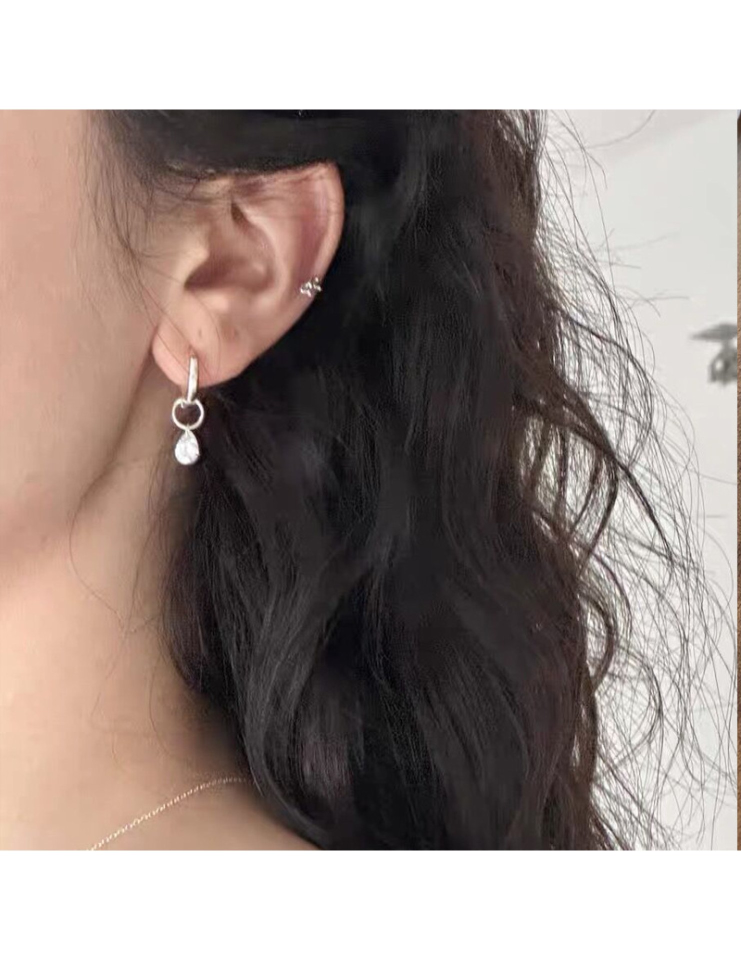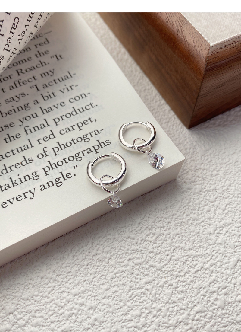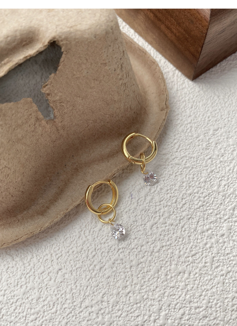 S925純銀簡約水滴鋯石圓圈耳環女冷淡風氣質時尚耳扣一款兩戴耳飾