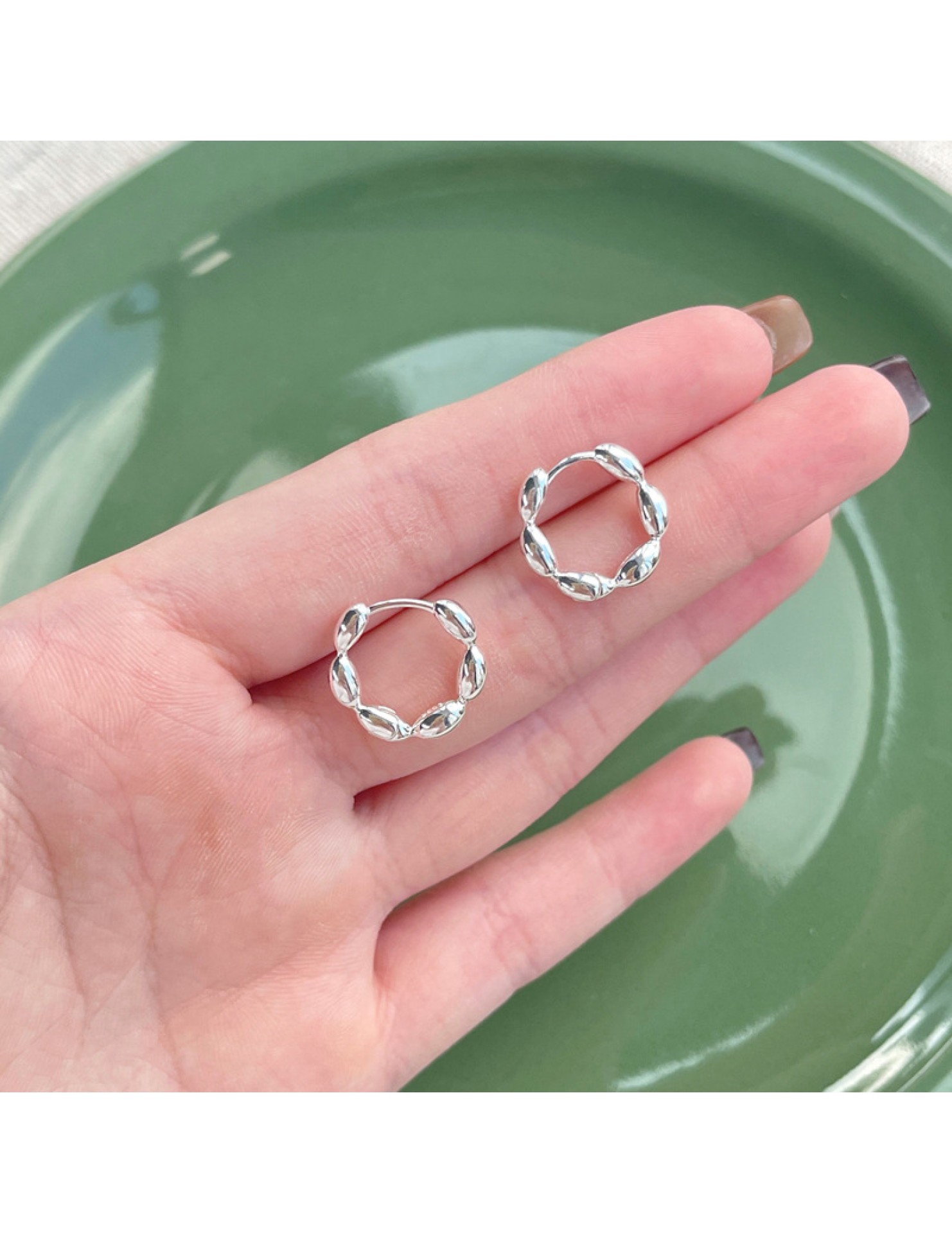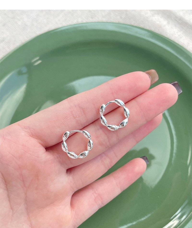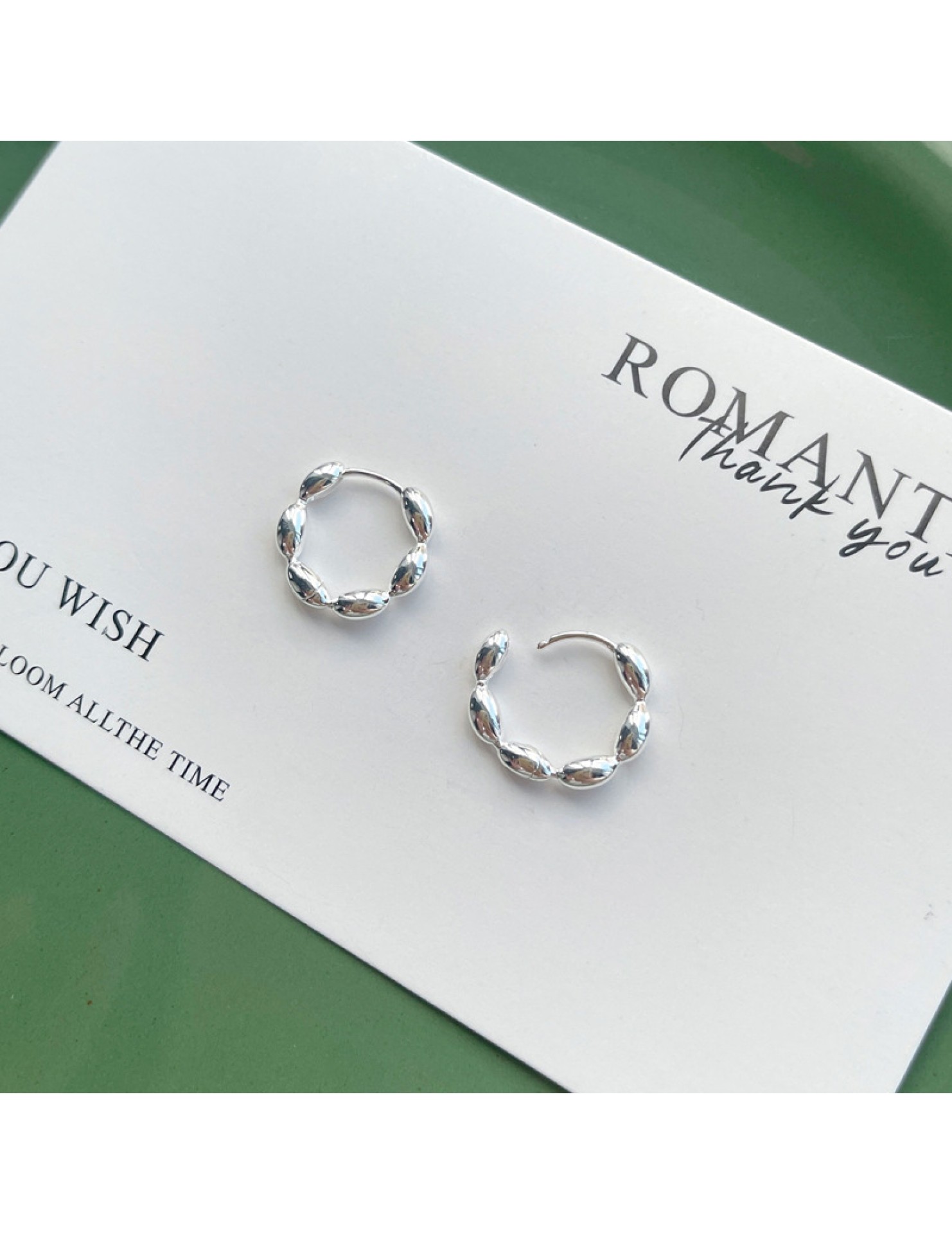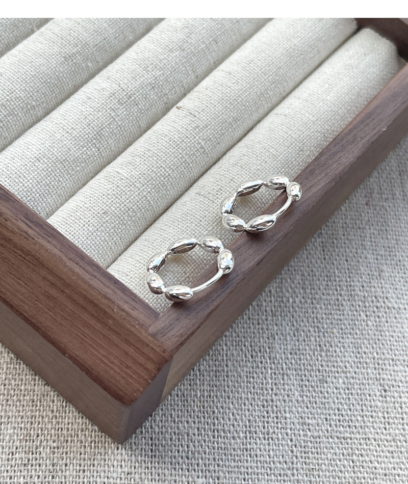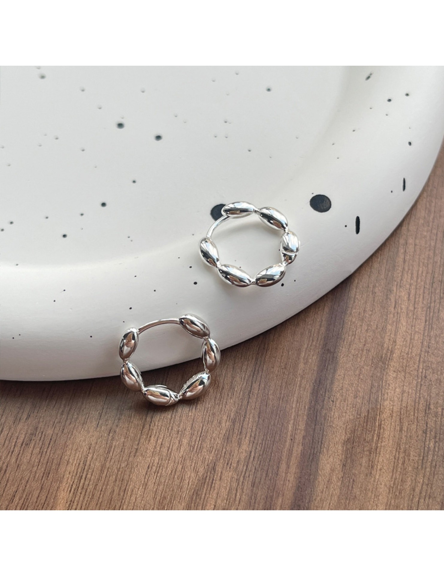 SATN122E100254 S925純銀輕奢小巧米粒橄欖珠耳扣女小眾設計高級感耳釘耳環耳飾