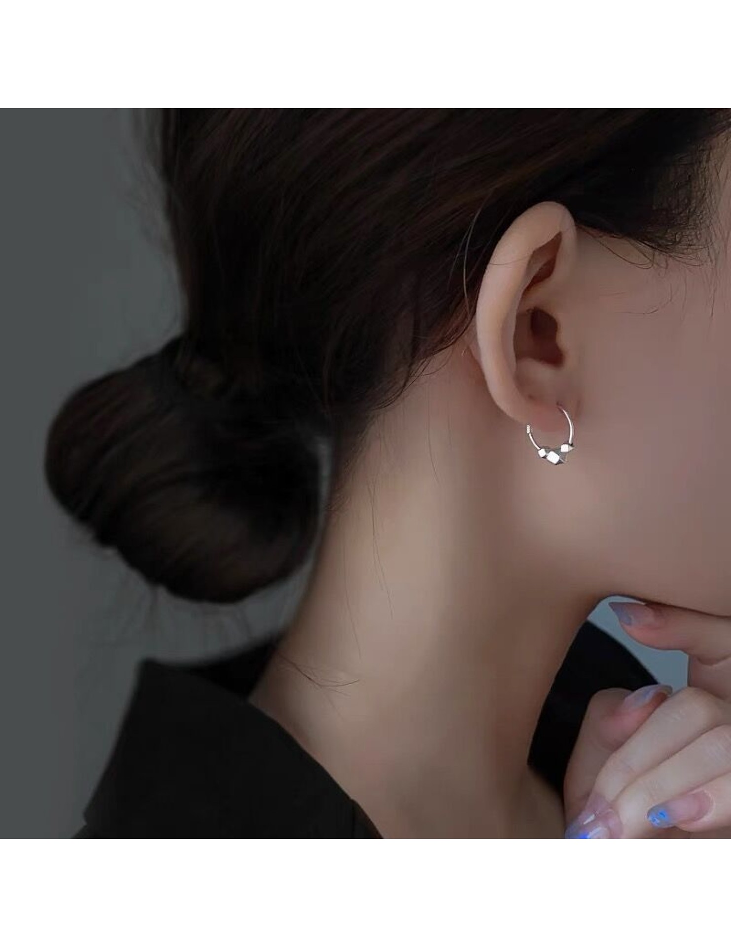 SATN122E100329 S925純銀碎銀子耳環女小眾高級感碎銀幾兩耳圈氣質輕奢新潮耳飾品