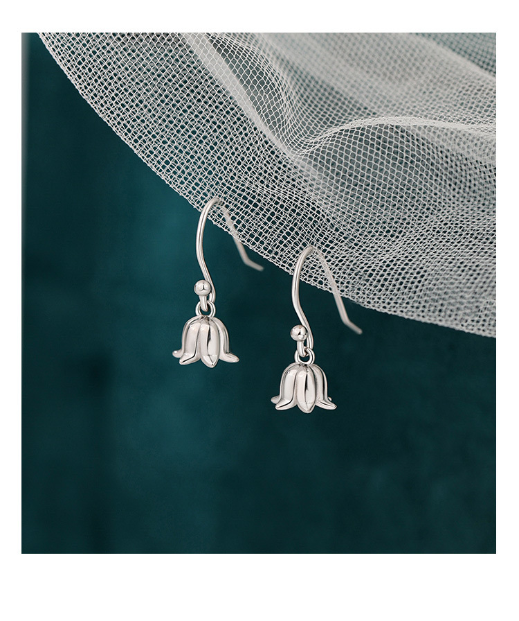 SATN122E100299 S925純銀鈴蘭花耳鉤女小眾設計高級感氣質耳環簡約輕奢耳釘耳飾