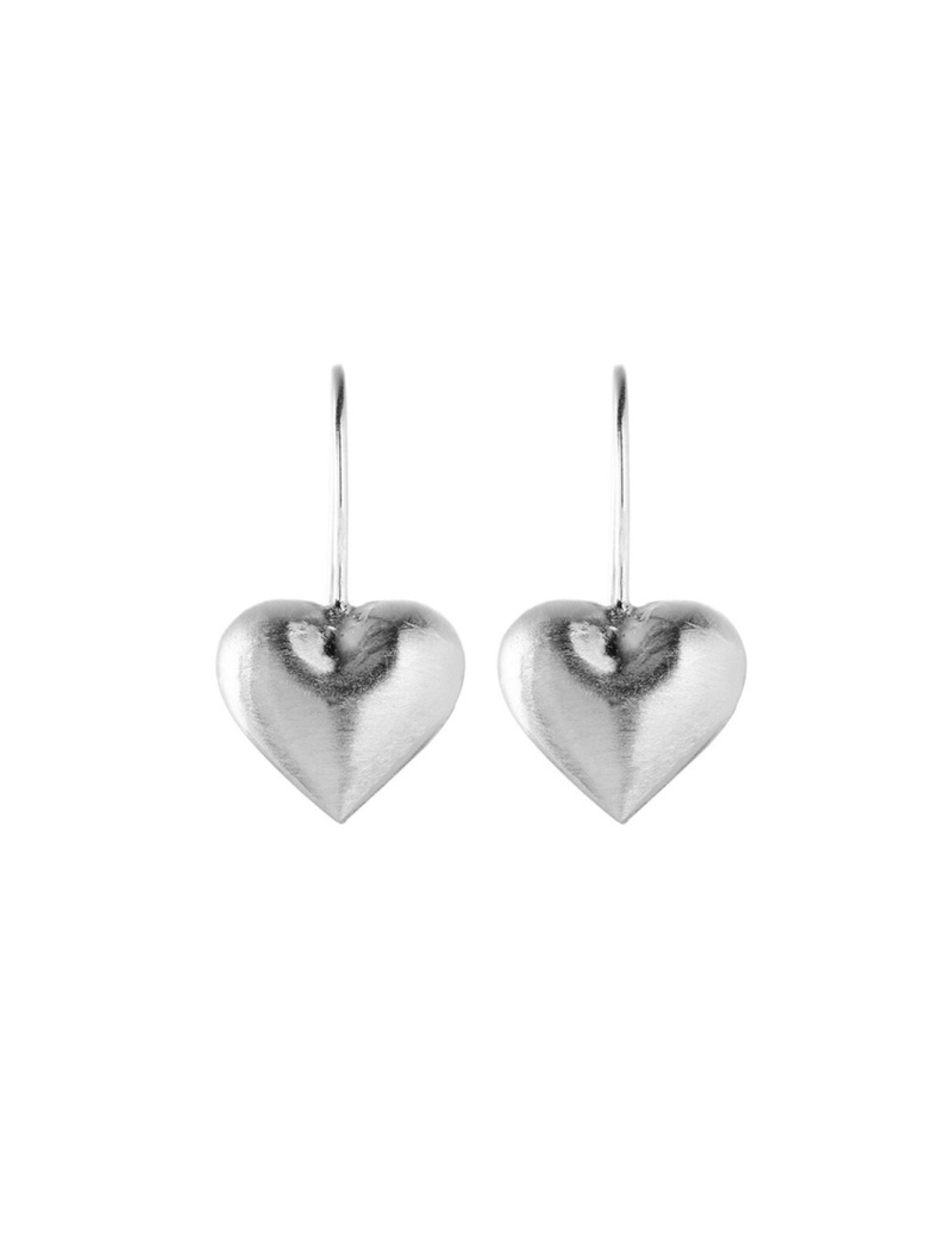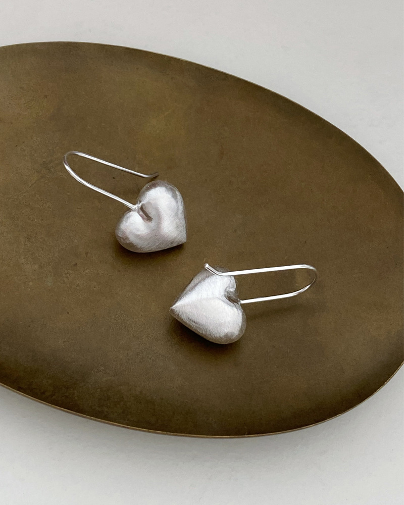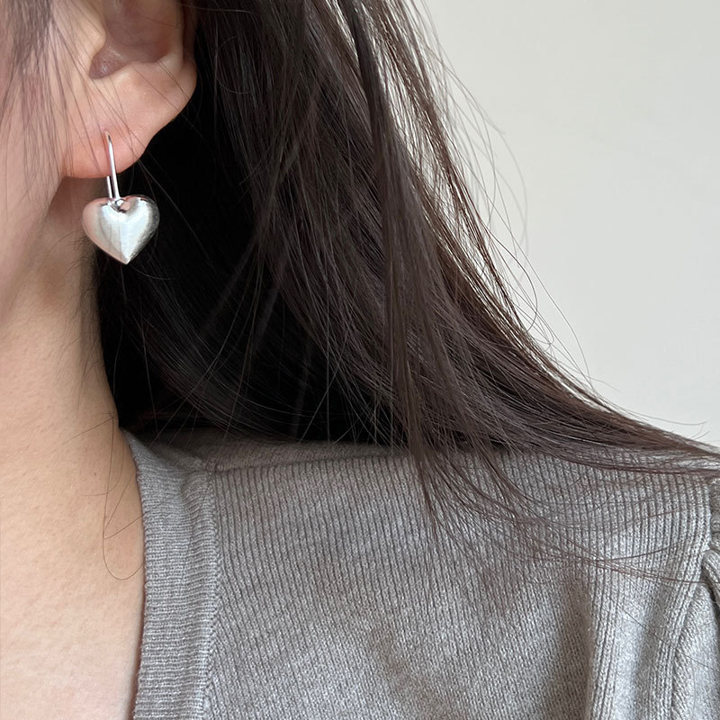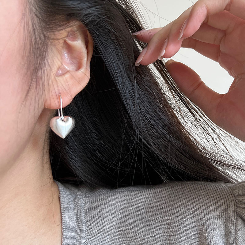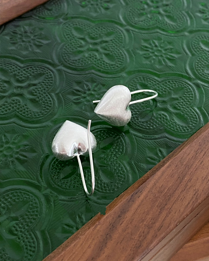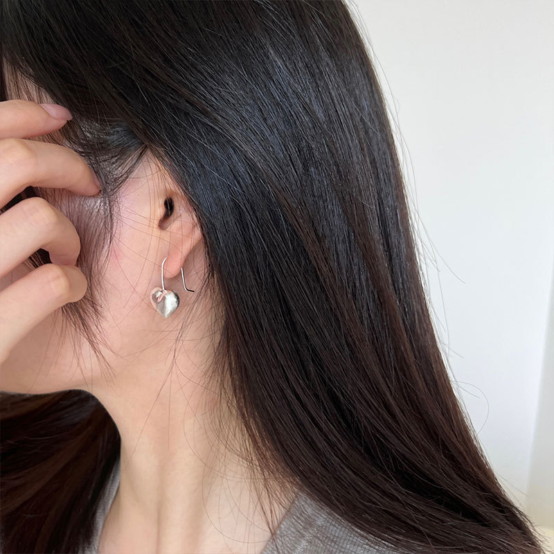 SATN122E100334 S925純銀新款立體大愛心拉絲耳環女磨砂桃心形耳鉤甜美簡約耳飾品
