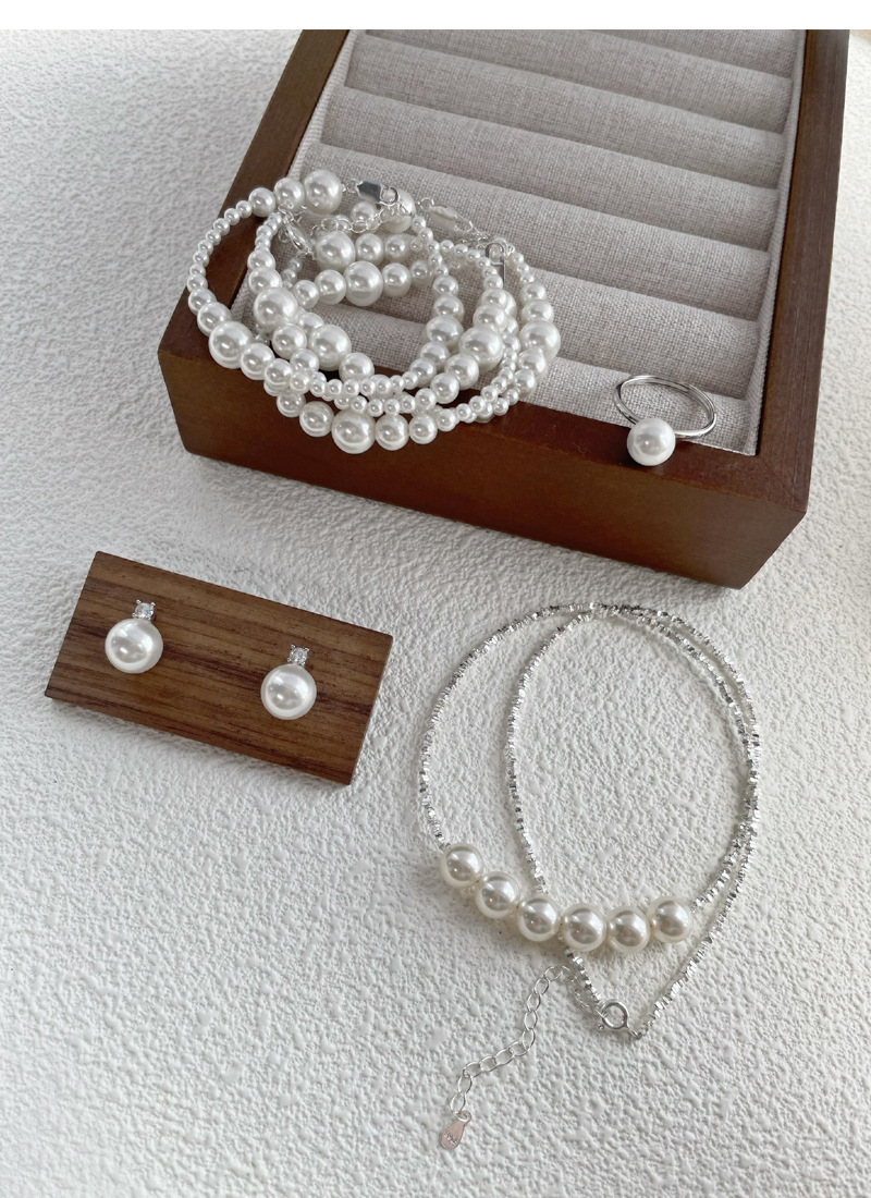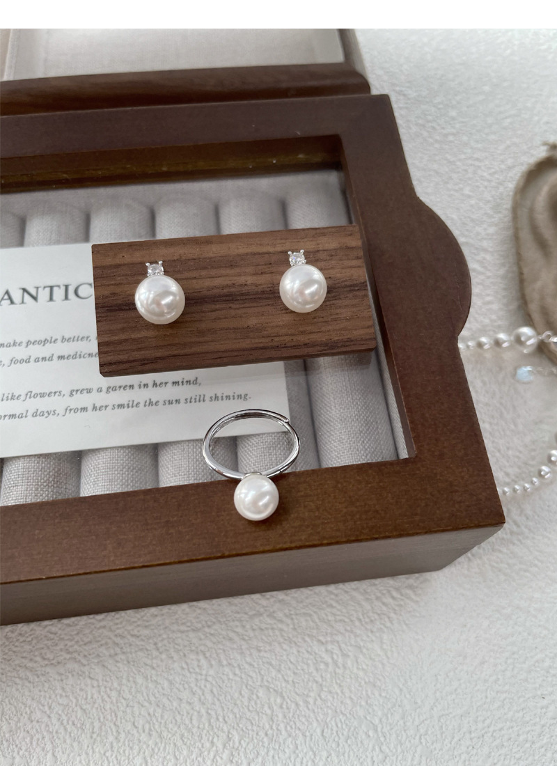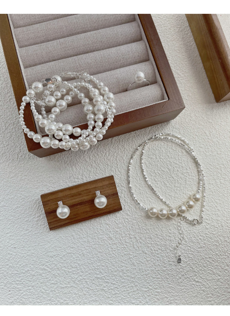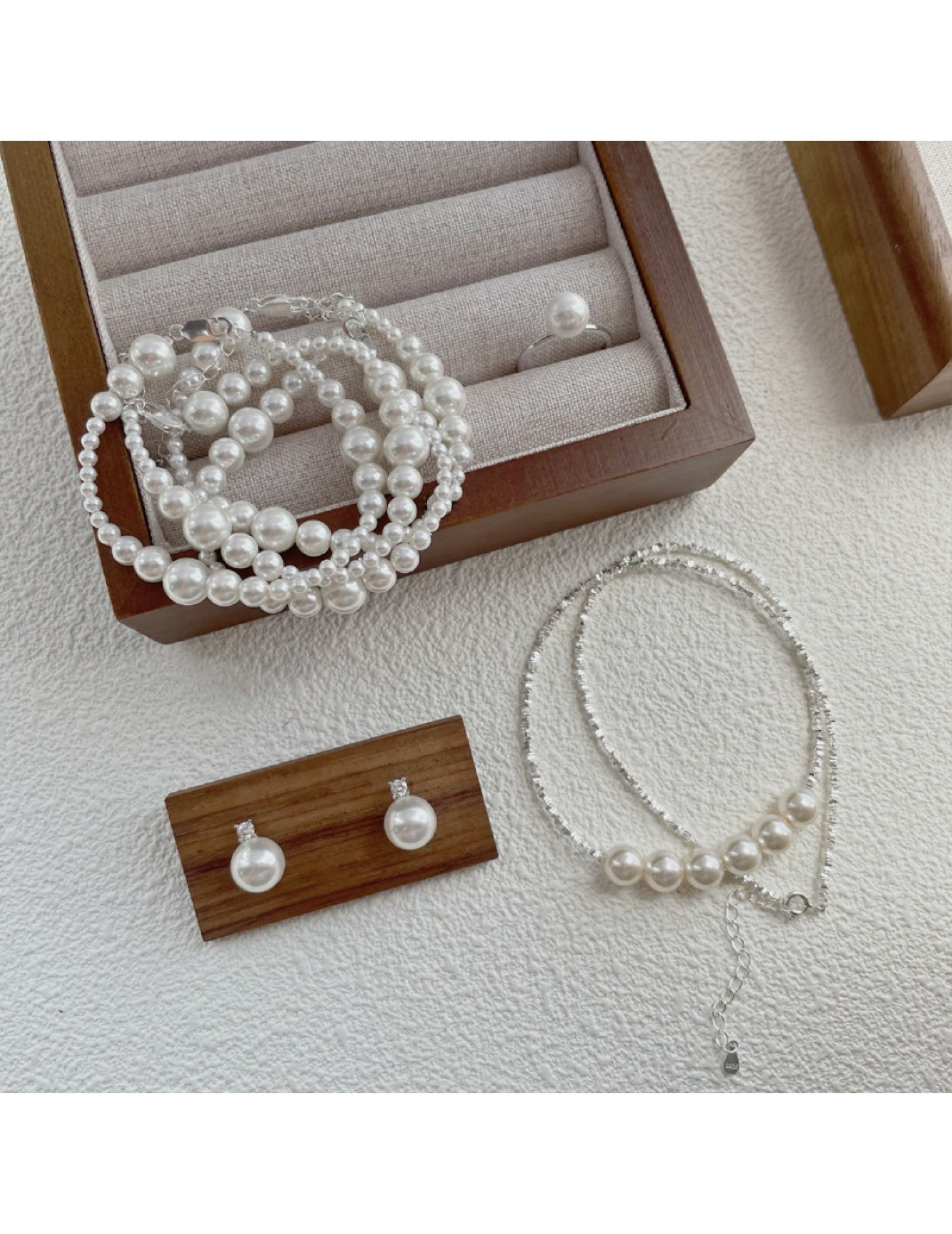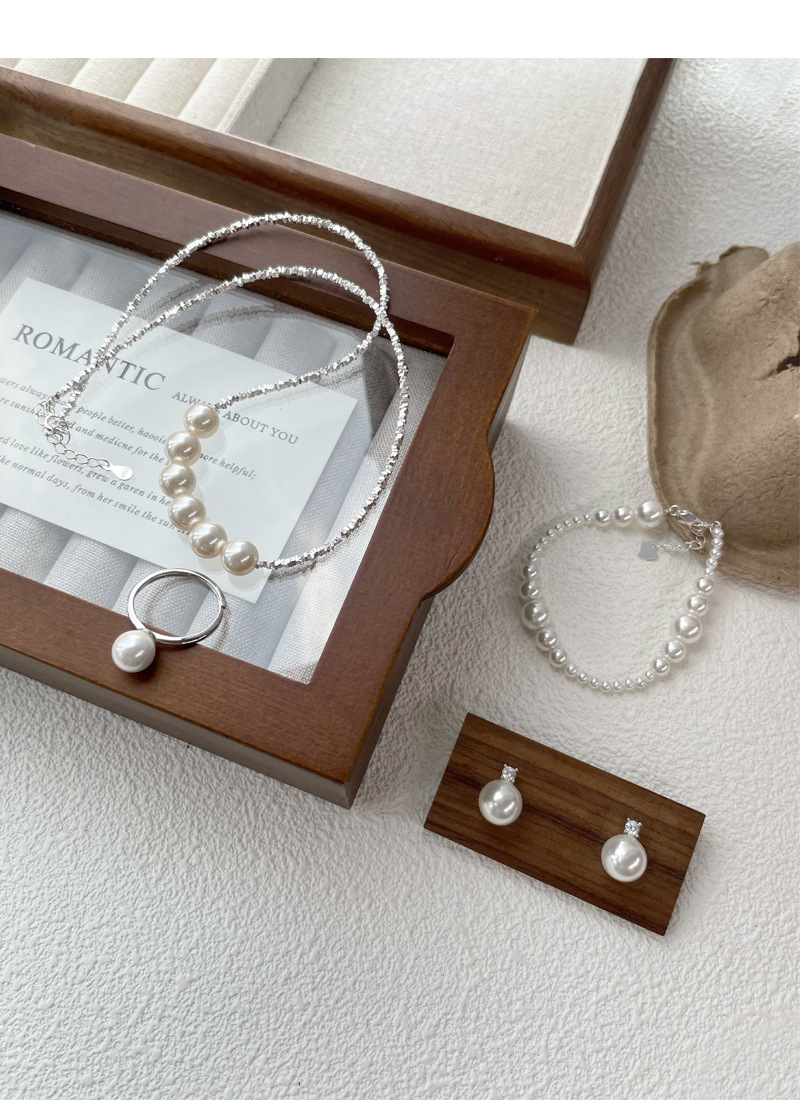 925純銀氣質輕奢珍珠飾品小眾設計時髦戒指耳釘項鏈手鏈組合套裝