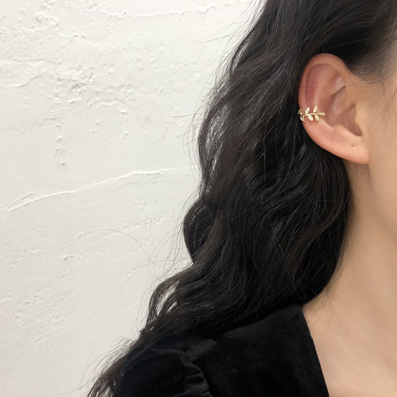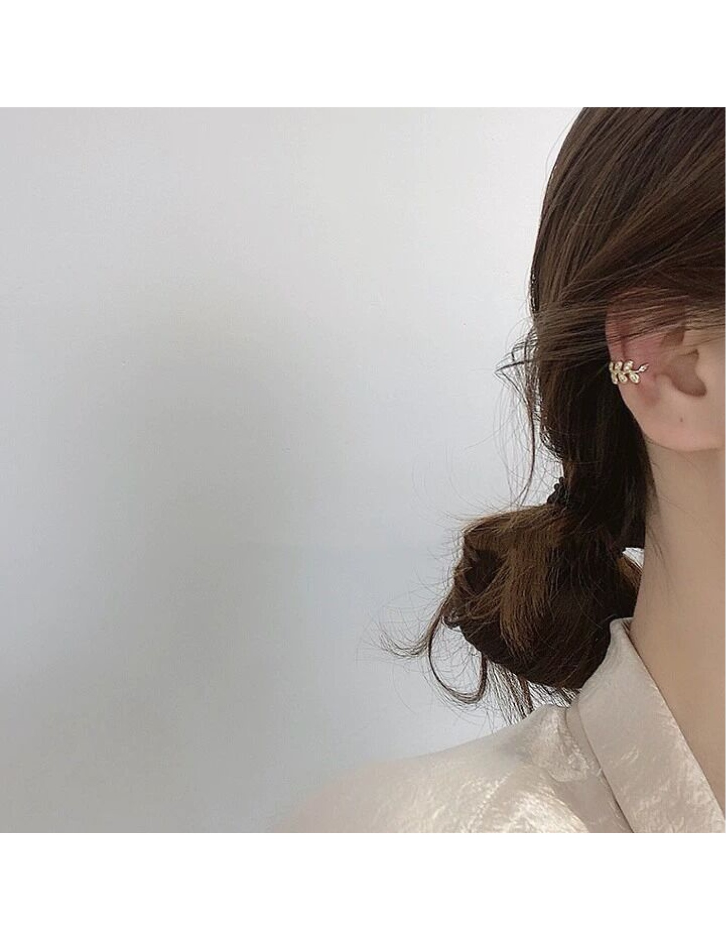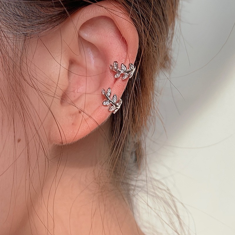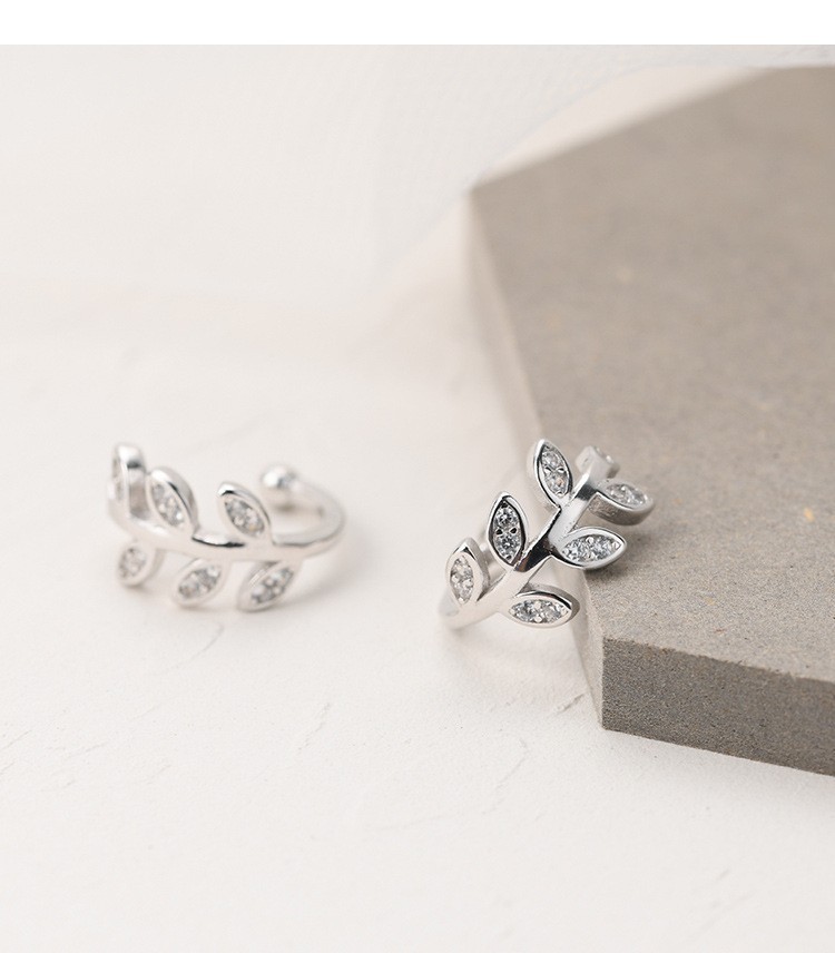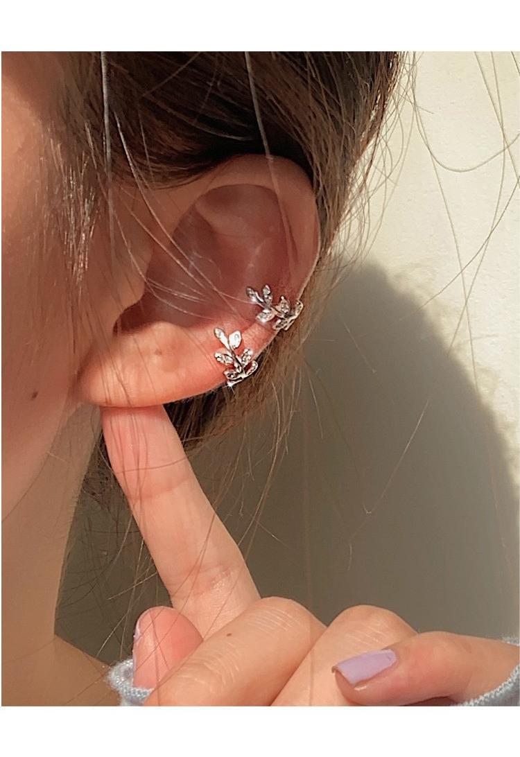 SATN122E100303 S925純銀小清新森系樹葉無耳洞耳夾小眾設計耳骨夾氣質高級感耳飾