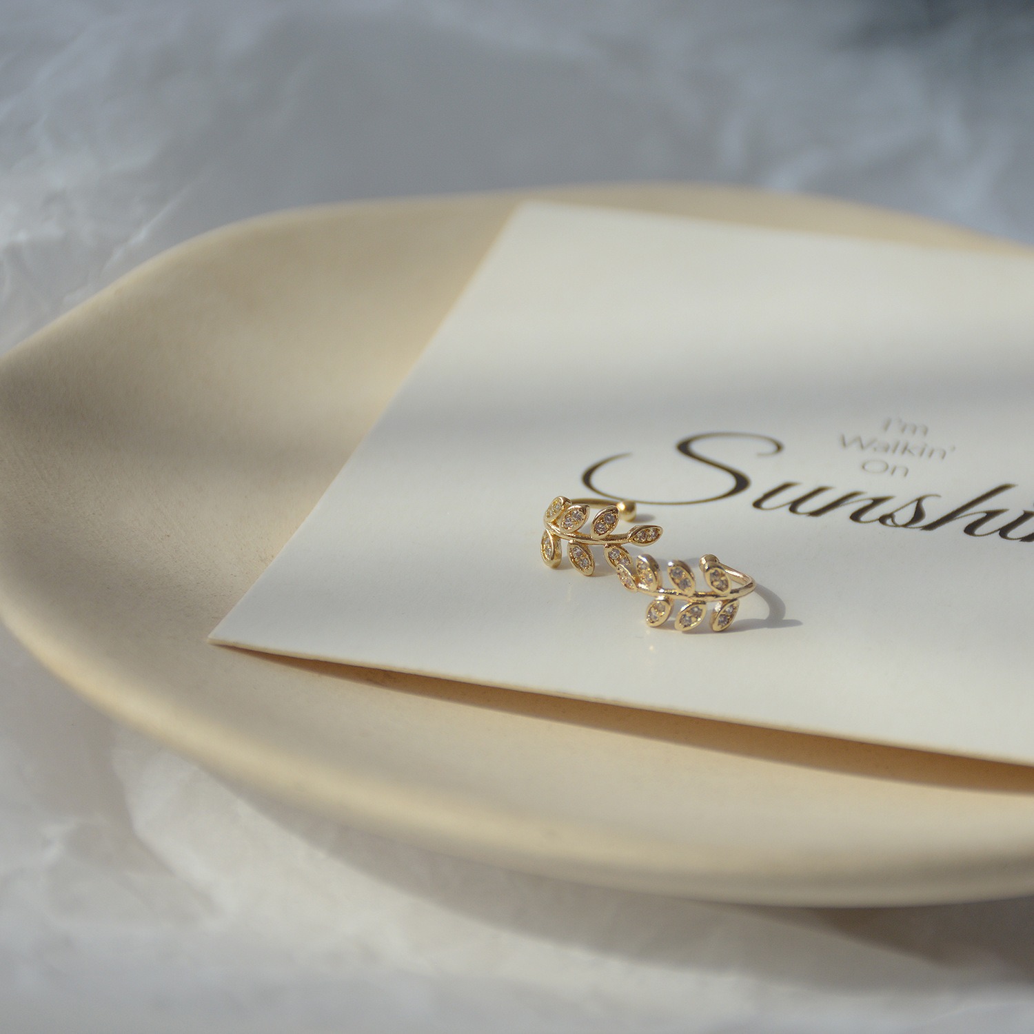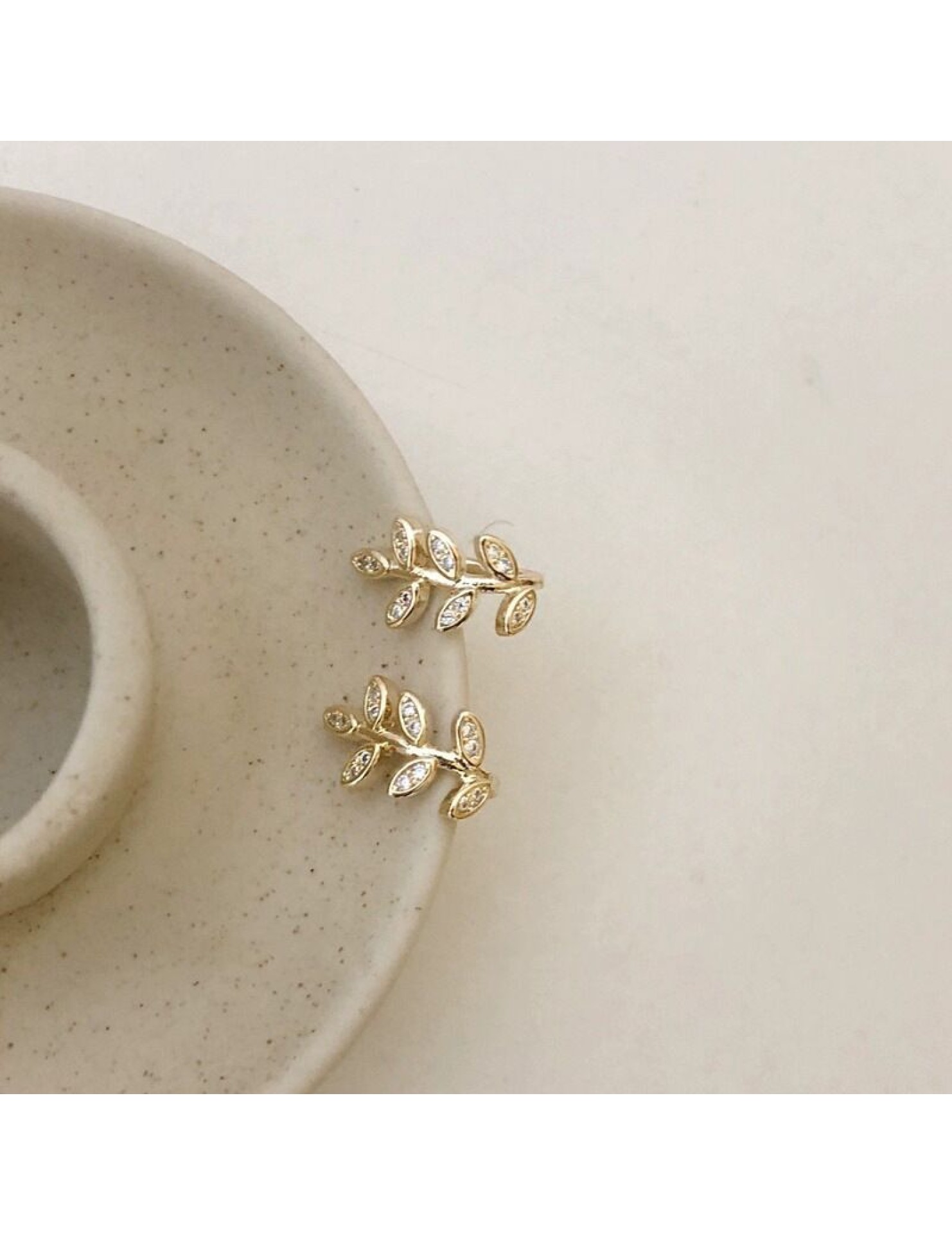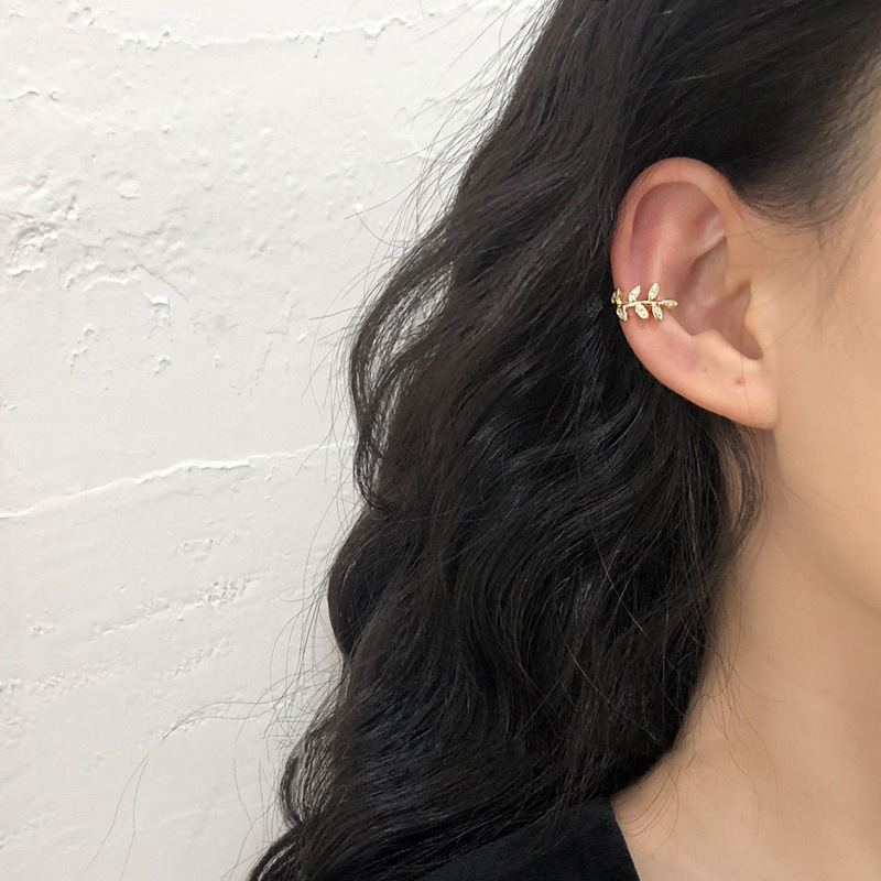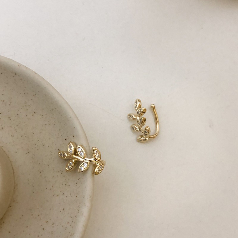 SATN122E100303 S925純銀小清新森系樹葉無耳洞耳夾小眾設計耳骨夾氣質高級感耳飾