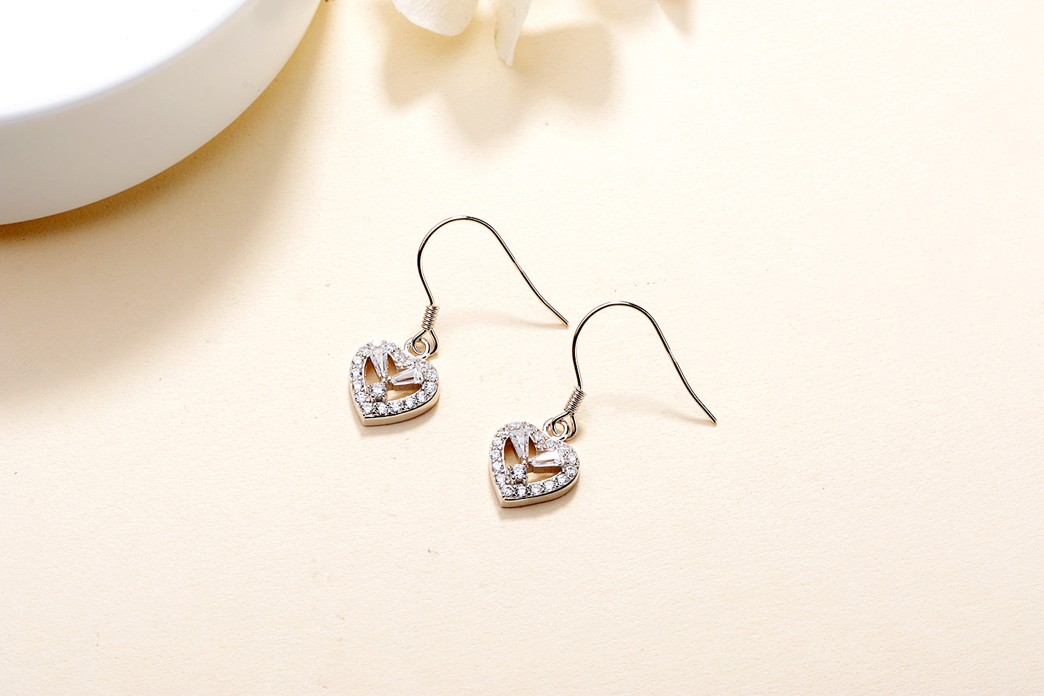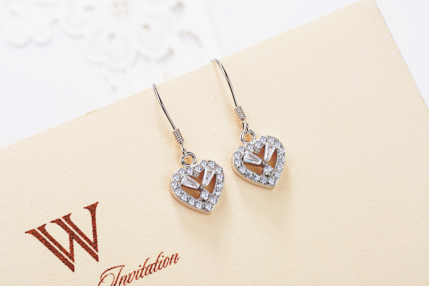 SATN122E100400 S925純銀女耳釘日韓版簡約心形耳鉤經典百搭耳飾品批