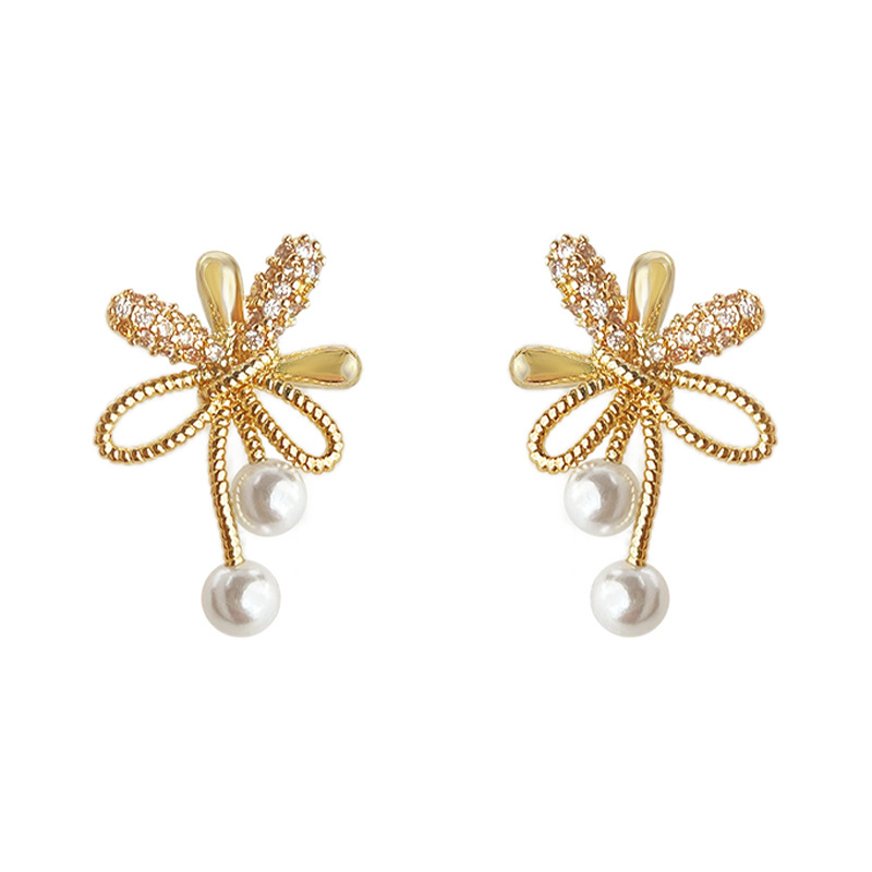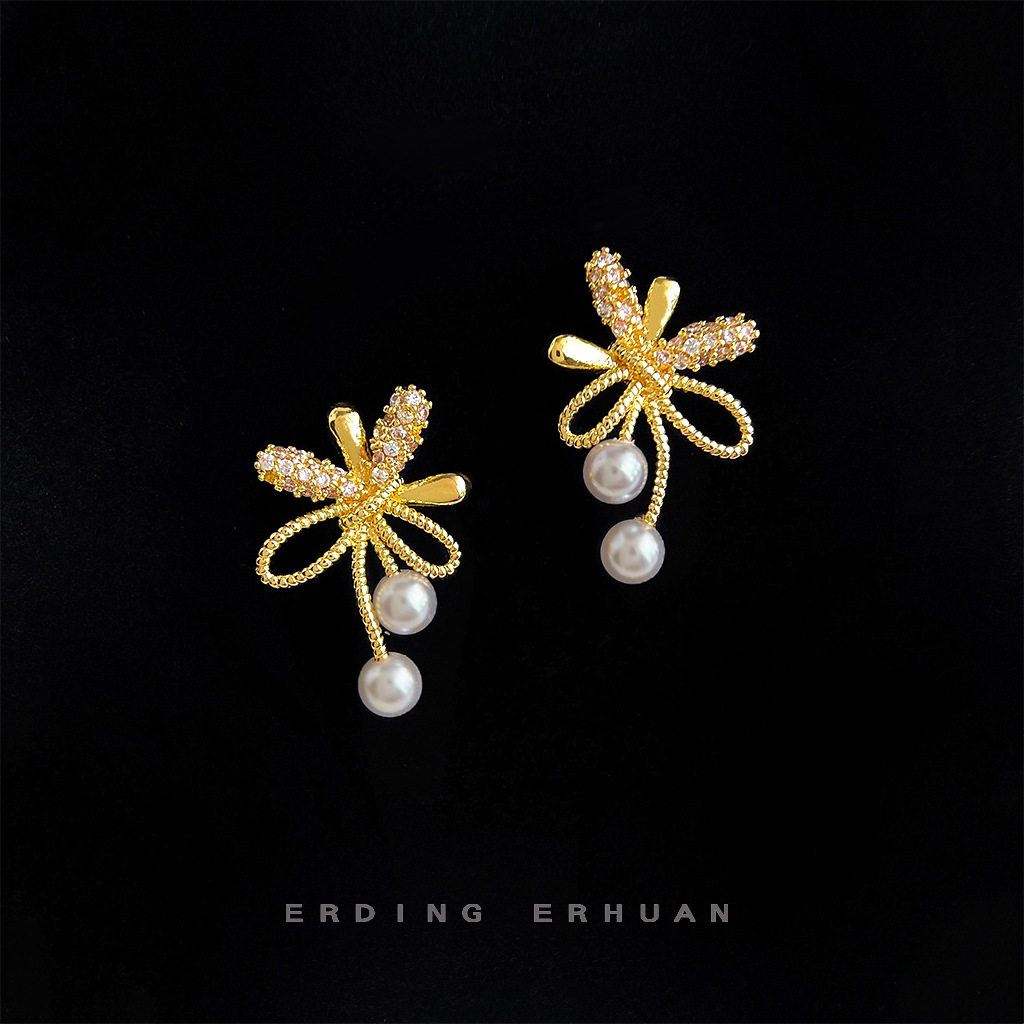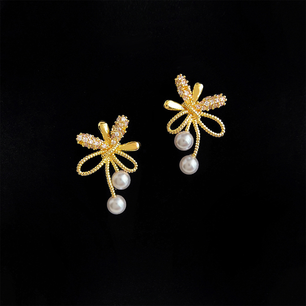 HELN124100355 微鑲鋯石925銀針鍍14K藝術煙花造型耳釘女時尚通勤高級感