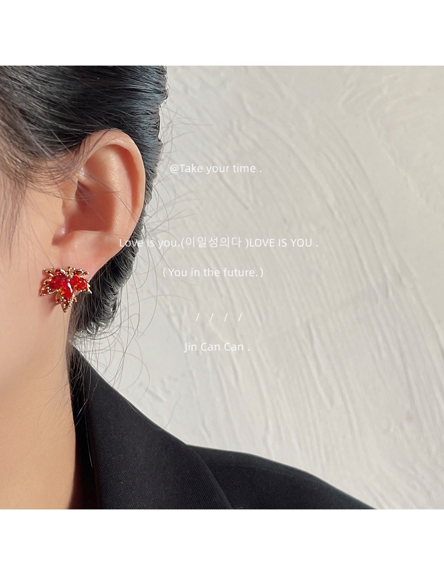 HELN124100013 【楓葉】微鑲鋯石~紅色楓葉耳釘女925銀針鍍14K小眾個性耳飾 耳環