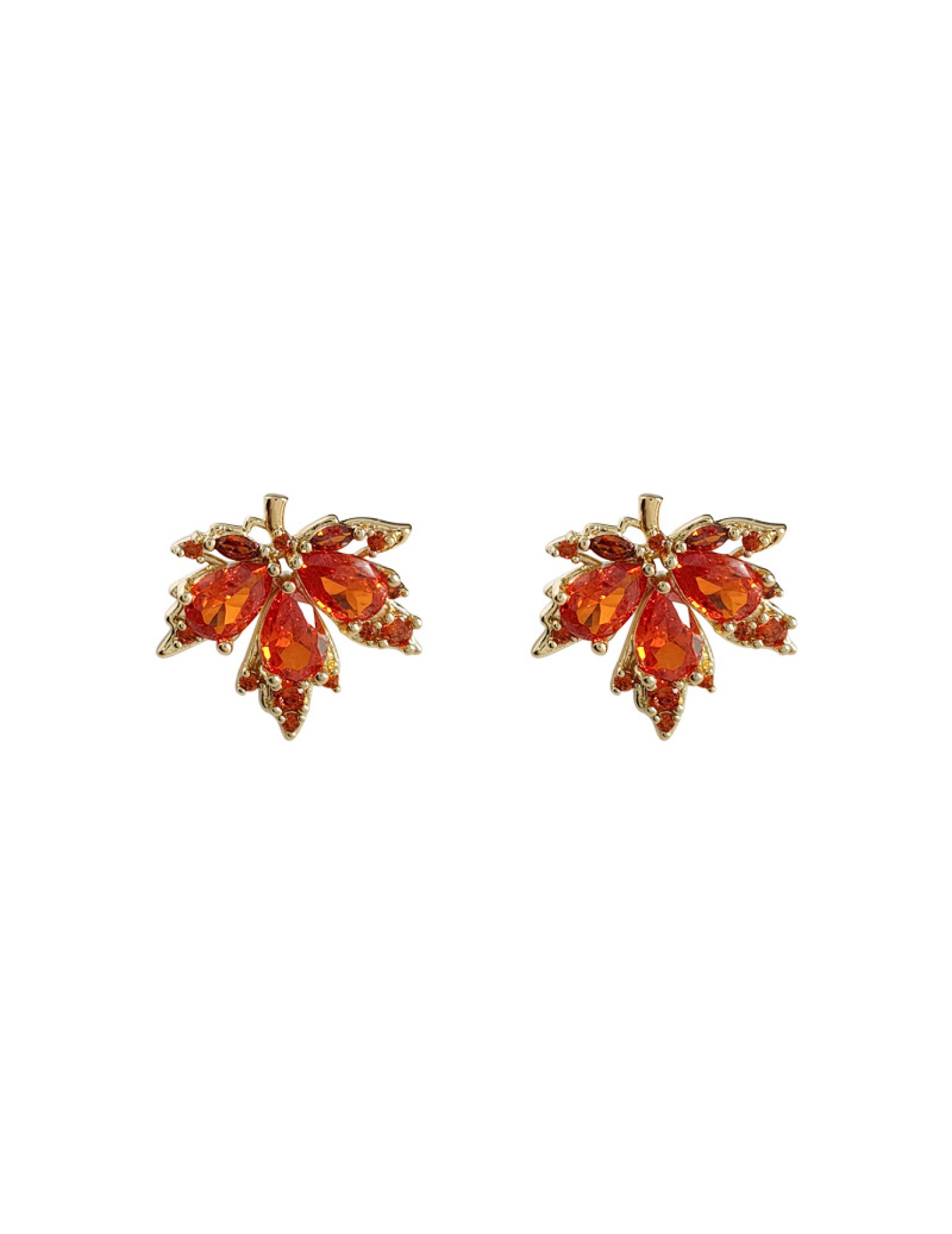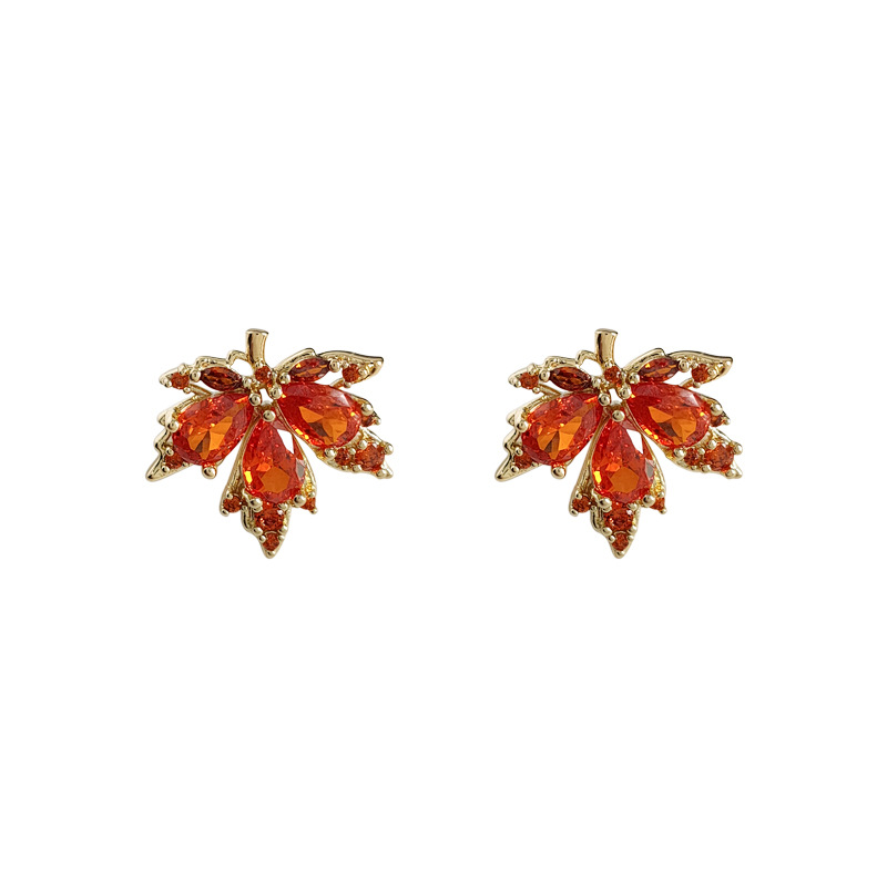 28鋯石紅色楓葉耳釘