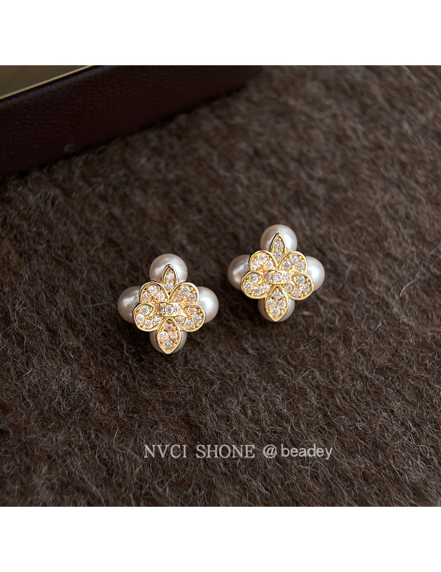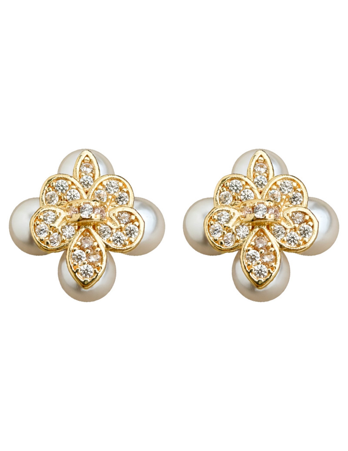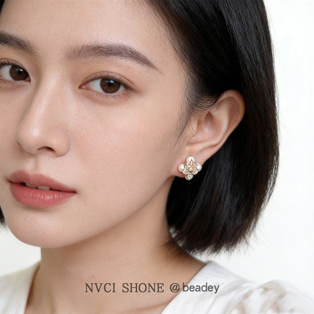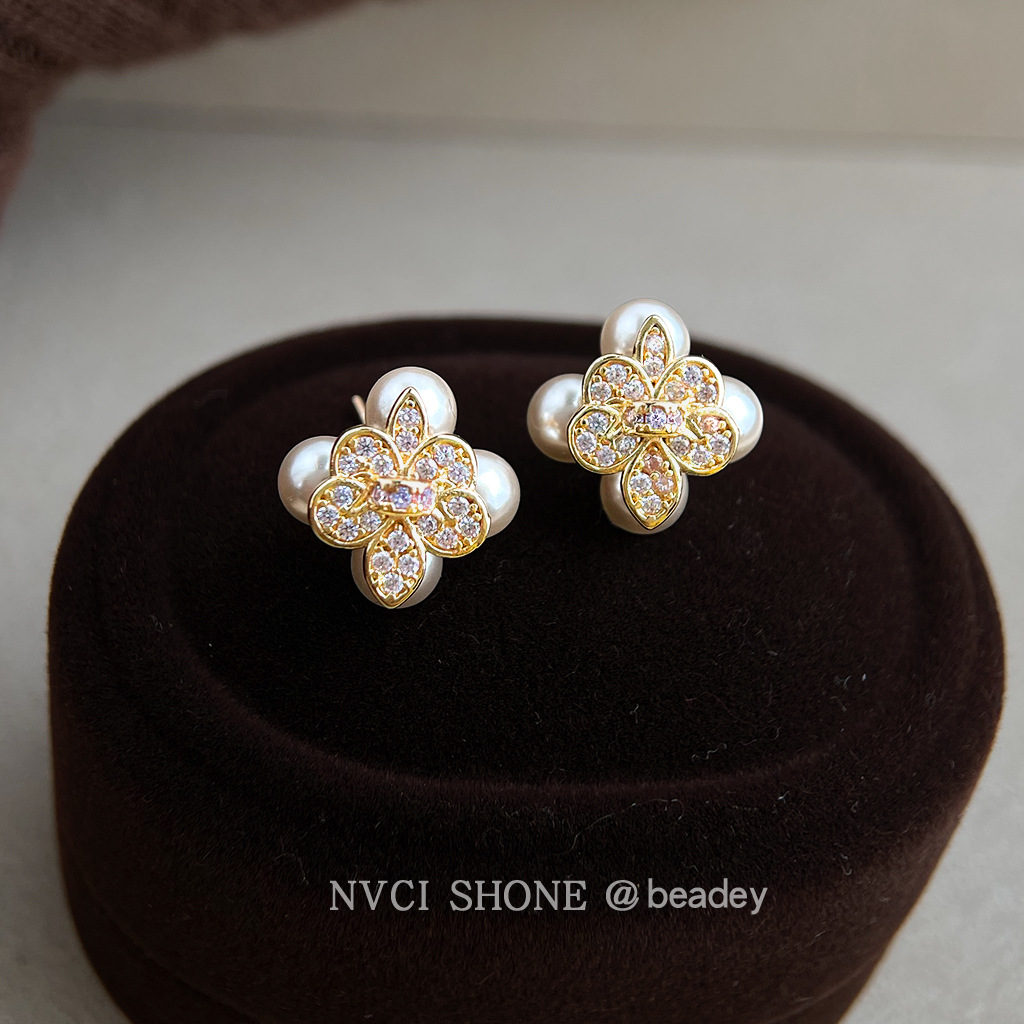 HELN124100333 鳶尾花微鑲鋯石925銀針鍍14K保色電鍍時尚高級感耳釘