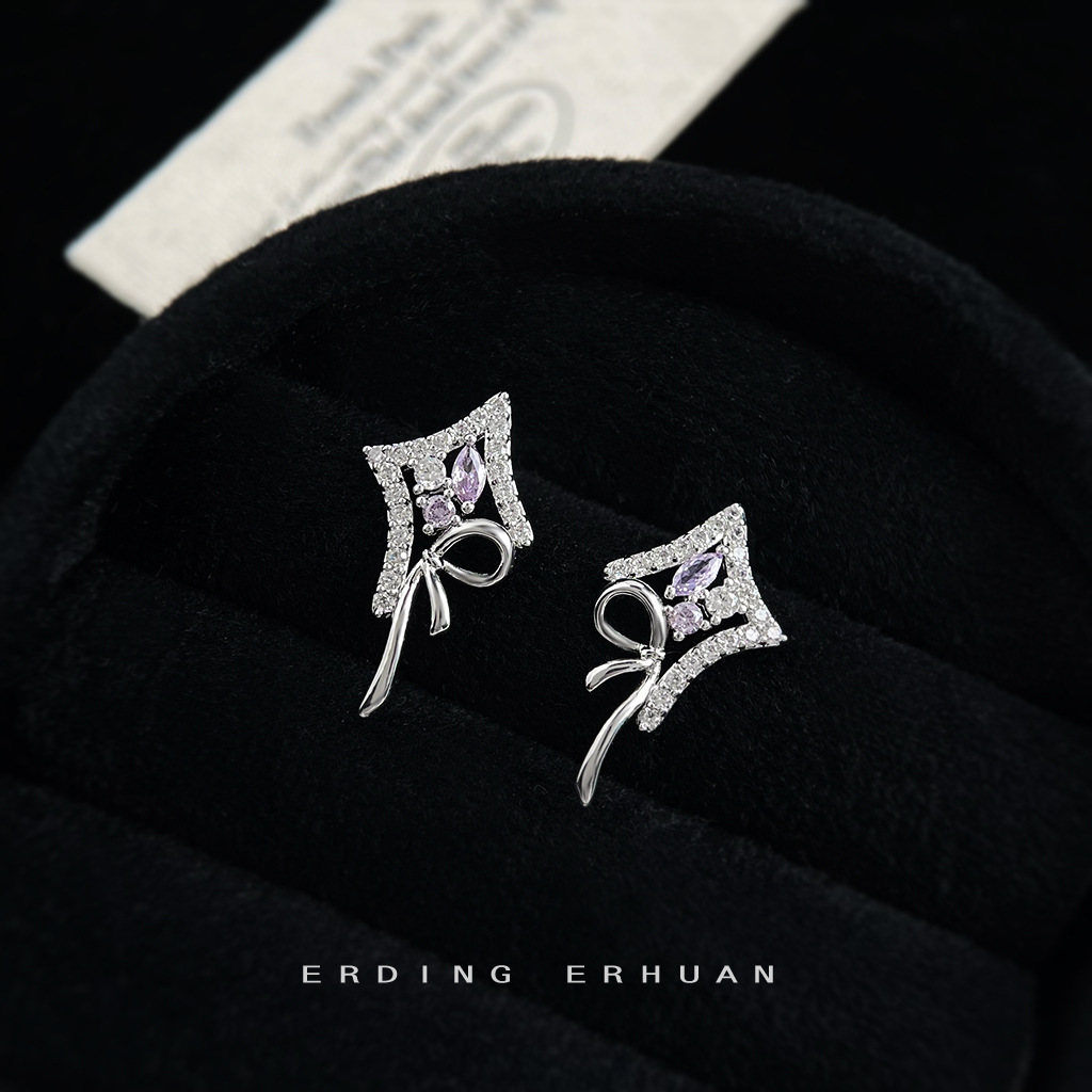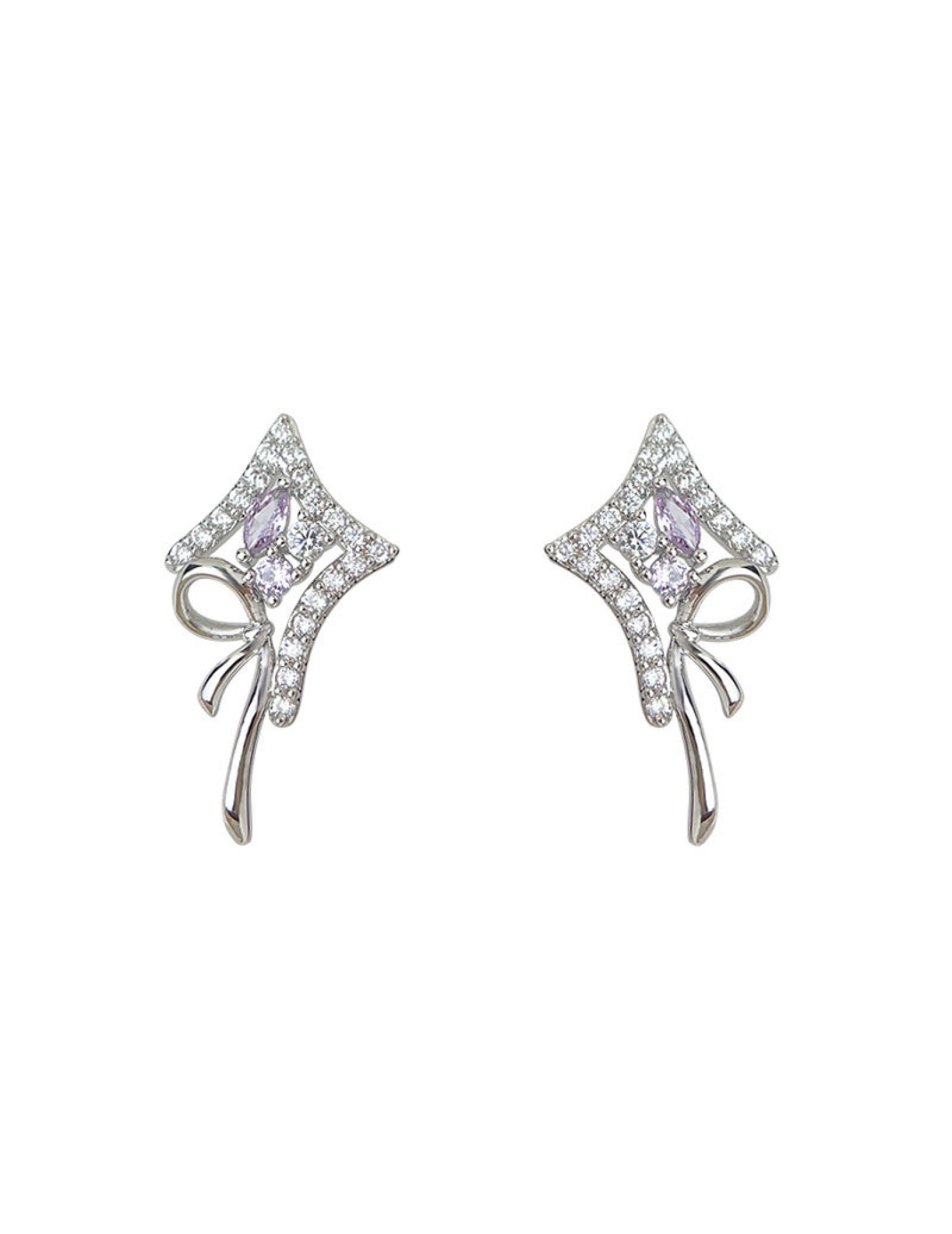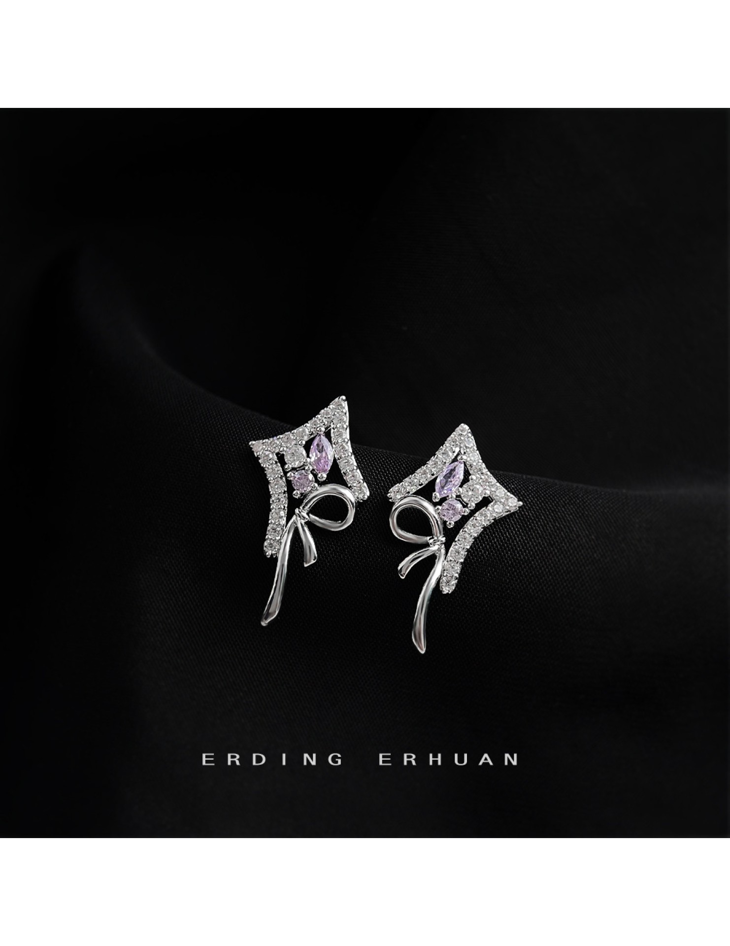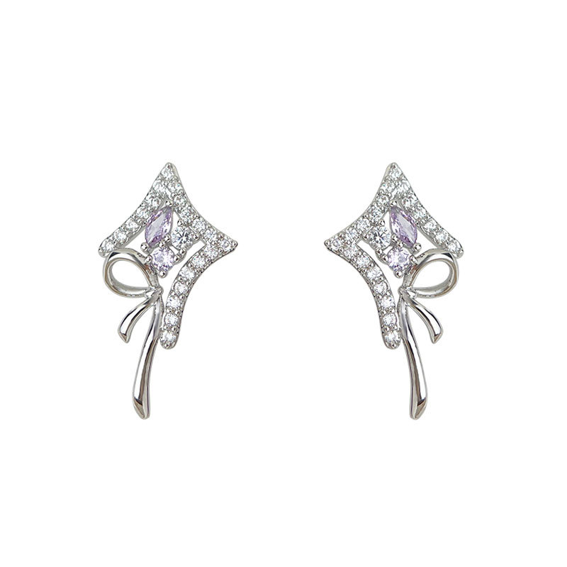 HELN124100335 設計芒星蝴蝶結微鑲鋯石925銀針時尚優雅甜美耳釘 耳飾女