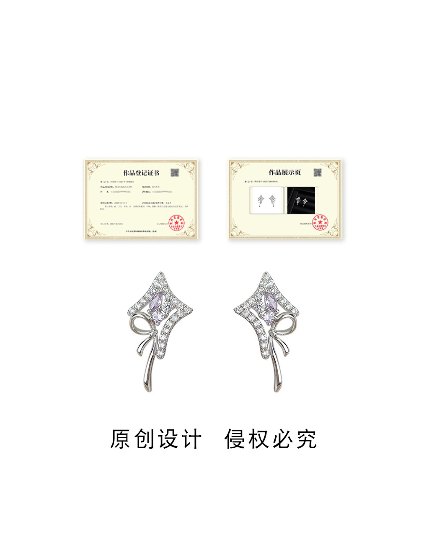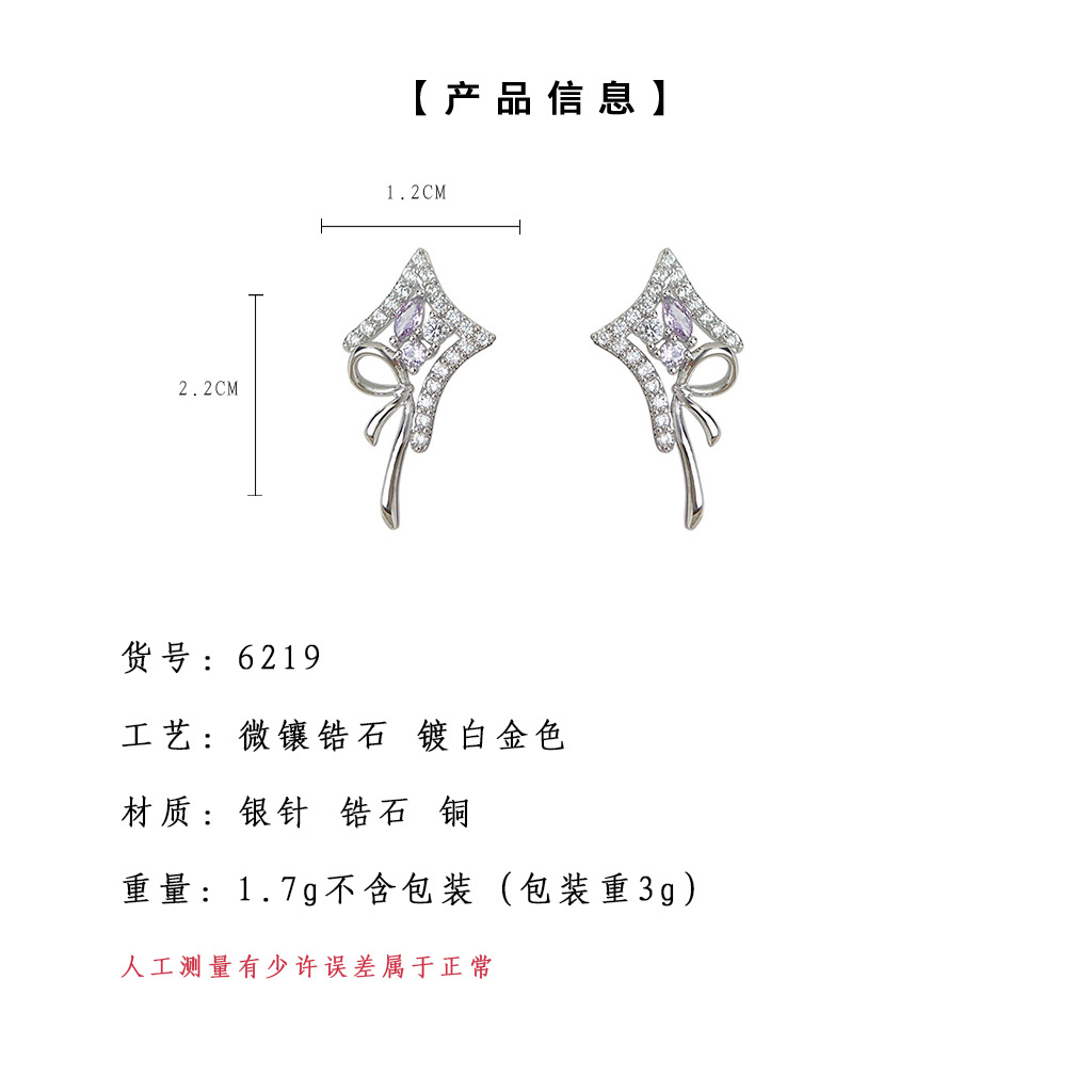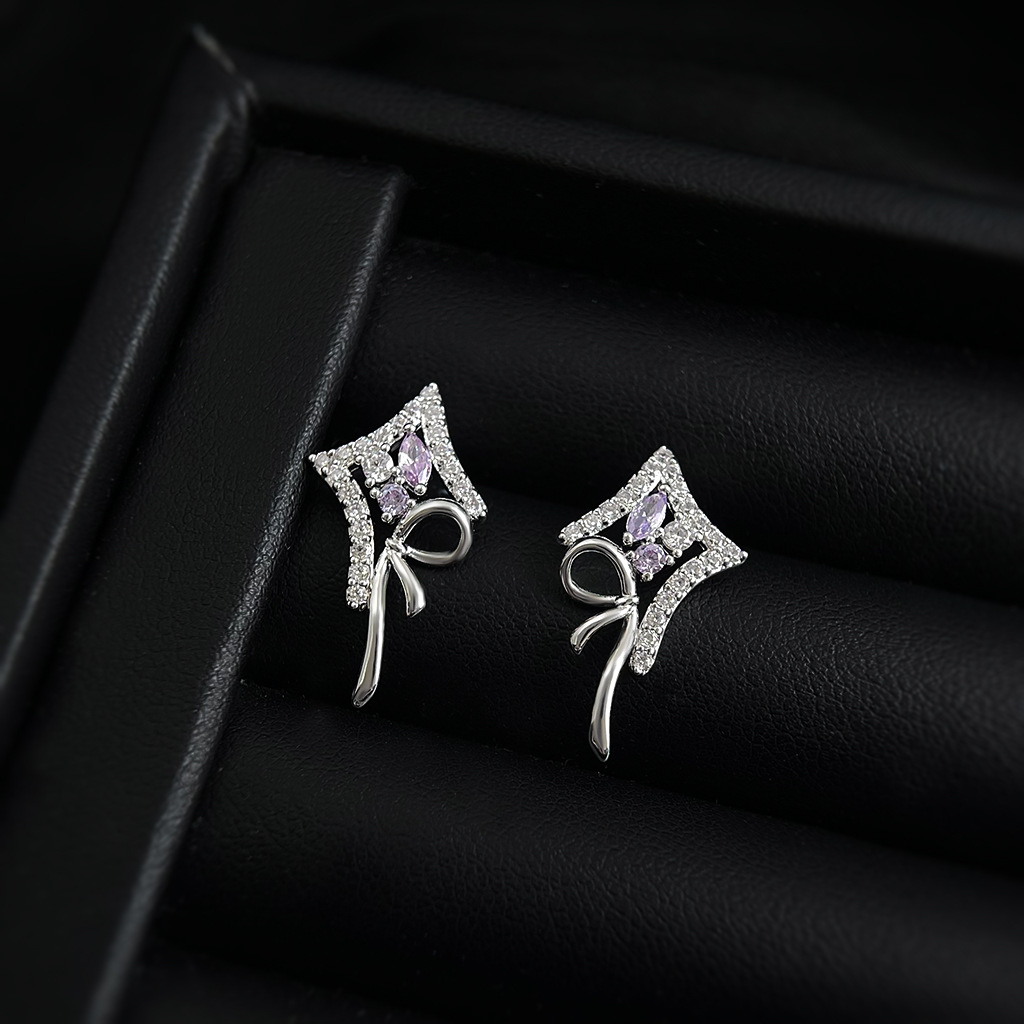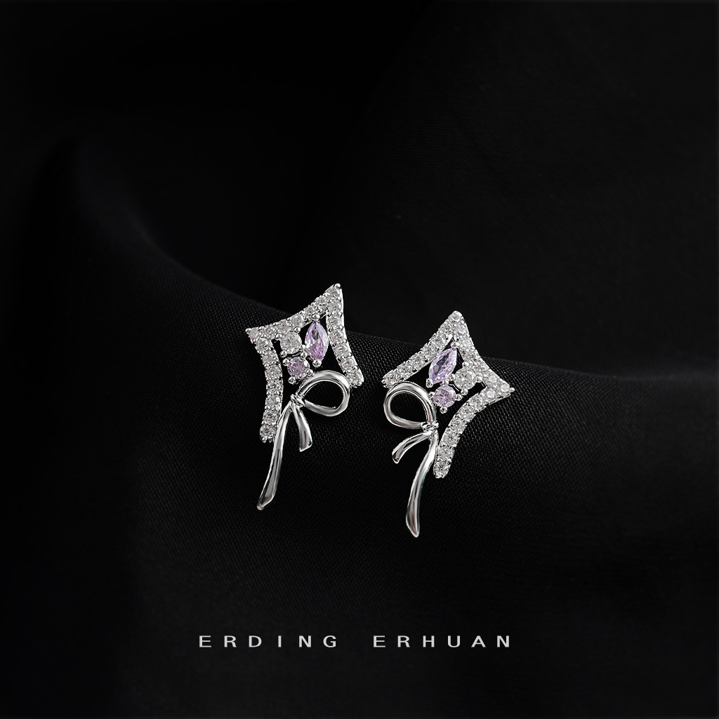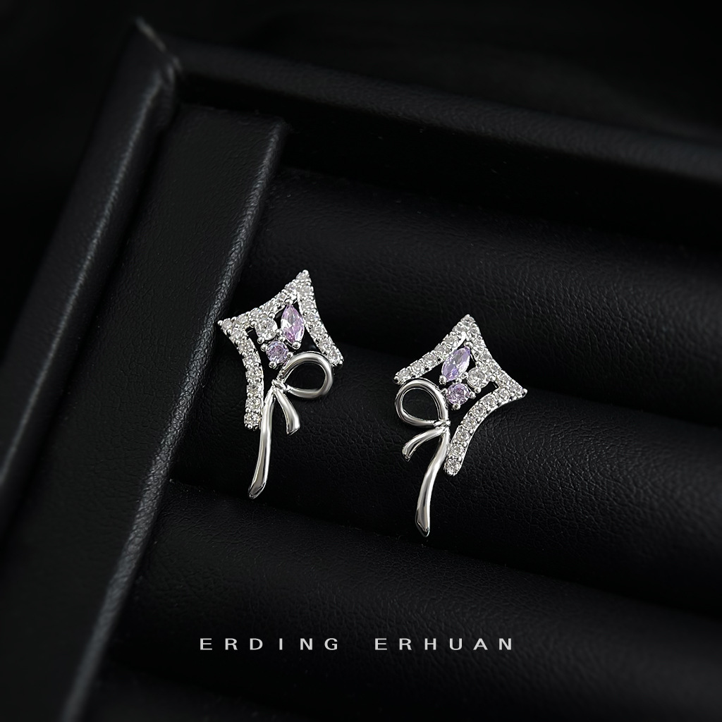 HELN124100335 設計芒星蝴蝶結微鑲鋯石925銀針時尚優雅甜美耳釘 耳飾女