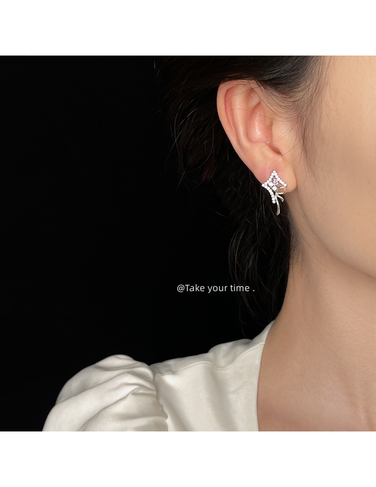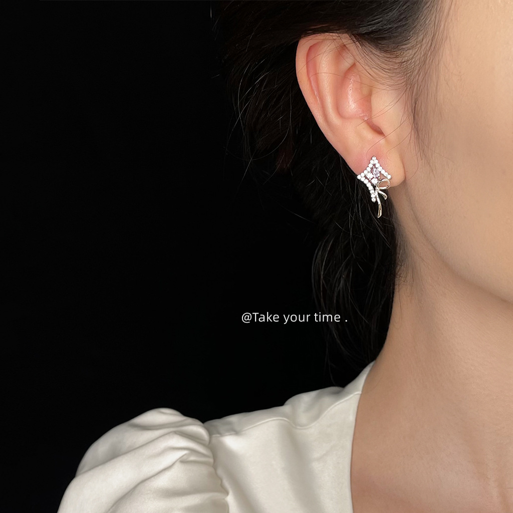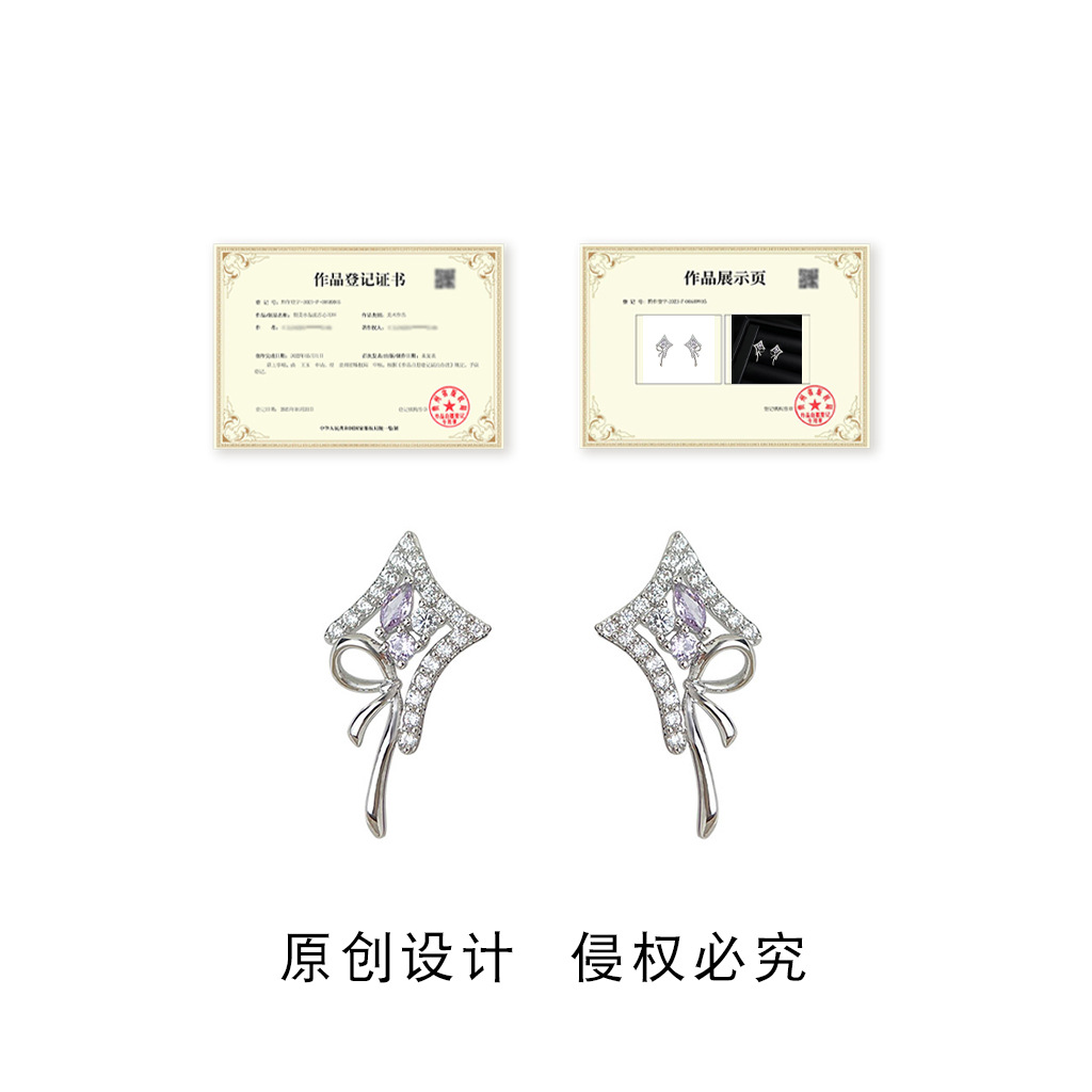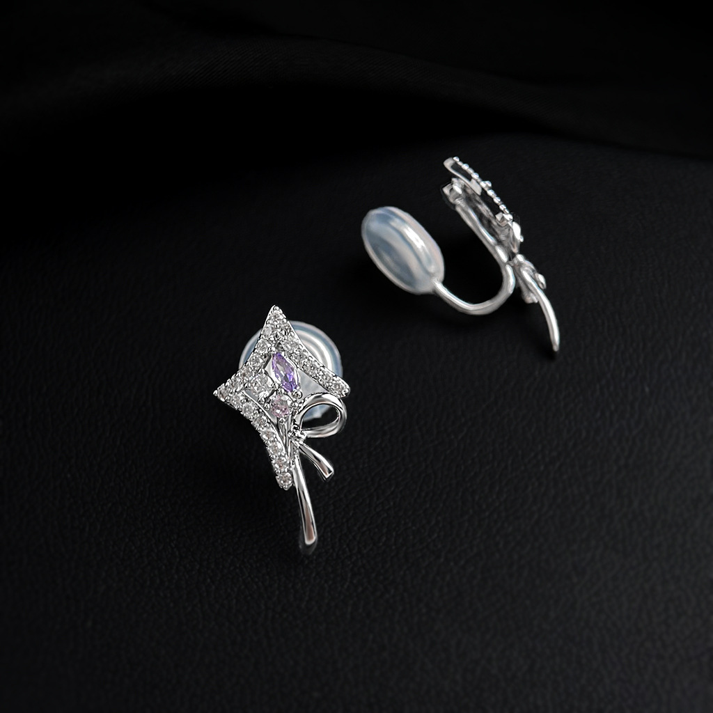 HELN124100335 設計芒星蝴蝶結微鑲鋯石925銀針時尚優雅甜美耳釘 耳飾女