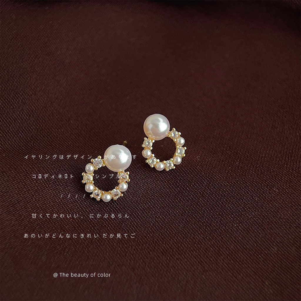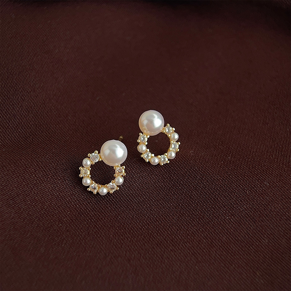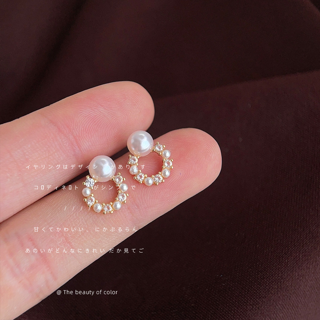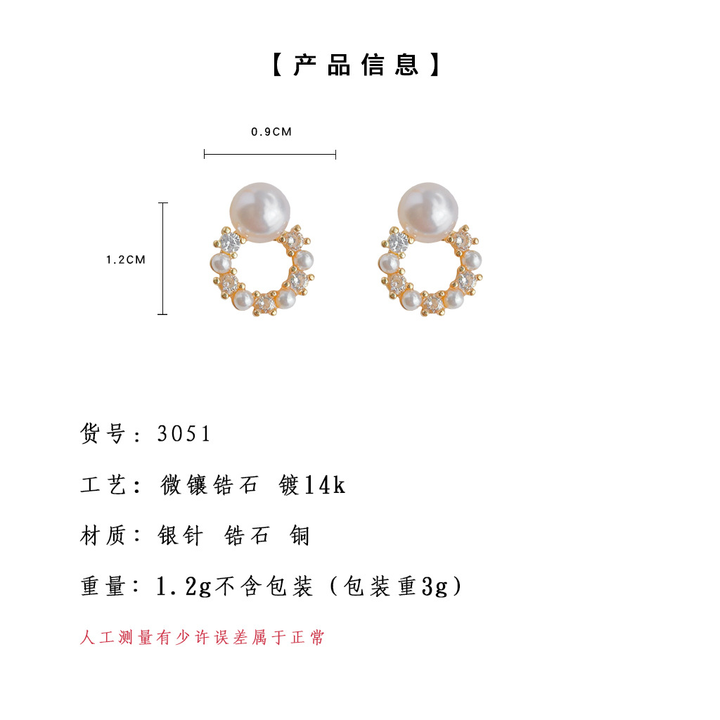 HELN124100341 微鑲鋯石迷你版簡約圓形幾何銀針鍍14K小耳釘氣質百搭清新耳飾女