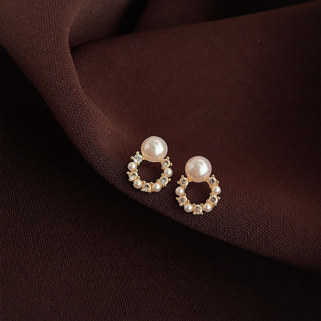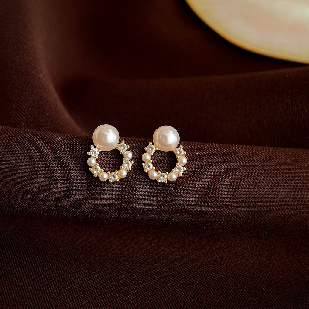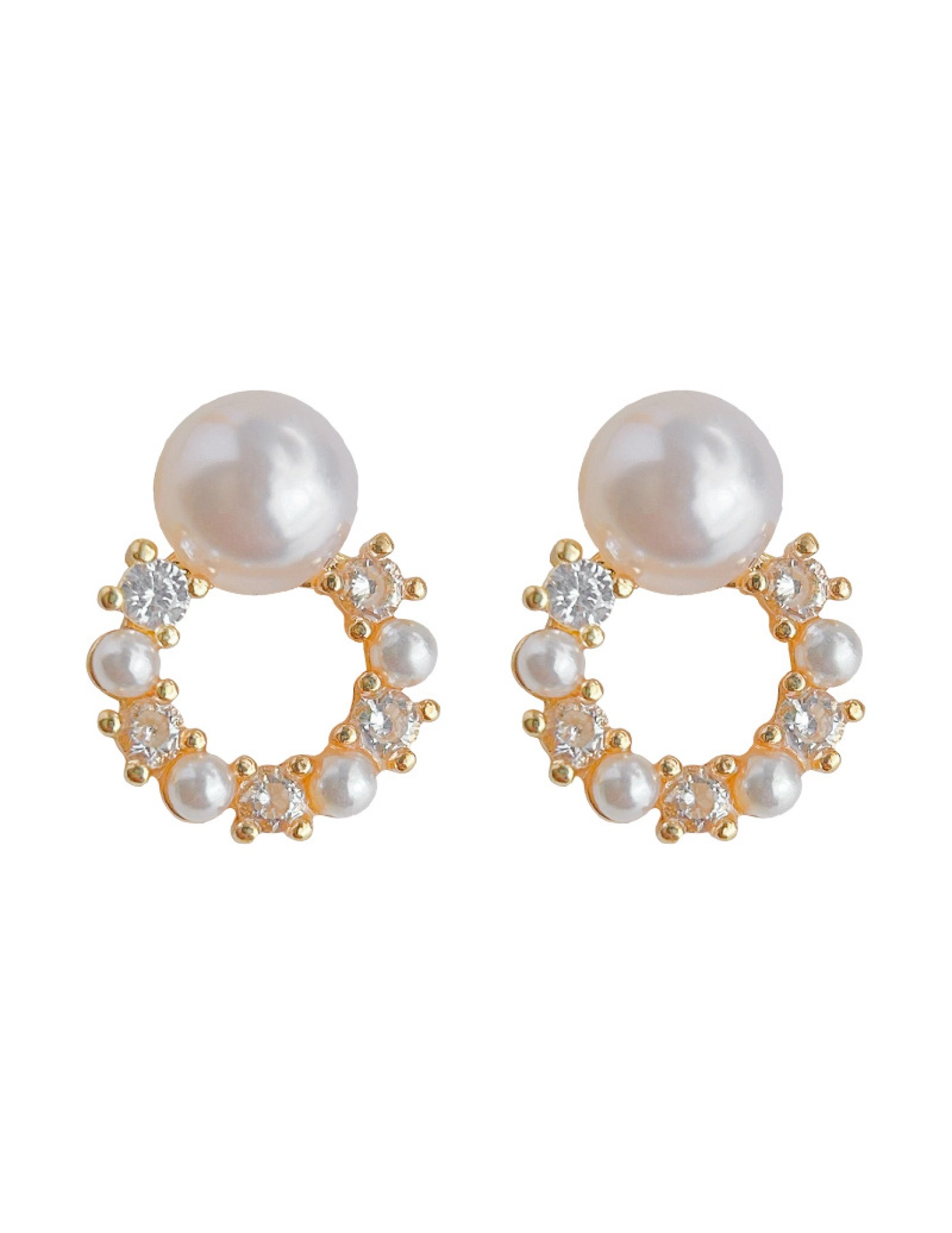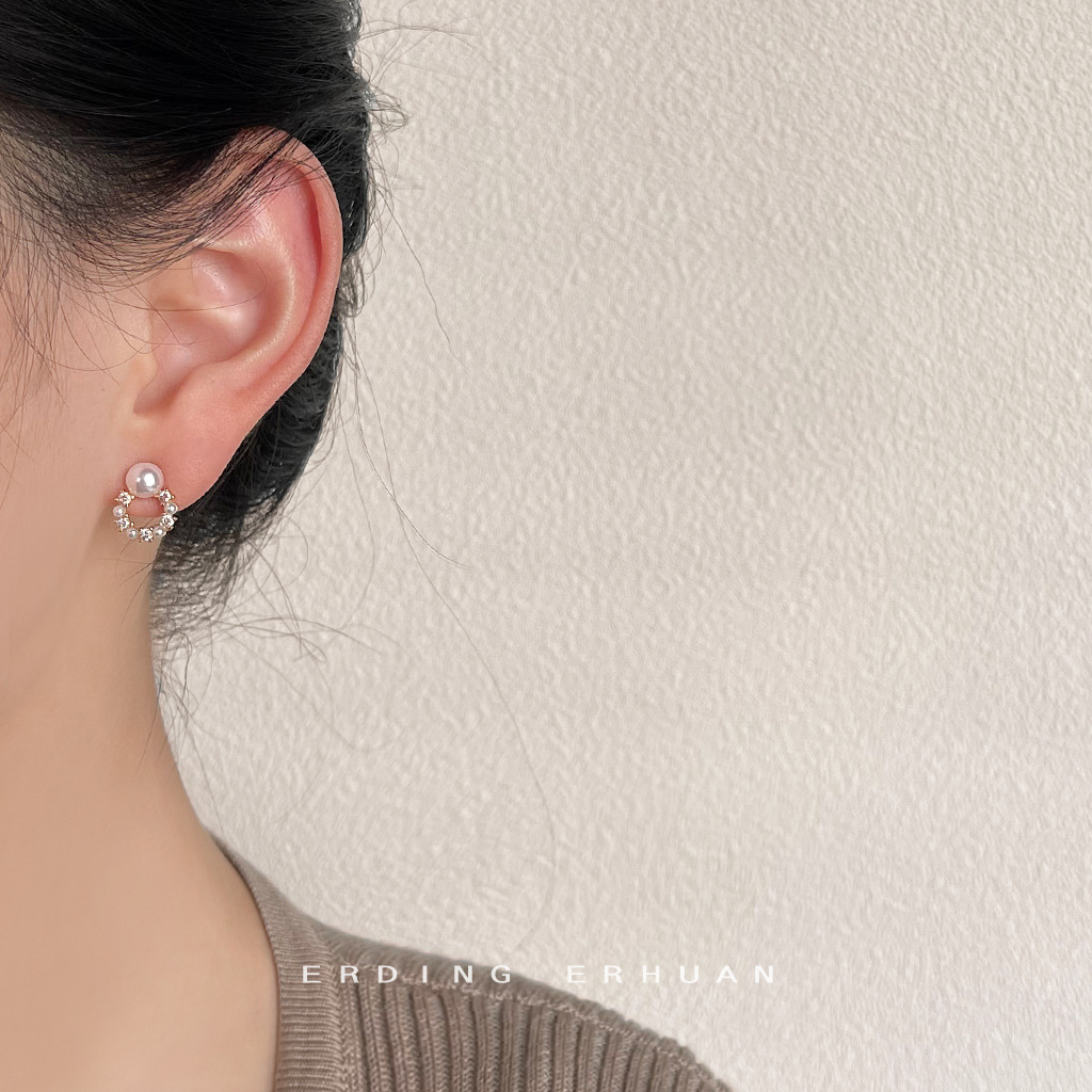 HELN124100341 微鑲鋯石迷你版簡約圓形幾何銀針鍍14K小耳釘氣質百搭清新耳飾女