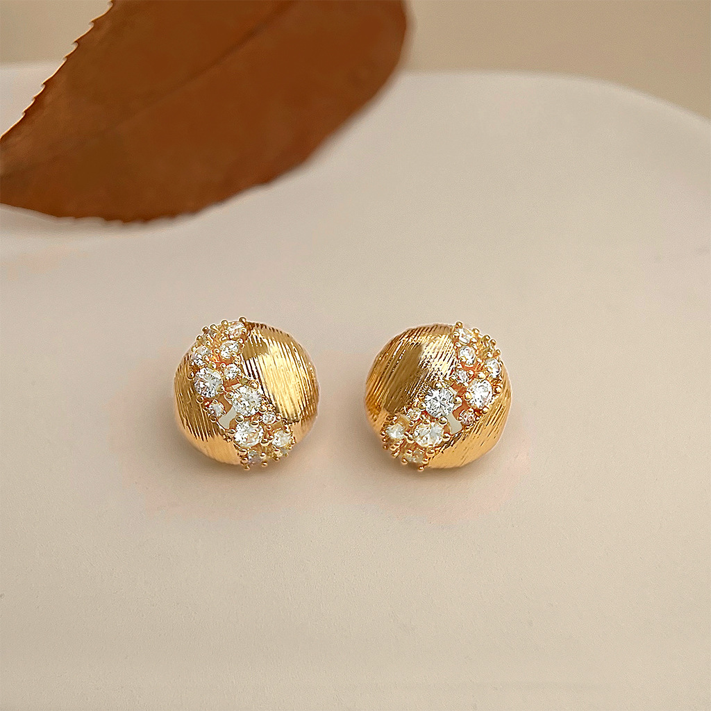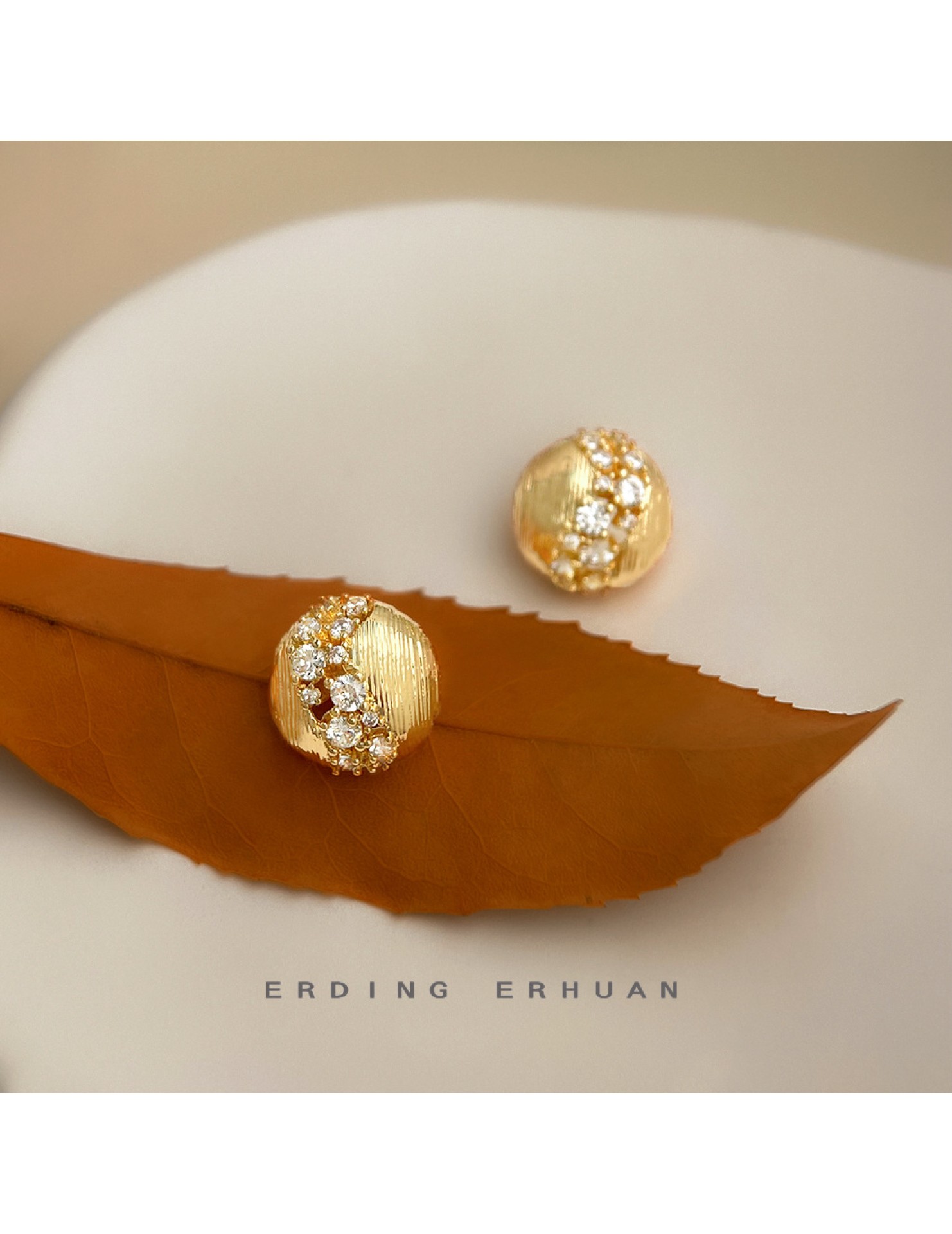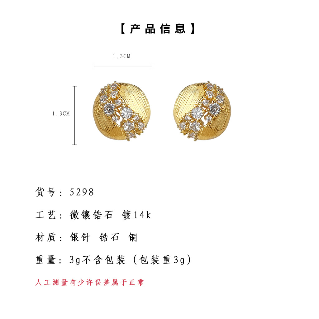 HELN124100342 鑲鋯石925銀針鍍14K高級感鏤空輕奢風耳釘飾品