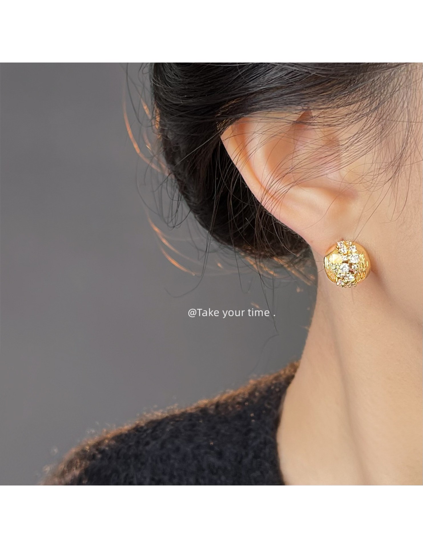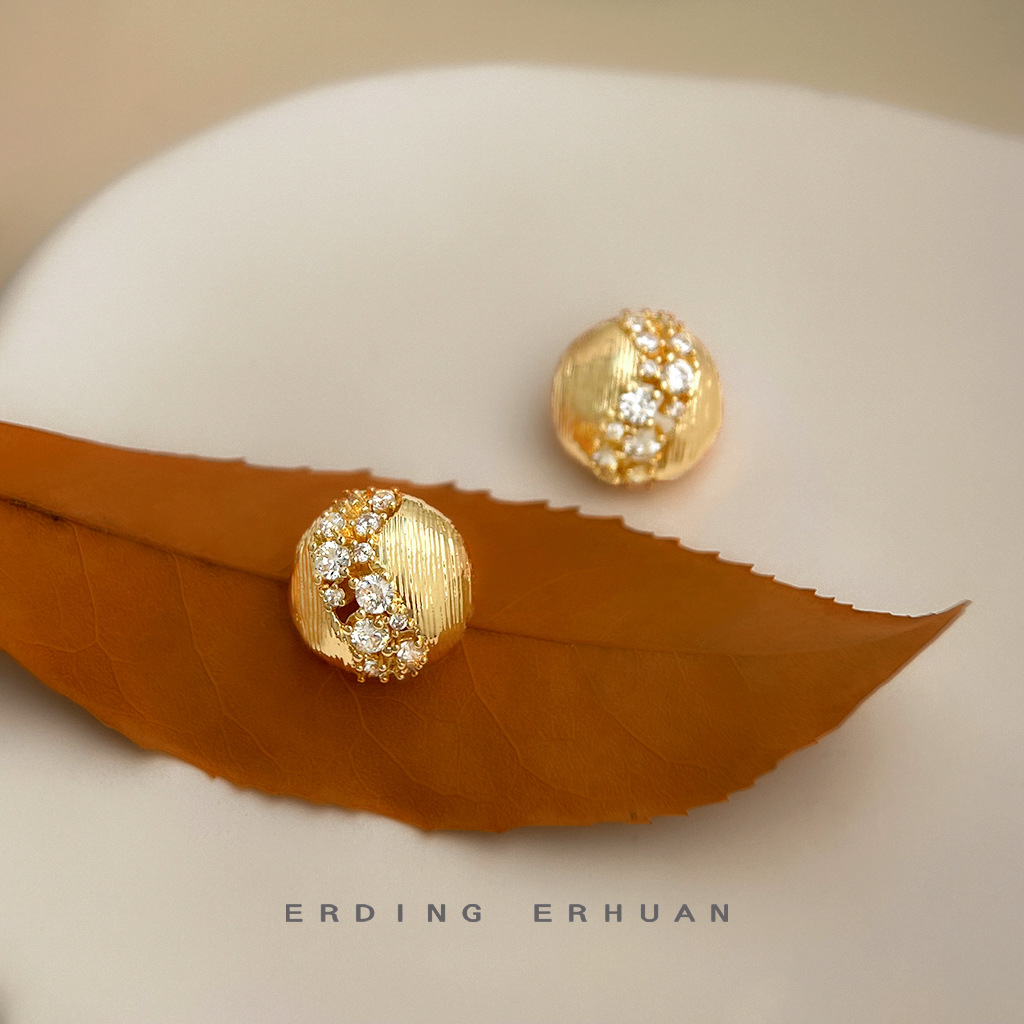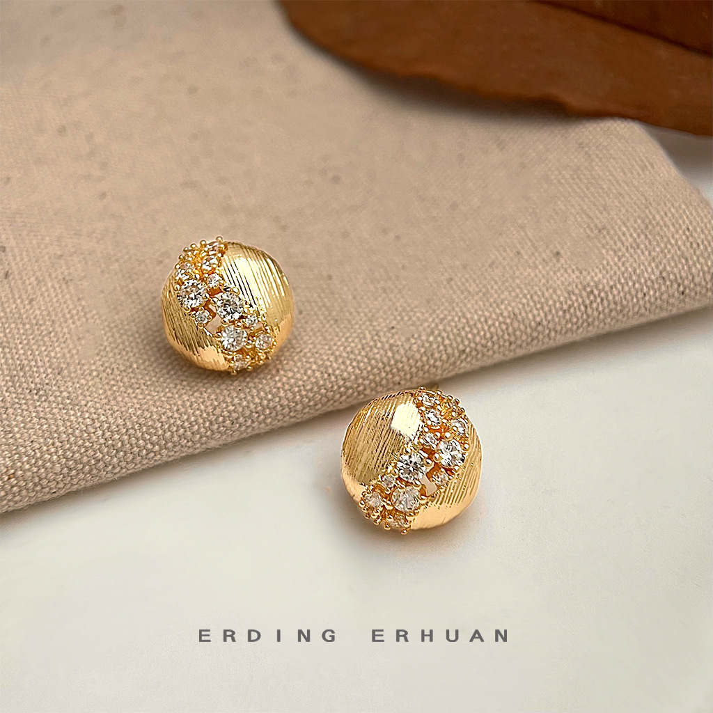 HELN124100342 鑲鋯石925銀針鍍14K高級感鏤空輕奢風耳釘飾品