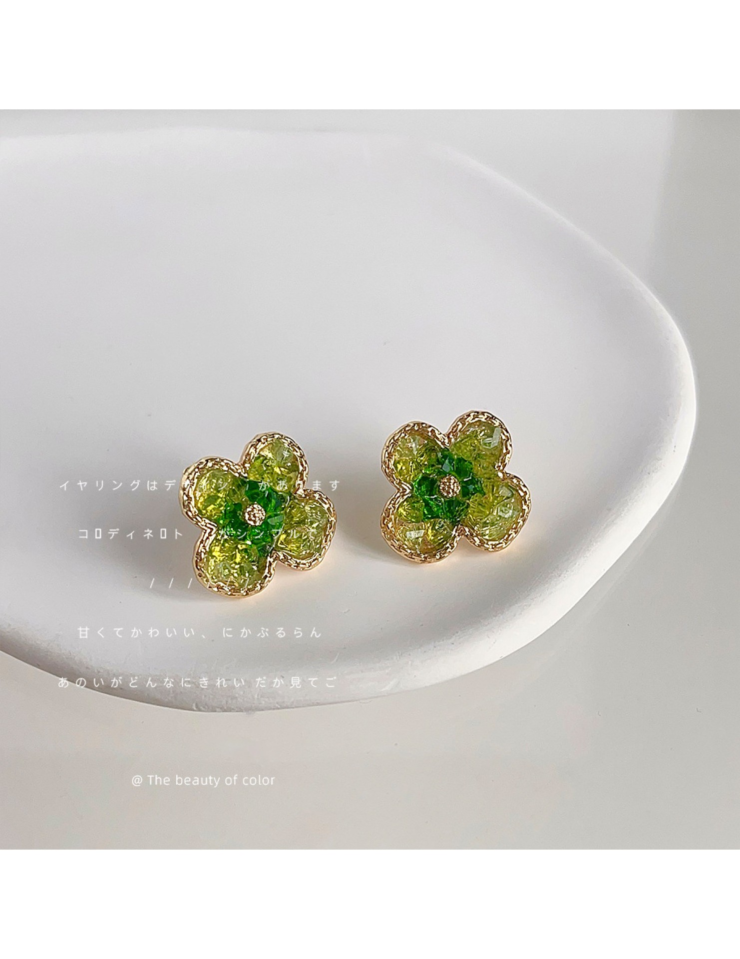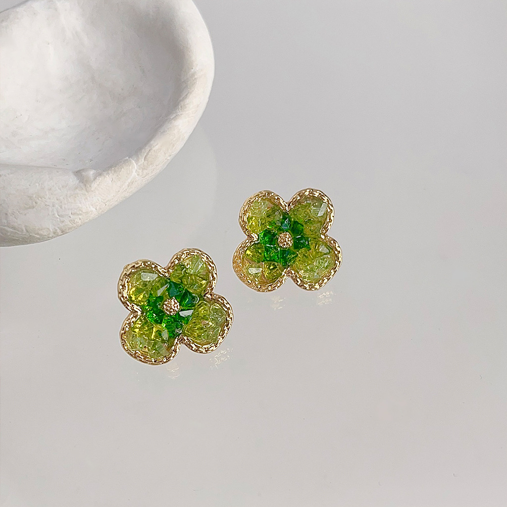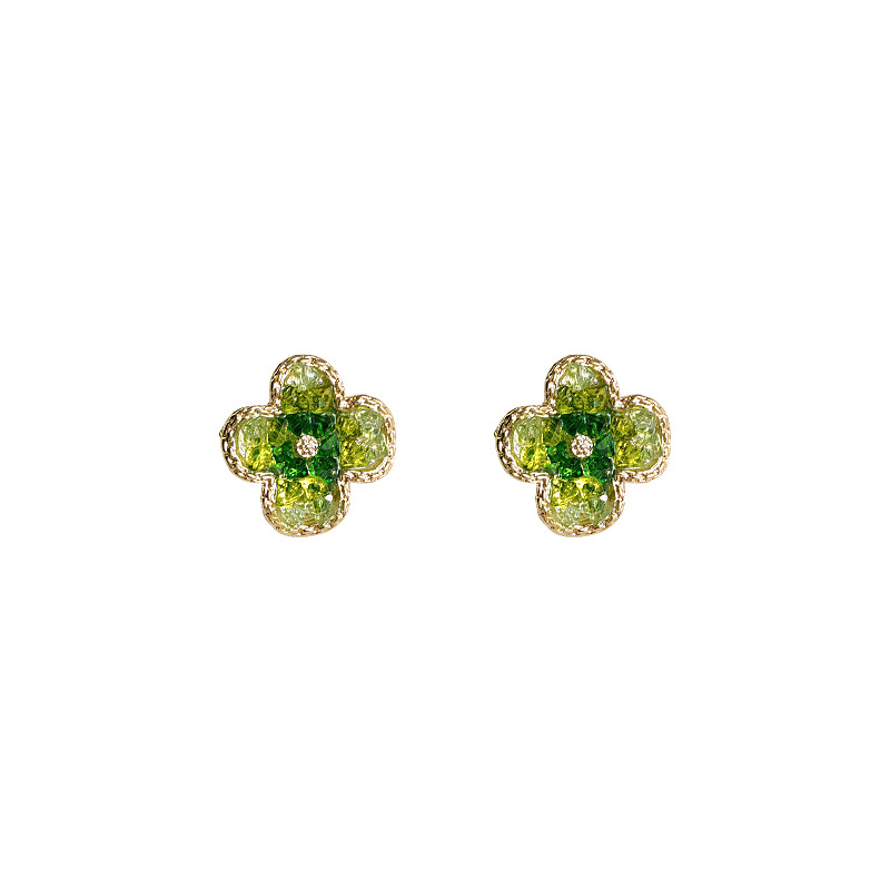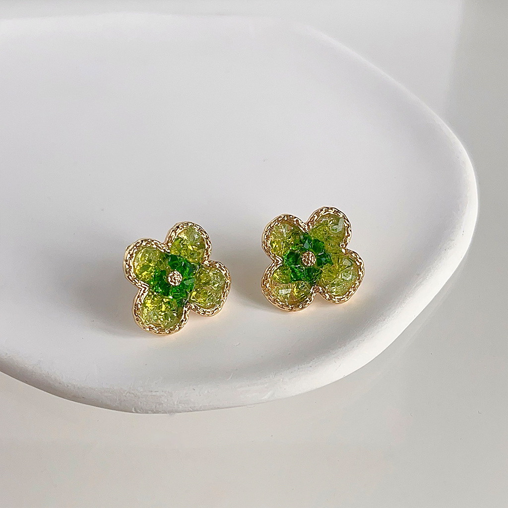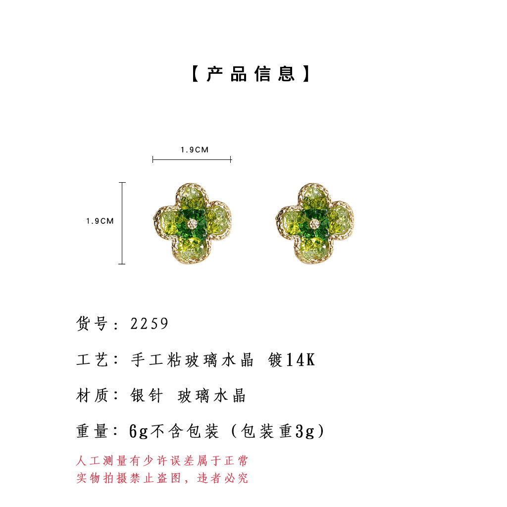 HELN124100348 夏款實物很閃森系甜美綠色925銀針鍍14K玻璃水晶耳釘耳飾耳環女