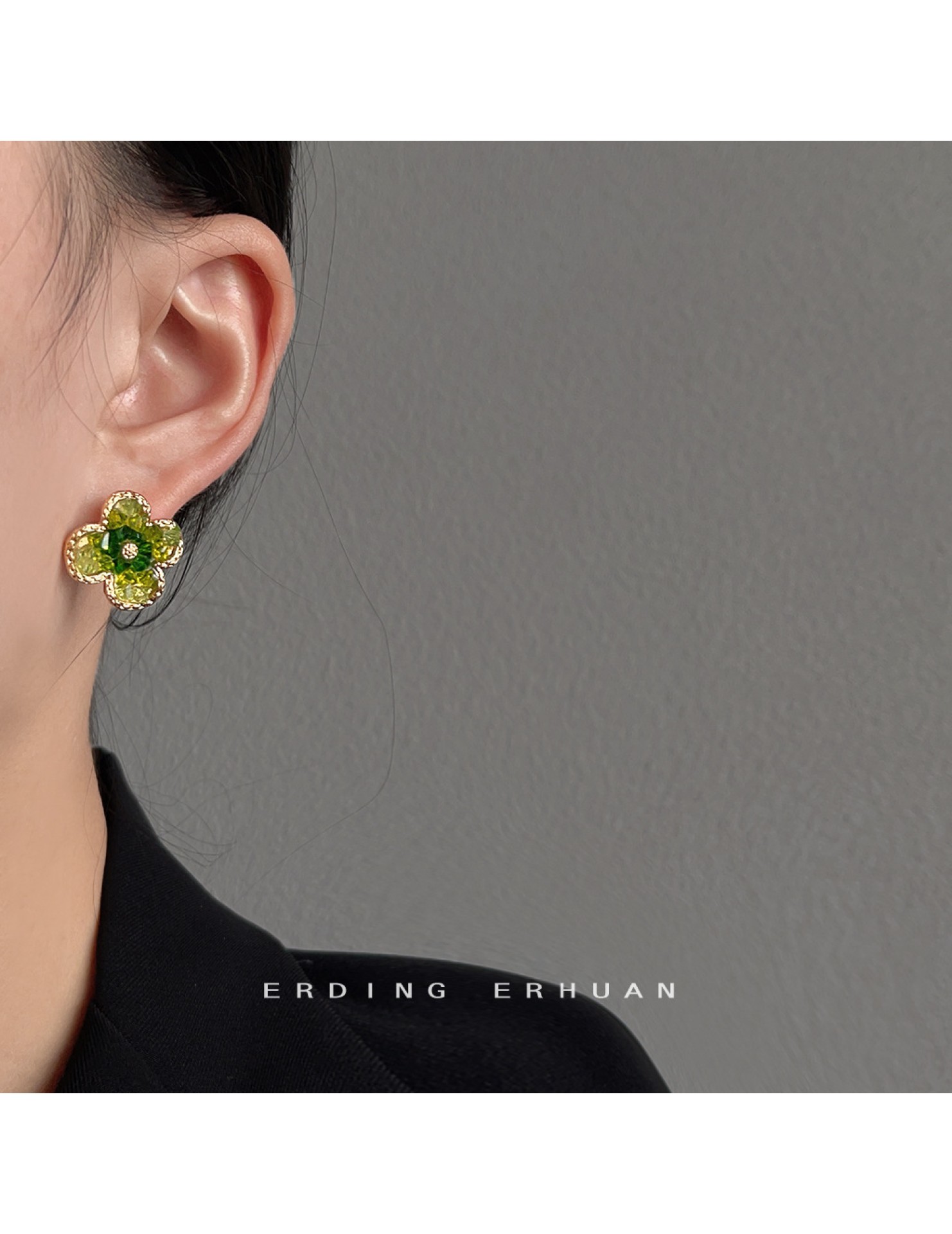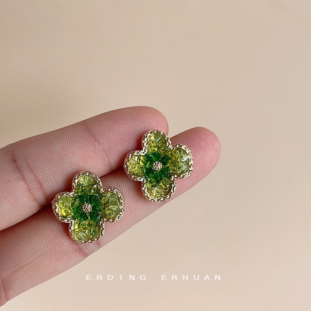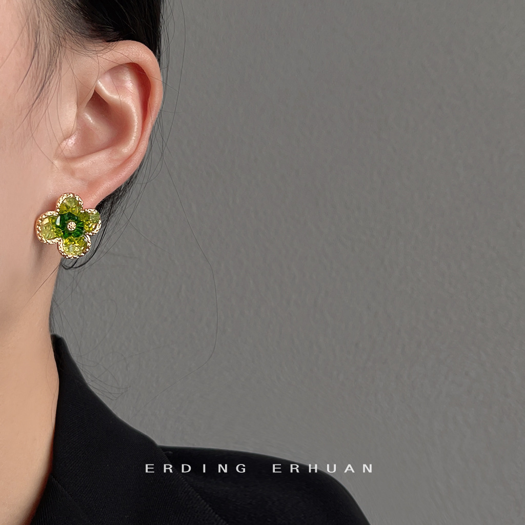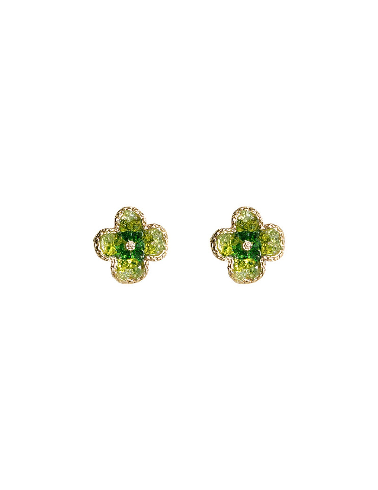 HELN124100348 夏款實物很閃森系甜美綠色925銀針鍍14K玻璃水晶耳釘耳飾耳環女