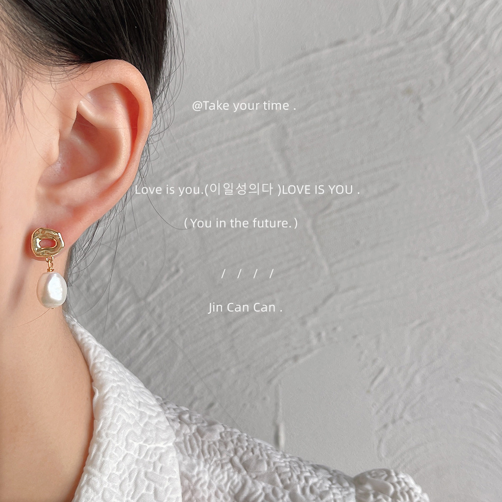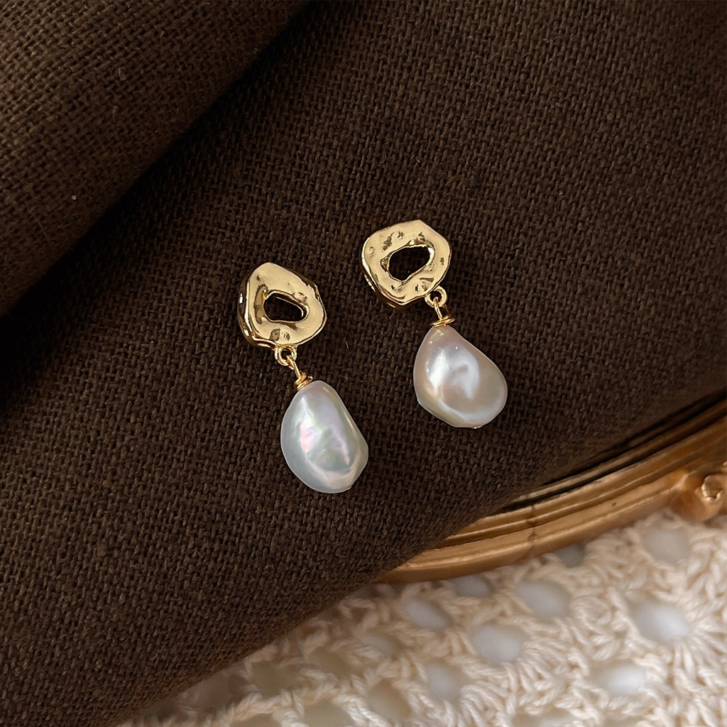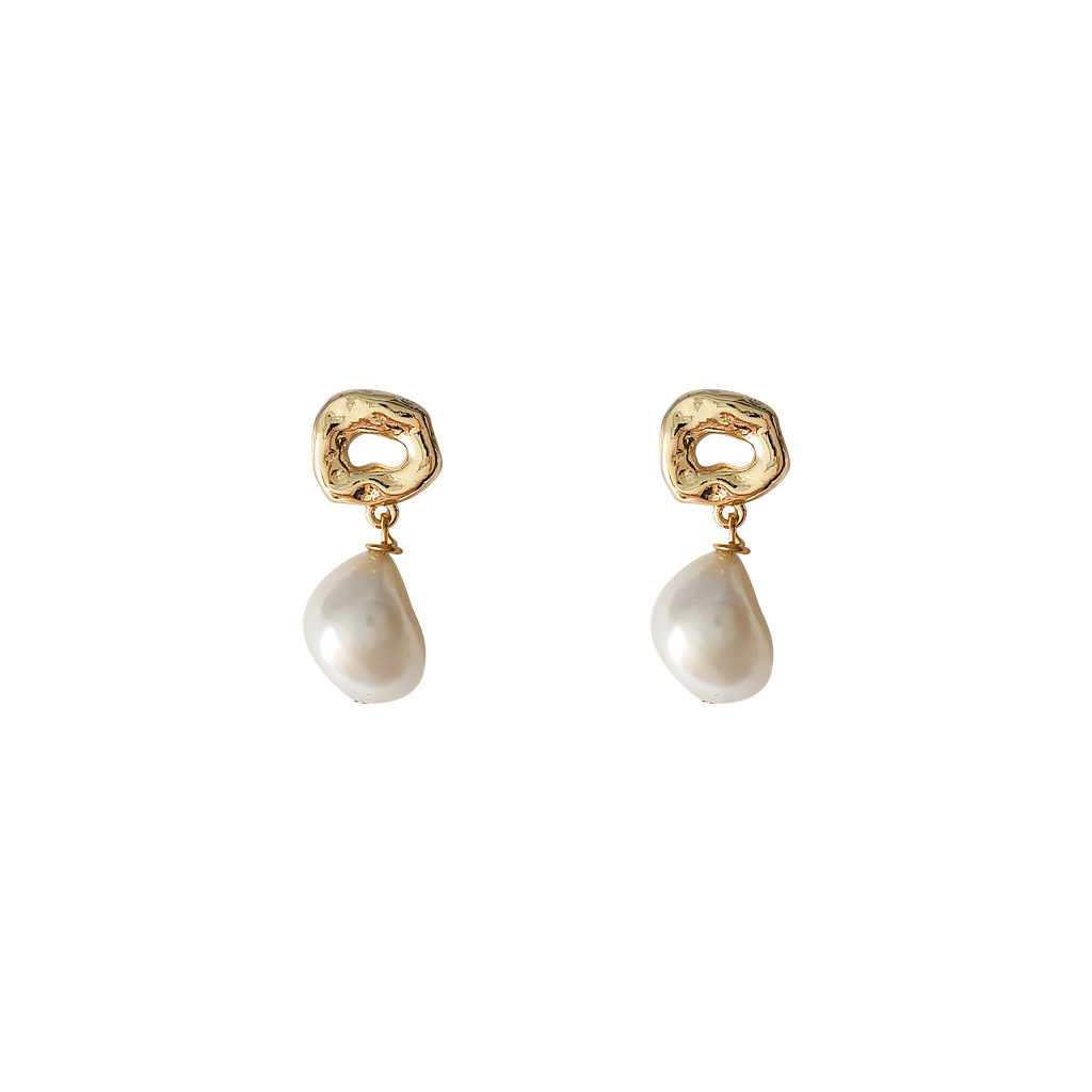 HELN124100354 巴洛克異形淡水珍珠~925銀針鍍14K手作設計感耳釘高級感耳飾 耳環