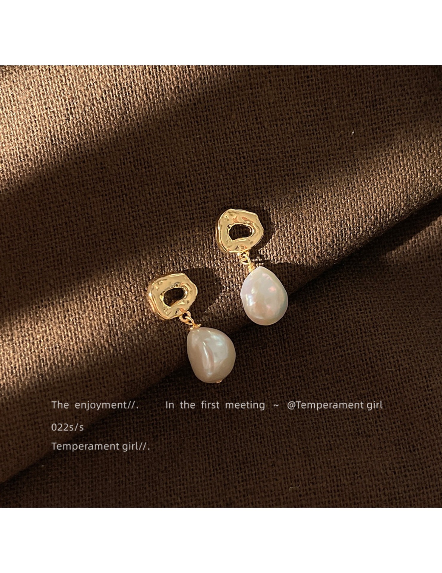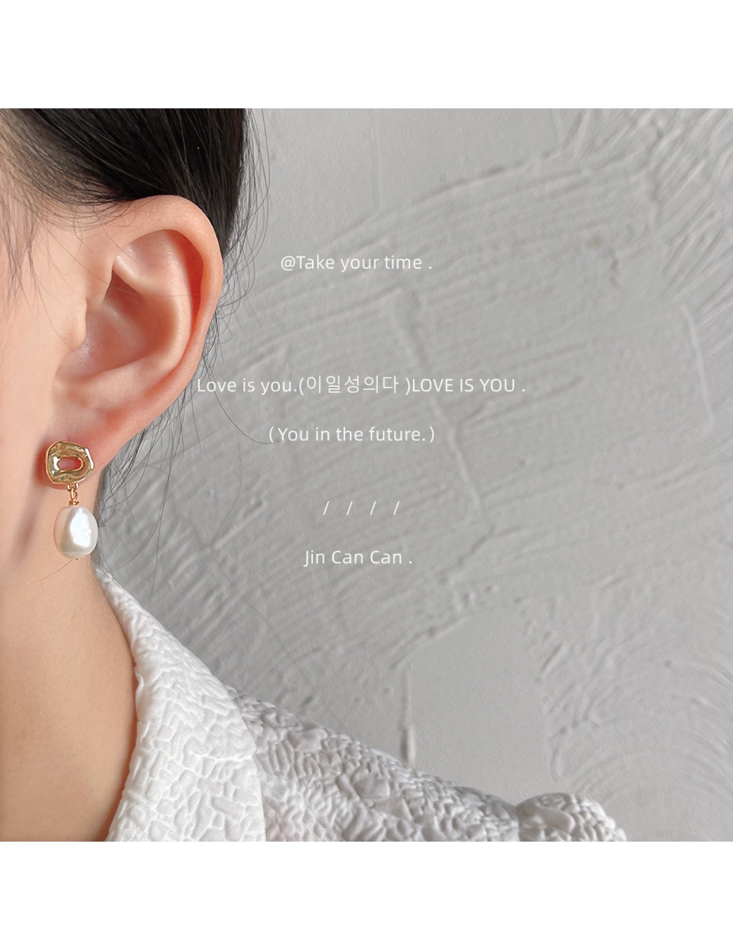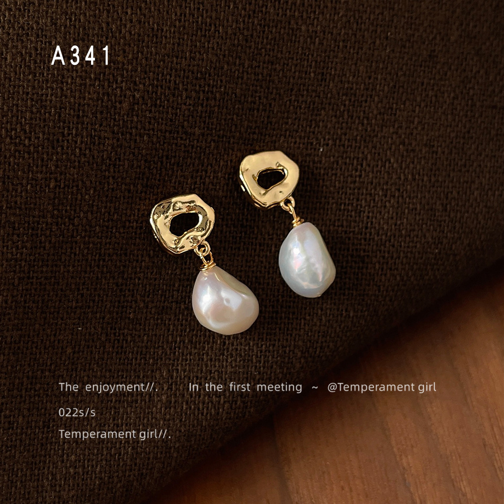 HELN124100354 巴洛克異形淡水珍珠~925銀針鍍14K手作設計感耳釘高級感耳飾 耳環