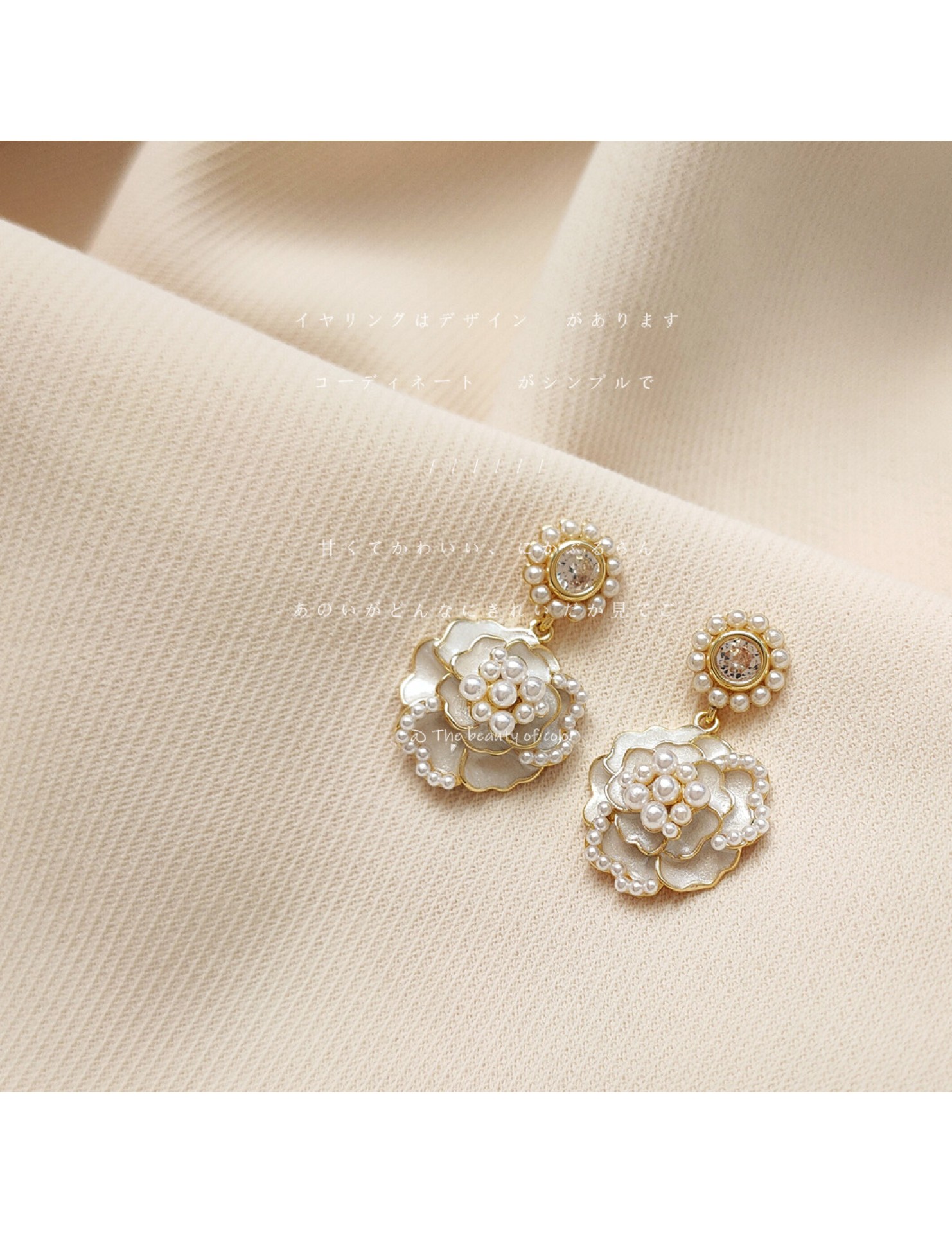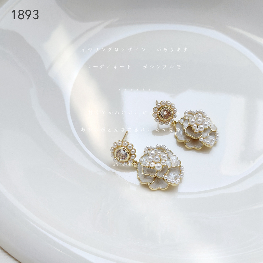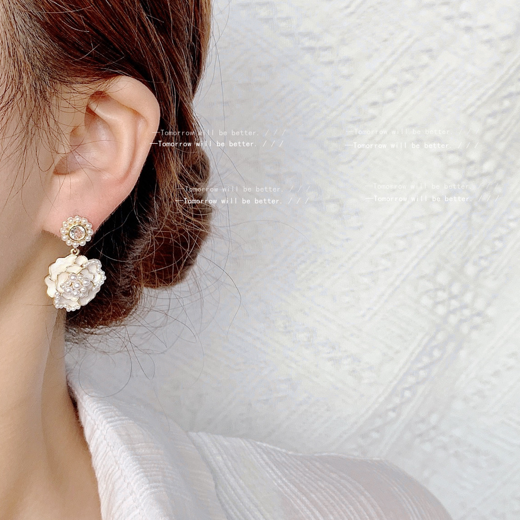 HELN124100362 925銀針山茶花珍珠耳環女超仙高級感耳釘 耳飾