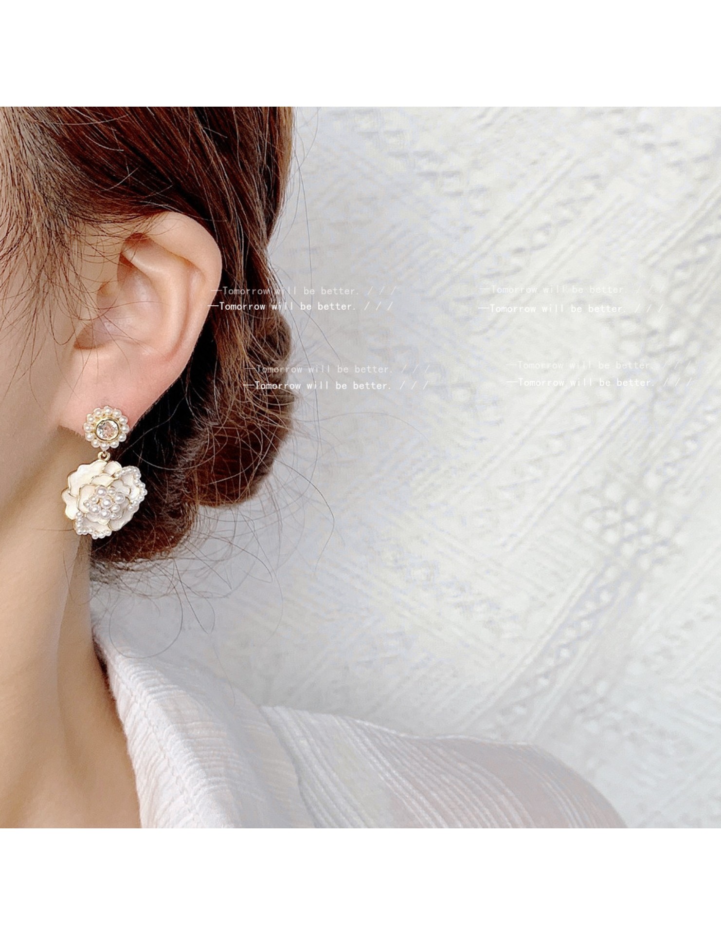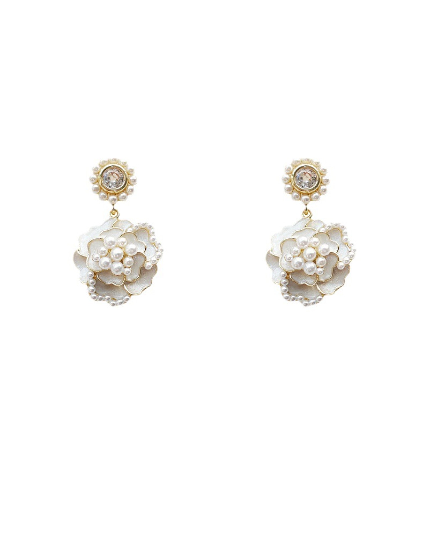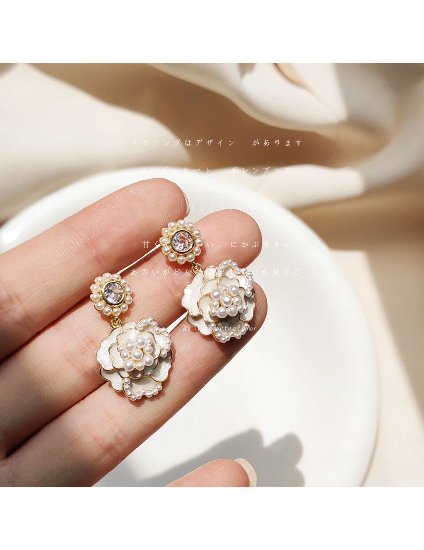 HELN124100362 925銀針山茶花珍珠耳環女超仙高級感耳釘 耳飾