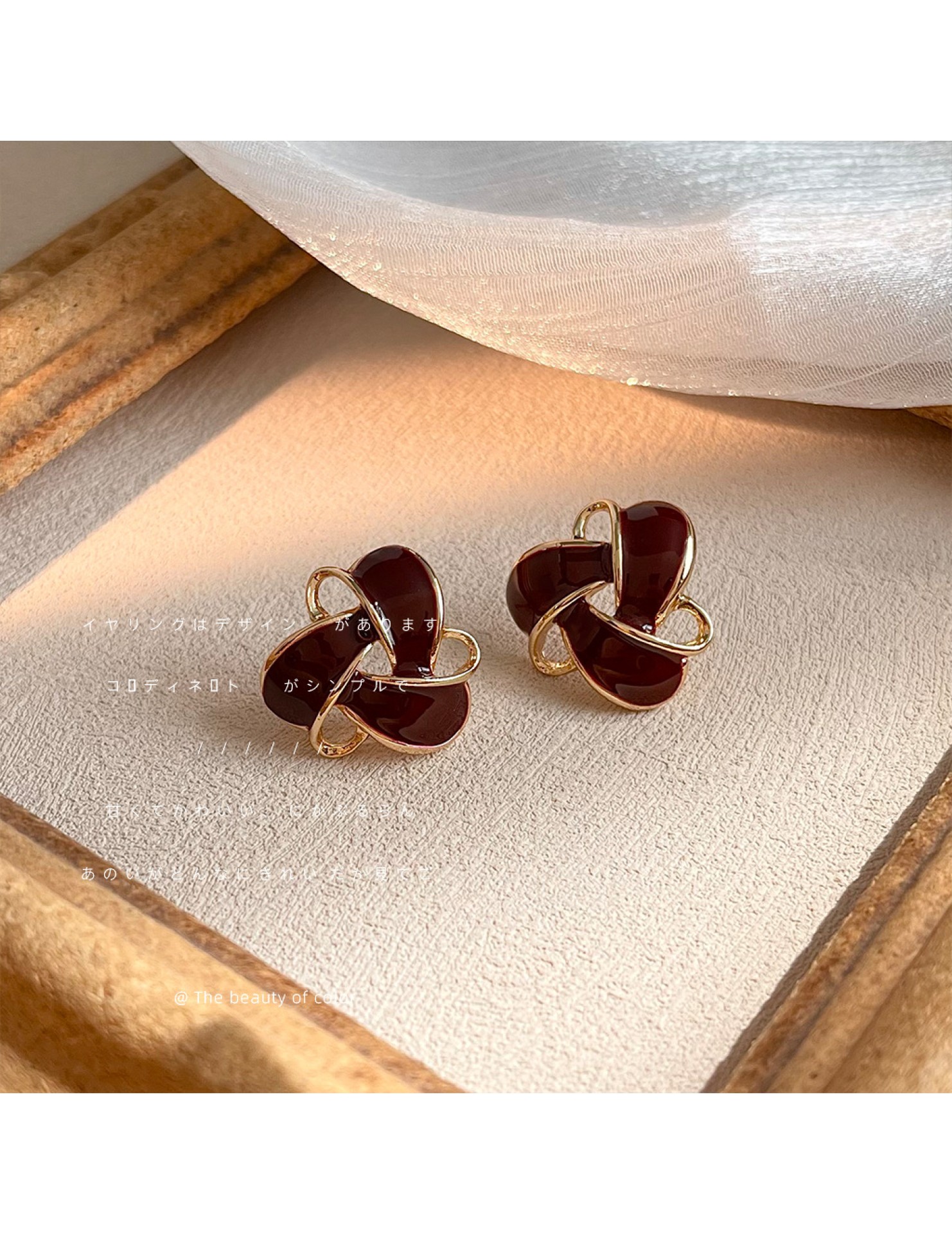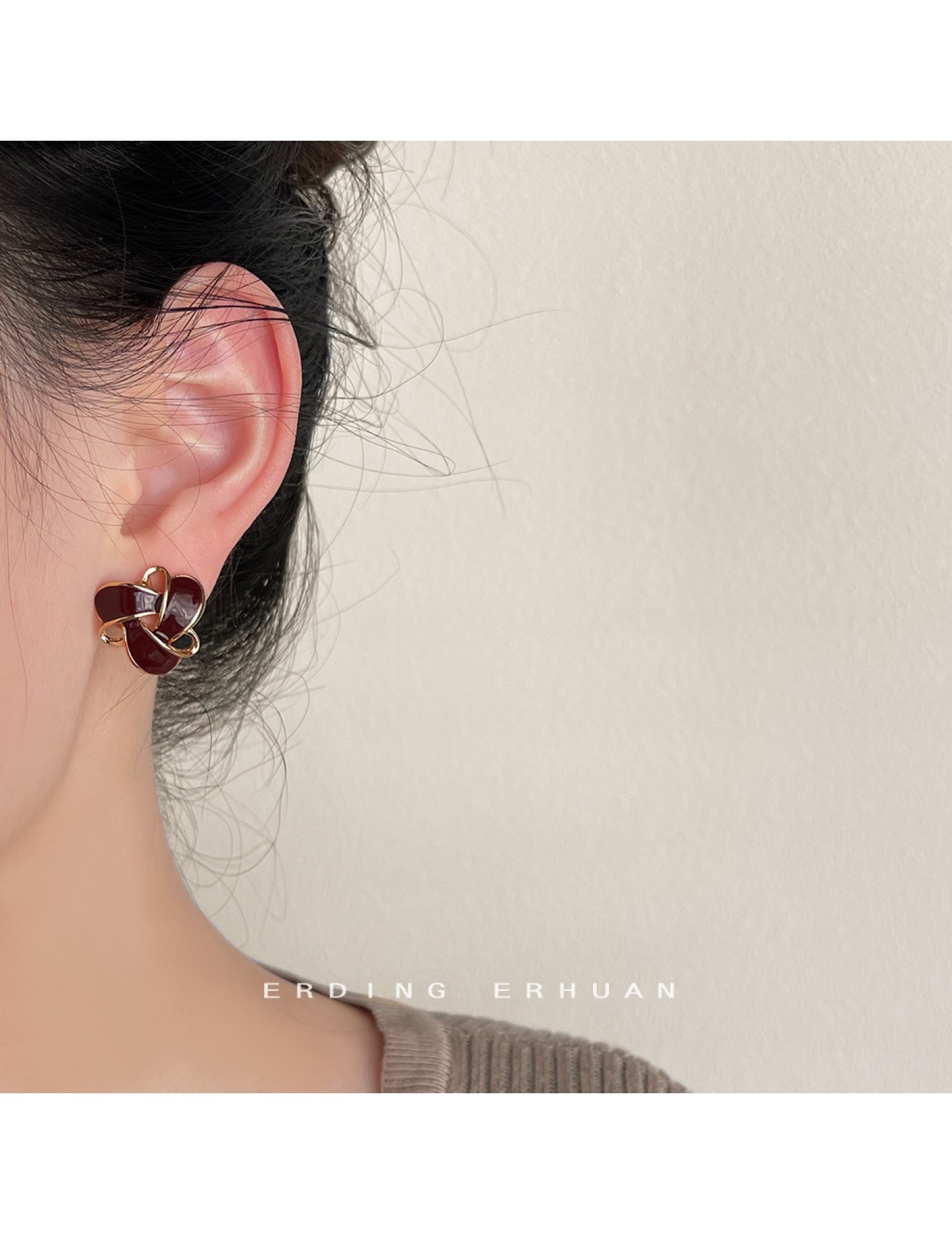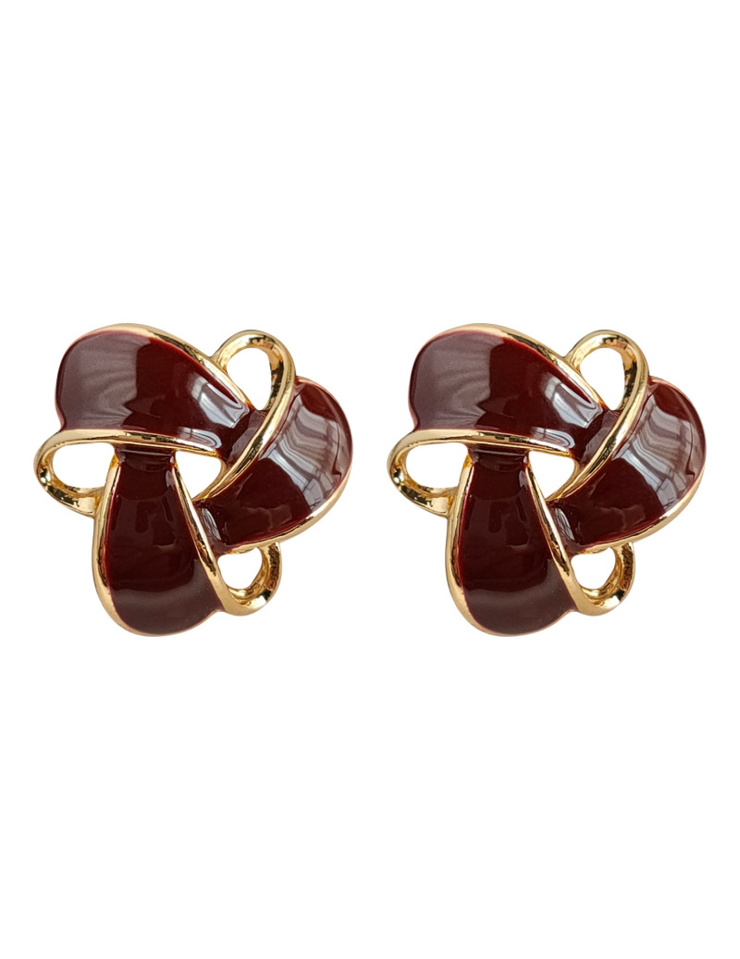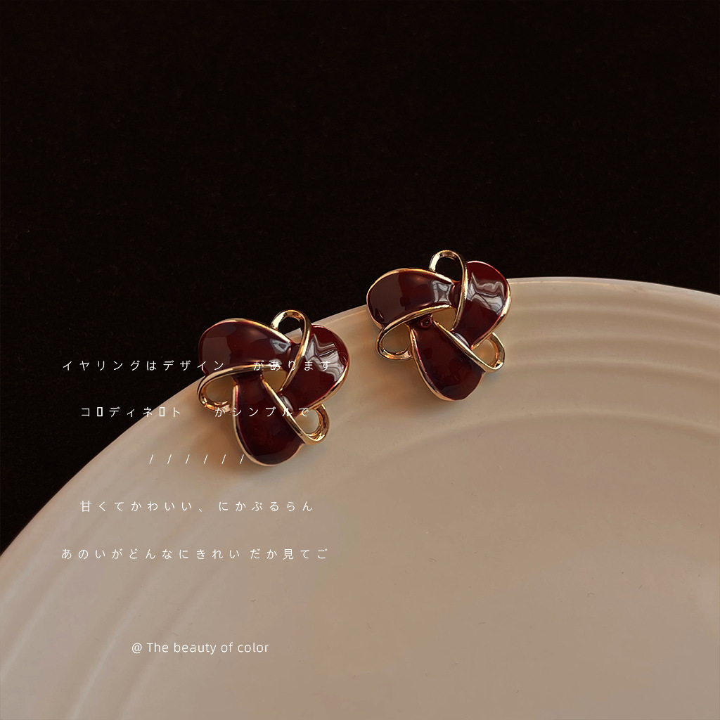 HELN124100367 復古酒紅色氣質幾何鏤空滴油鍍14K耳釘百搭高級感通勤耳飾女